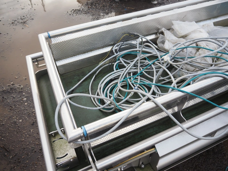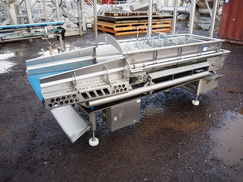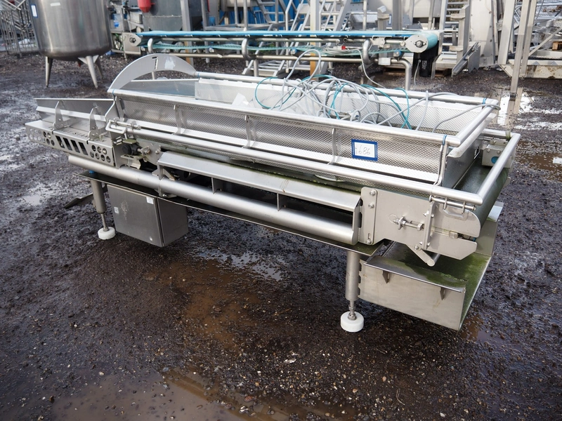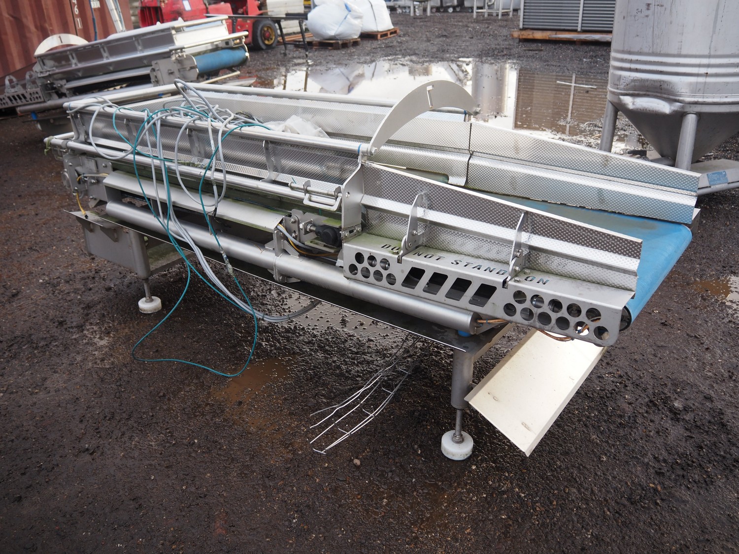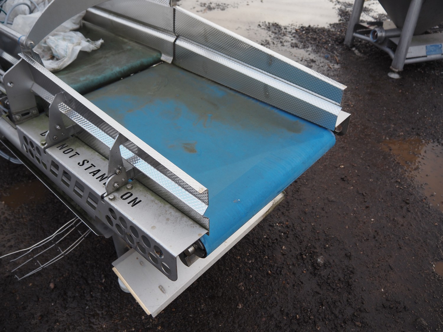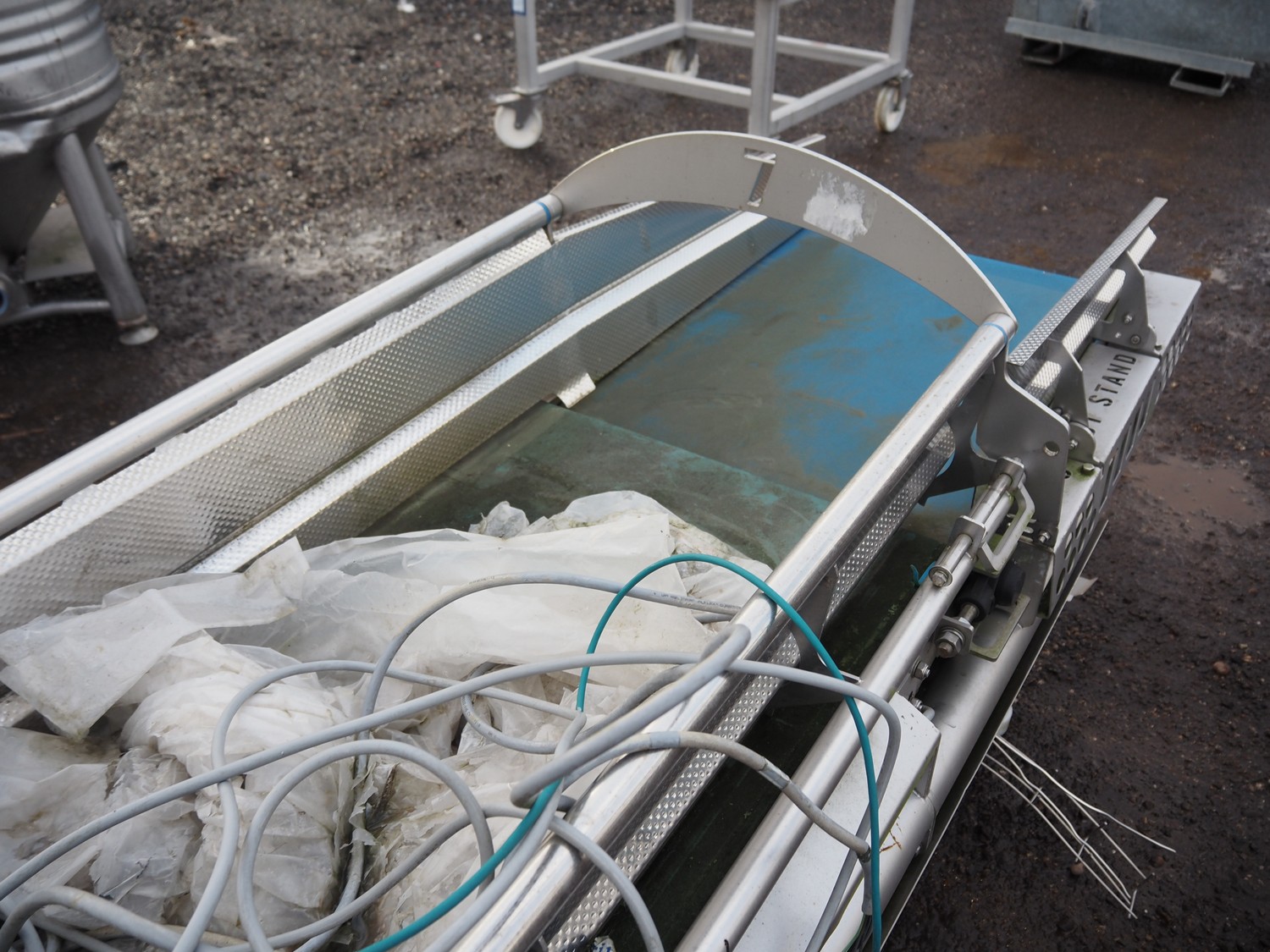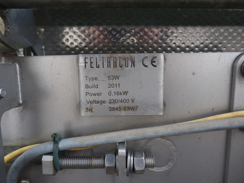 Feltracon weighing belt (bunker belt with flow belt), type: 53W, number: 3845-53W7, year of construction: 2011, 230/400 V, 0.16 kW, s/s frame, plastic belt, belt width: 620 mm, total dimensions: 2550 mm x 800 mm x 1200 mm.