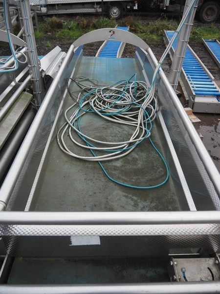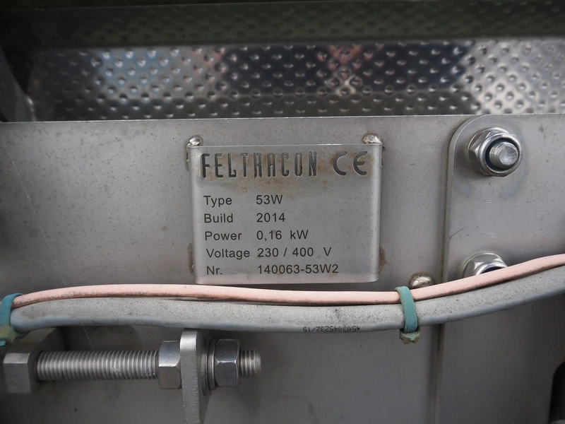 Feltracon weighing belt (bunker belt with flow belt), type: 53W, number: 140063-53W2, year of construction: 2014, 230/400 V, 0.16 kW, s/s frame, plastic belt, belt width: 620 mm, total dimensions: 2550 mm x 800 mm x 1950 mm.