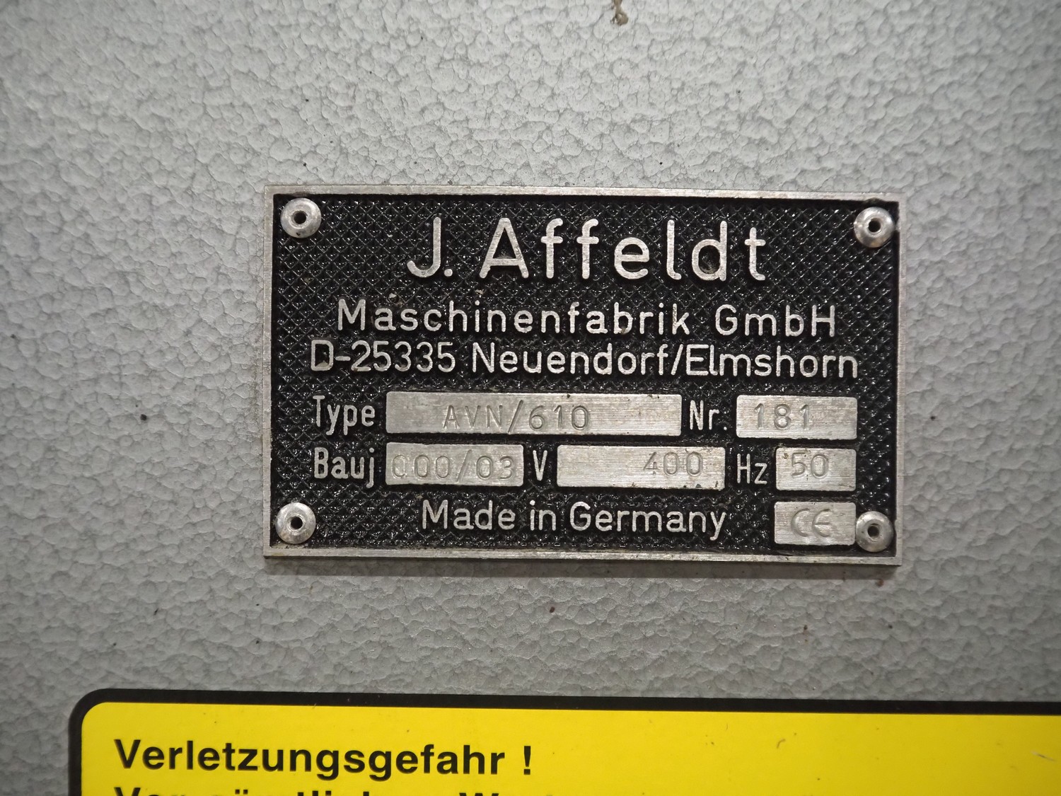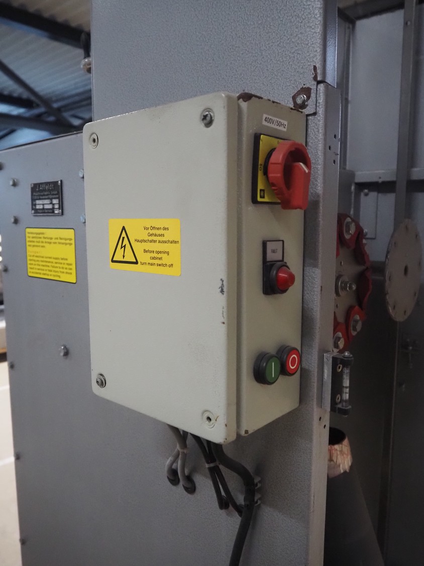 J.Affeldt net loading machine, type: AVN/610, number: 181, year of construction: 000/03, 400 V, 50 Hz, dimensions: 950 mm x 1000 mm x 2100 mm.