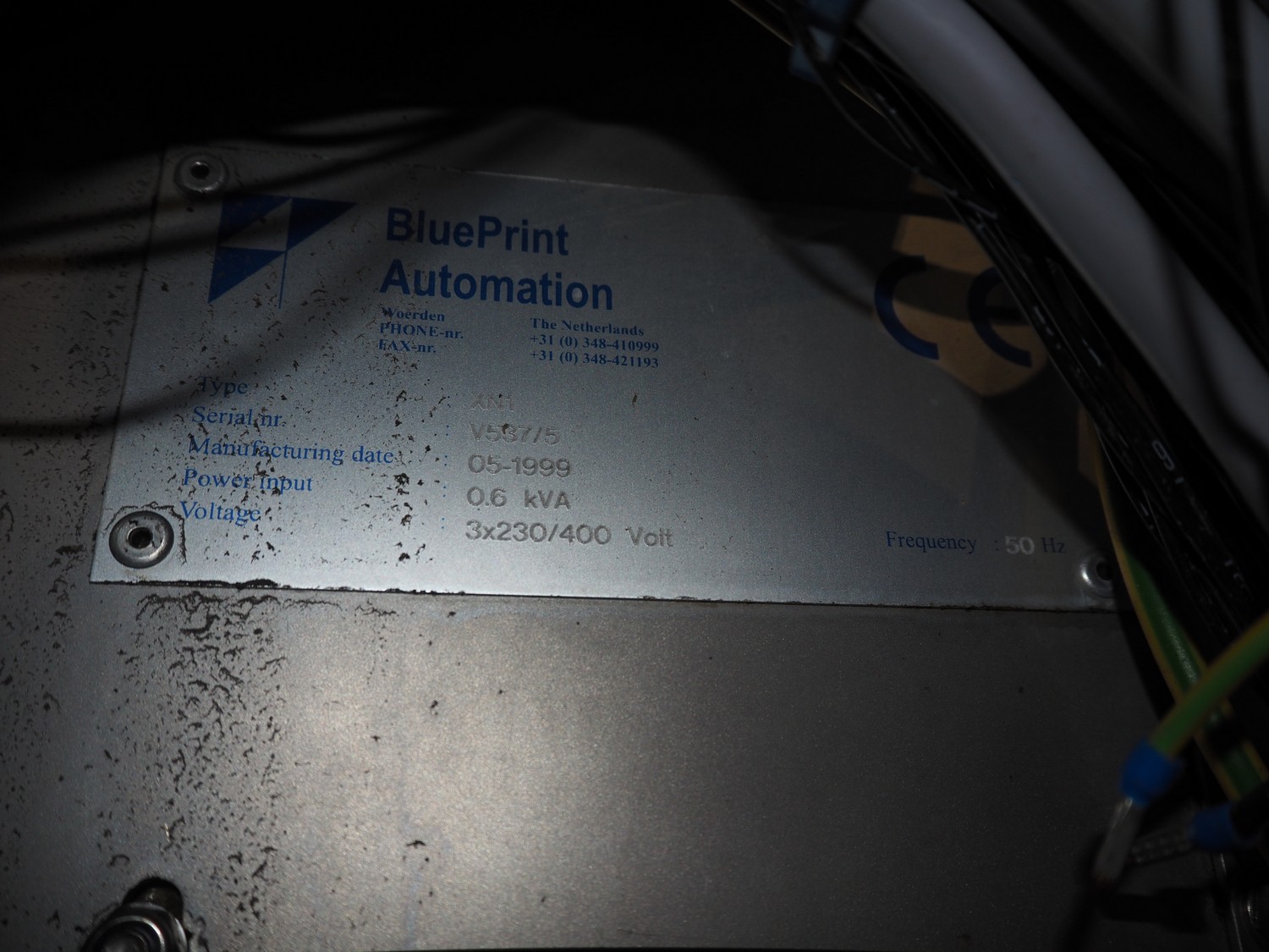 - Blueprint Automation check weigher, type: XN1, serial number: V537/5, year of construction: 05-1999, roller width: 400 mm, total dimensions: 800 mm x 600 mm x 1650 mm,