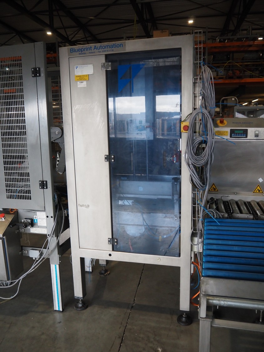 - Blueprint Automation box filling machine, type: MGC-AM1, serial number: V-415/05/01, year of construction: 03-1997, plastic belt, belt width: 330 mm, 380 mm, 425 mm, 450 mm, total dimensions: 3700 mm x 2050 mm x 1550 mm,