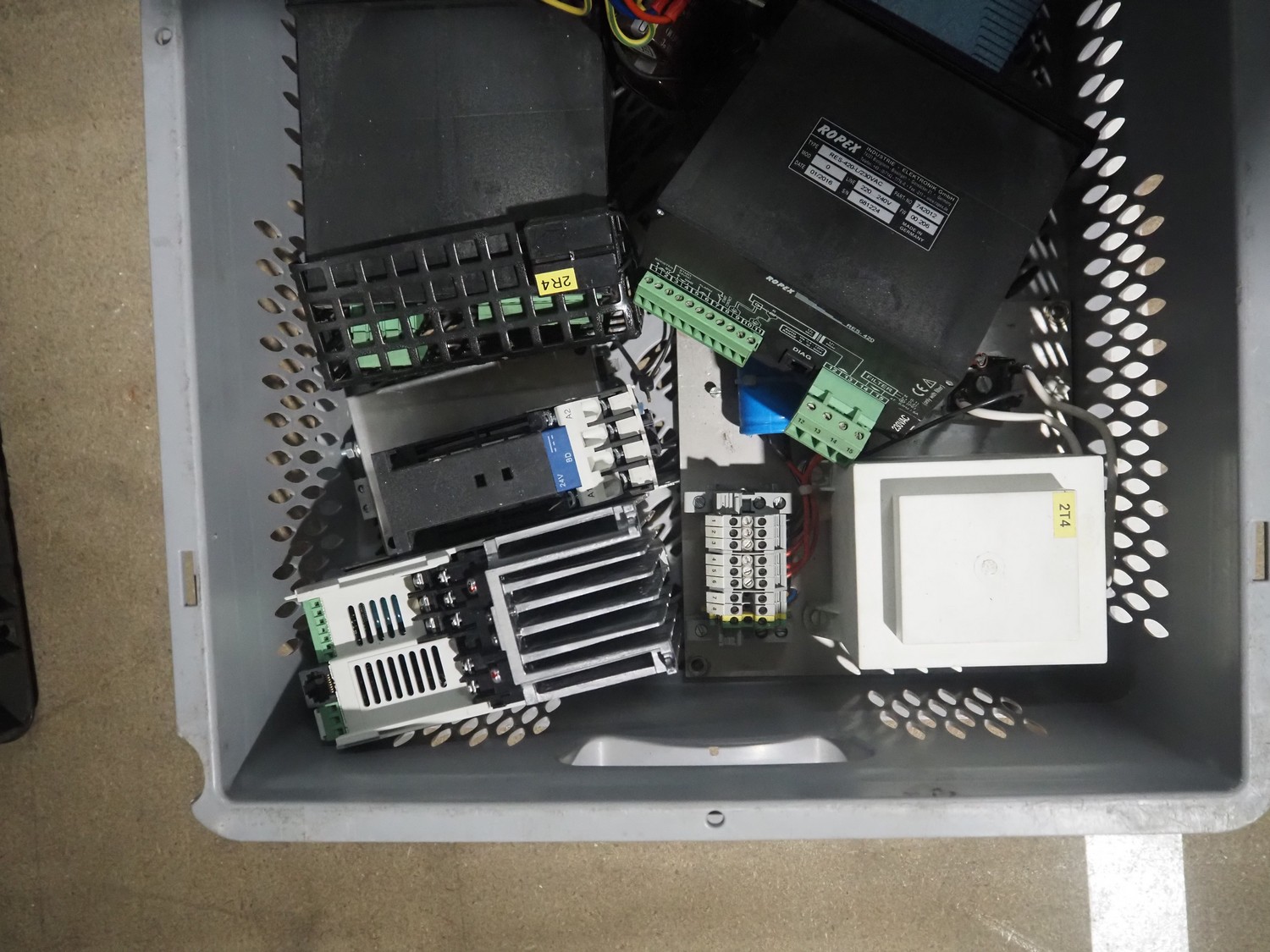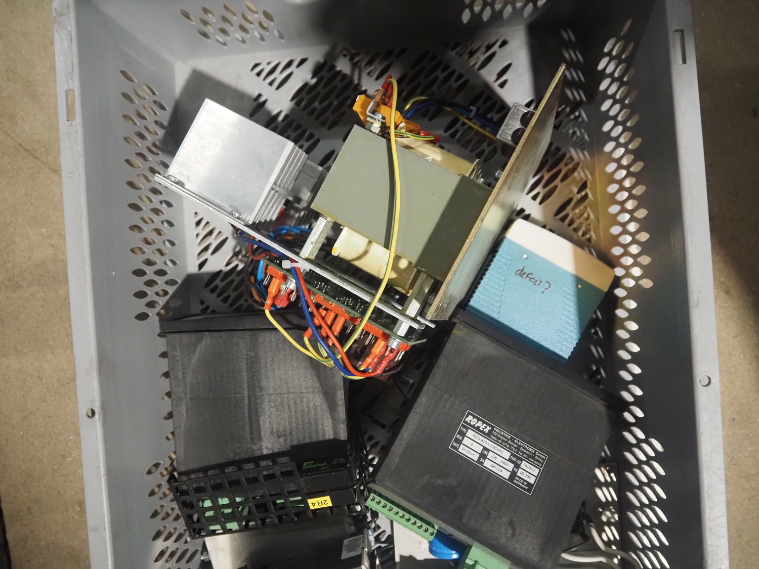 Crate with electric parts.