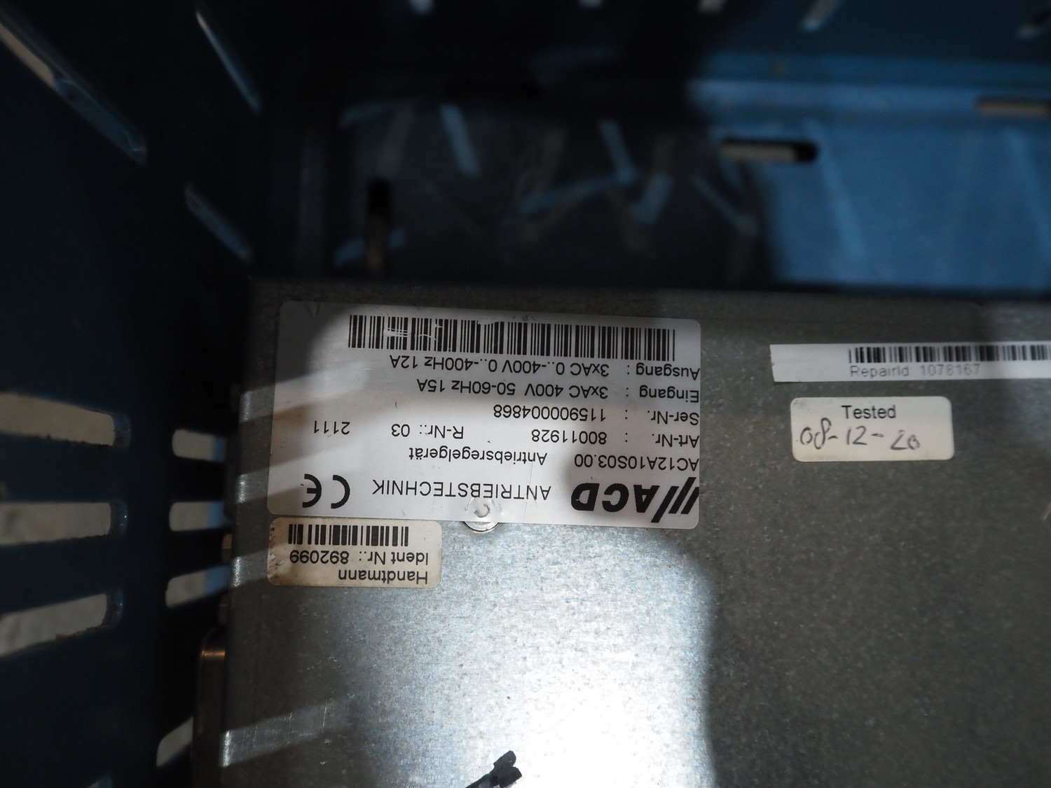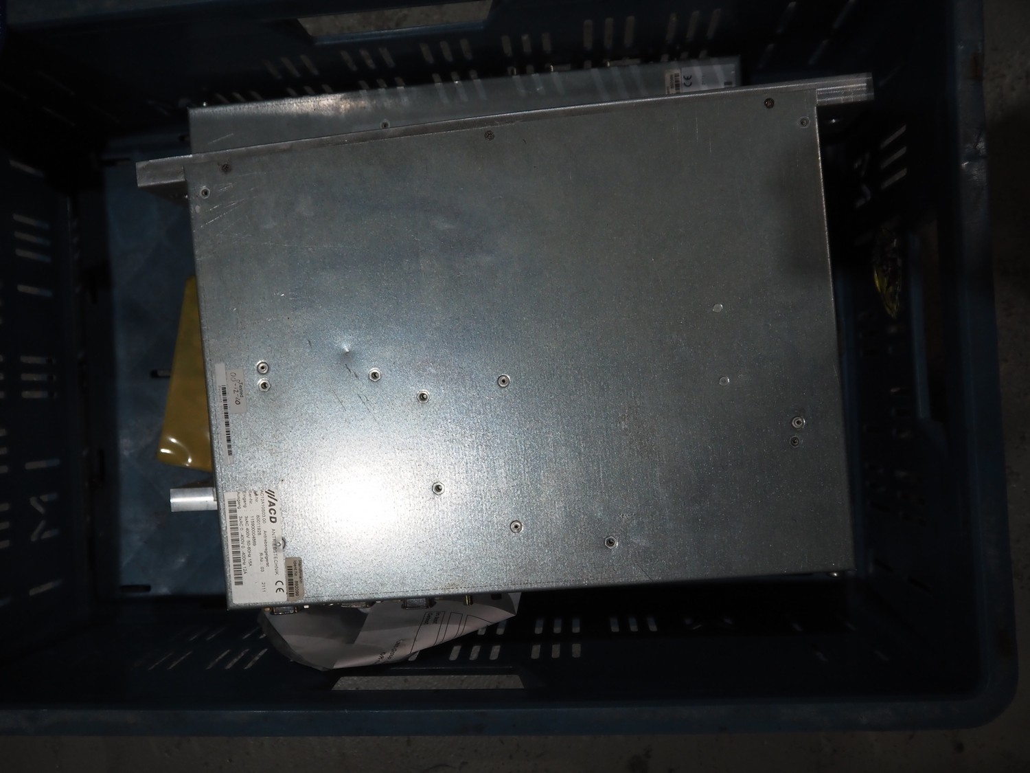 Crate with 2 ACD servo drives, model: AC12A10S03.00, dimensions: 600 mm x 400 mm x 200 mm.