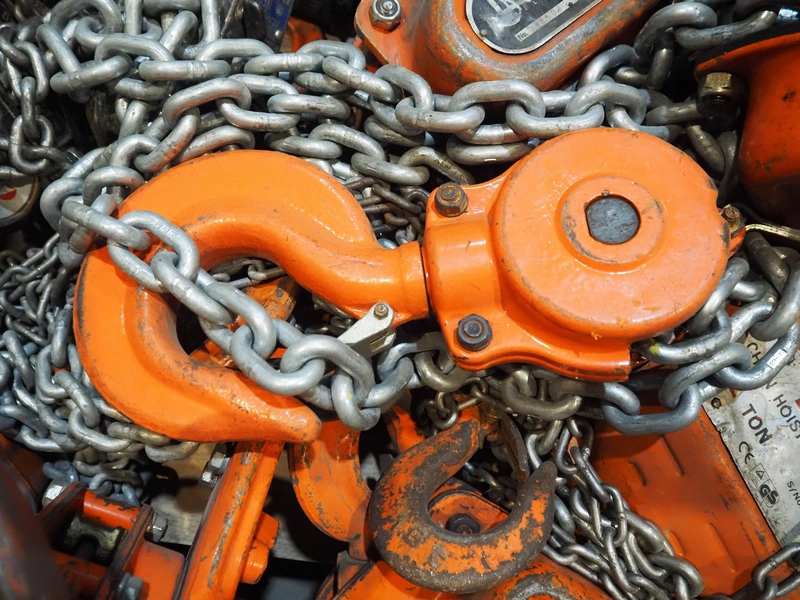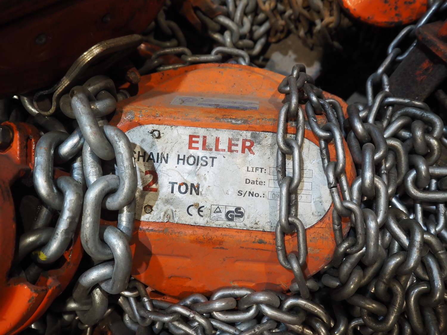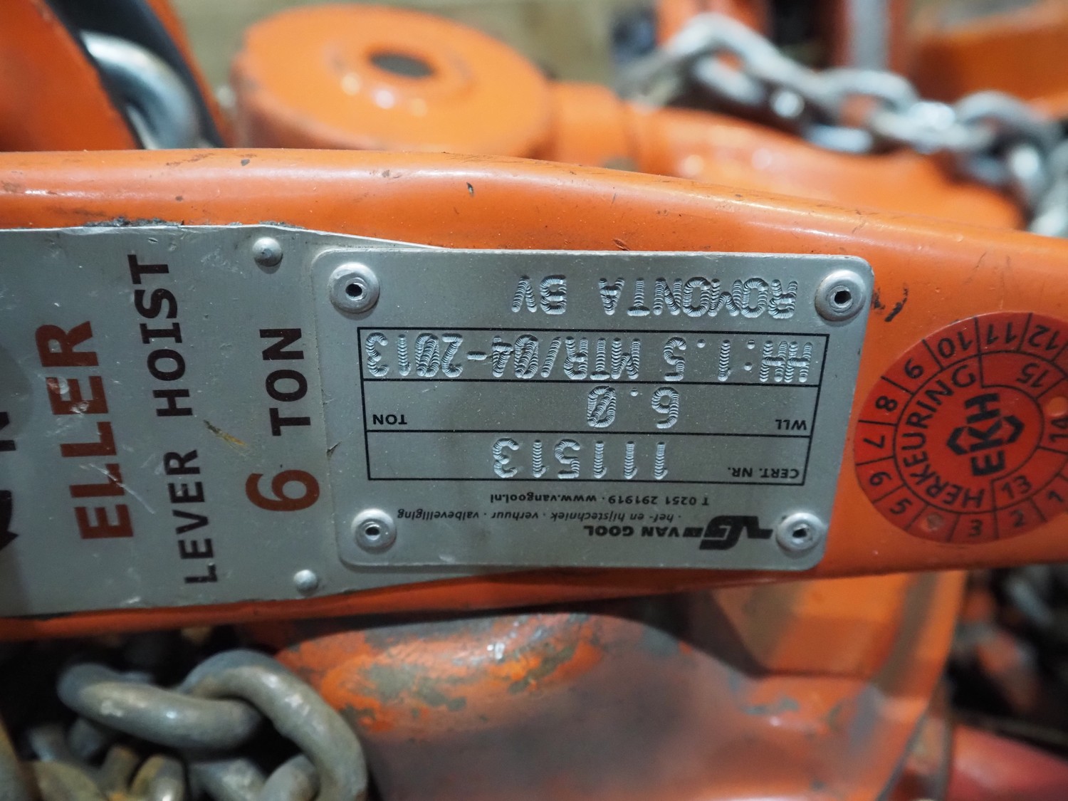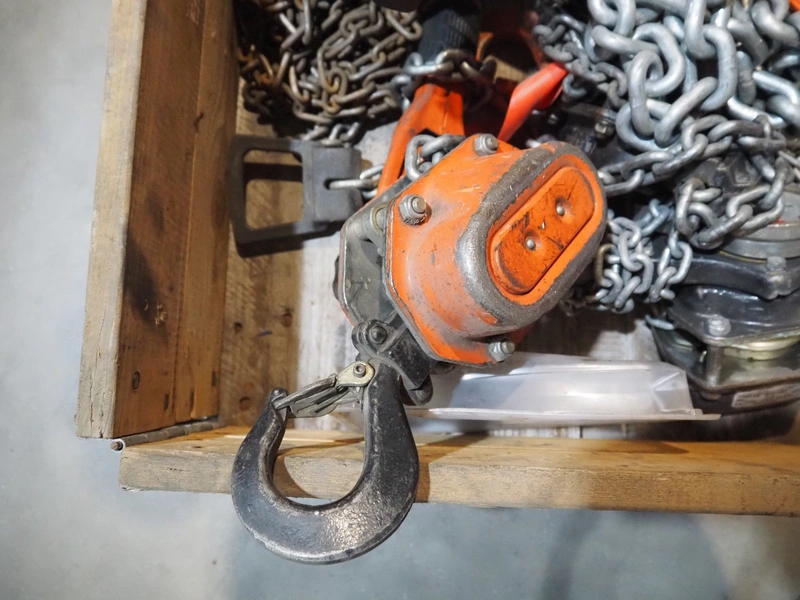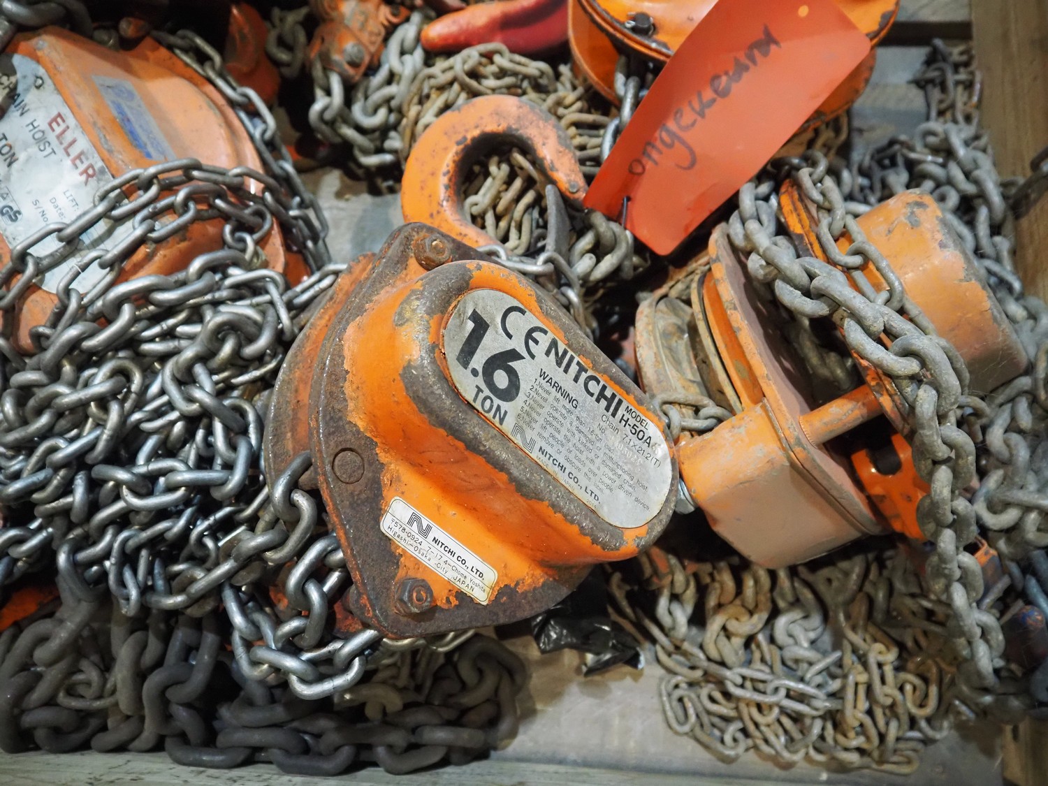 Pallet with 11 Rema hoists, capacity: (1x) 1 ton, (3x) 1.5 ton, (1x) 1.6 ton, (5x) 2 ton and (1x) 6 ton, dimensions: 1200 mm x 800 mm x 400 mm.