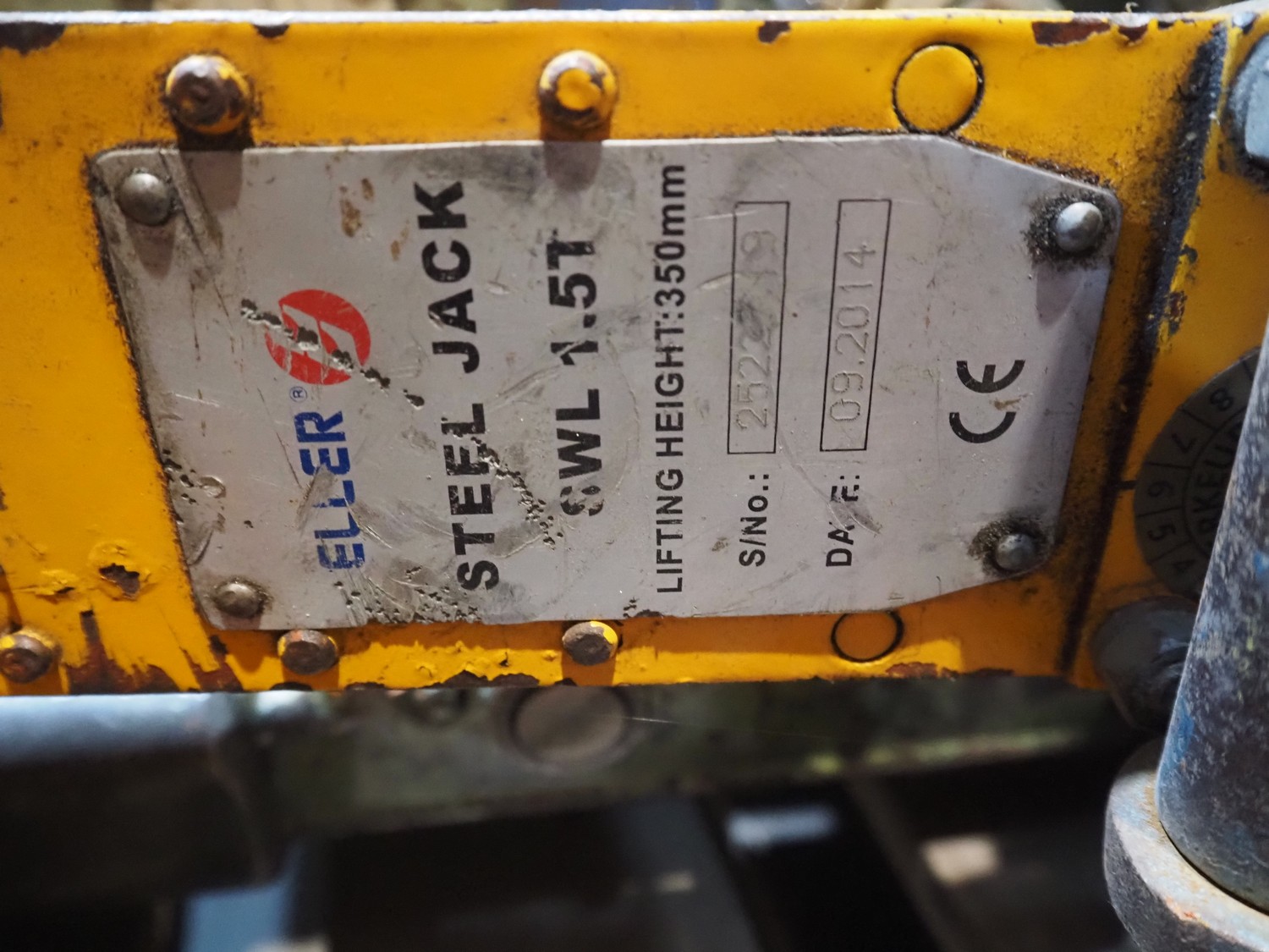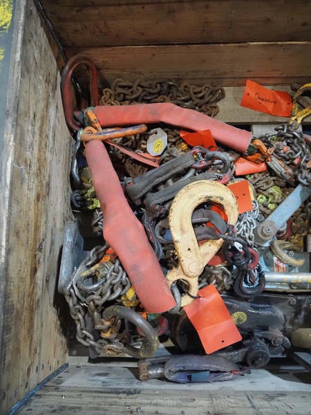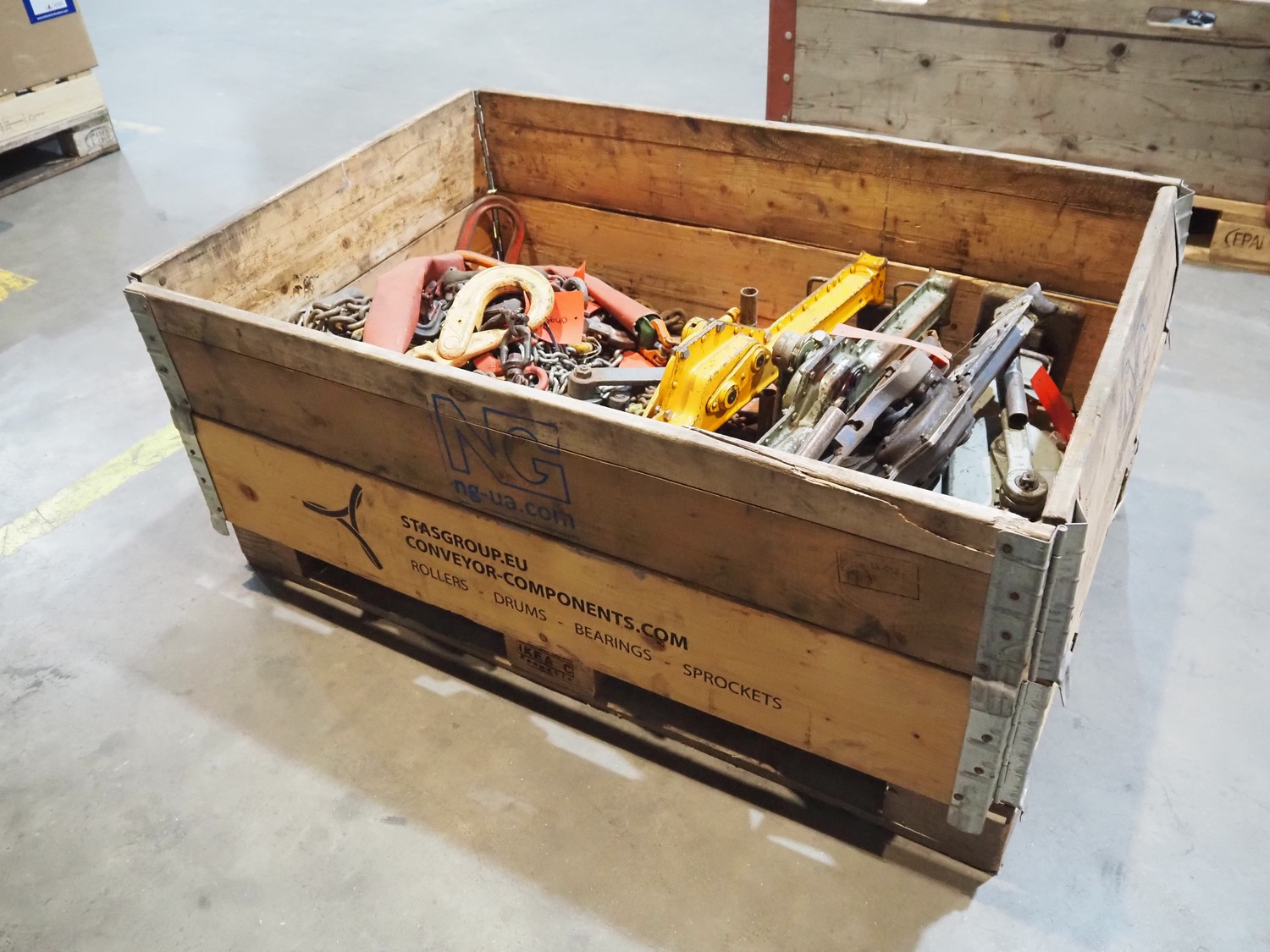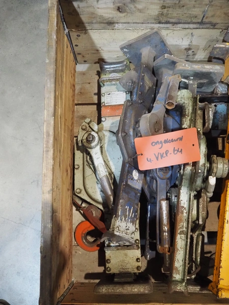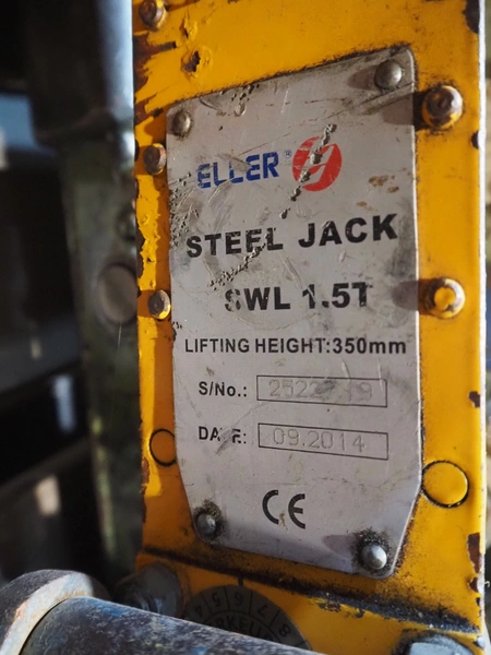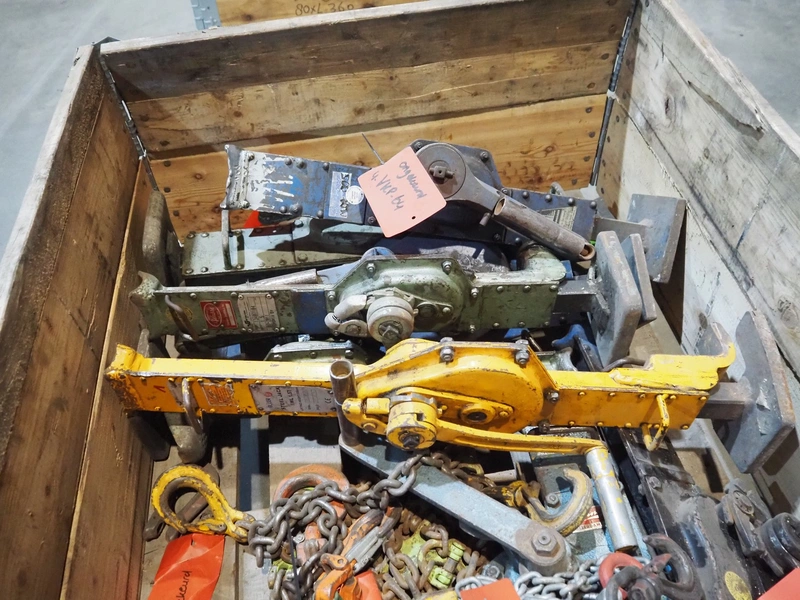 Pallet with 8 jacks, capacity: (2x) 250 kg, (3x) 1.5 ton, (2x) 3 ton and (1x) 5 ton, dimensions: 1200 mm x 800 mm x 600 mm.