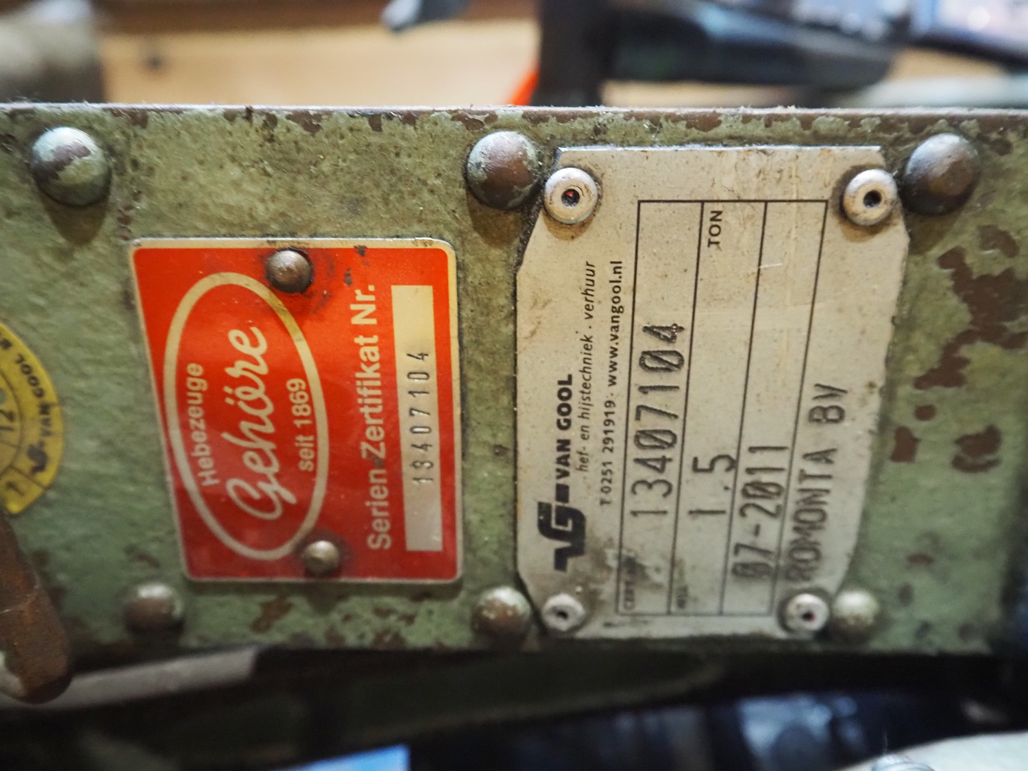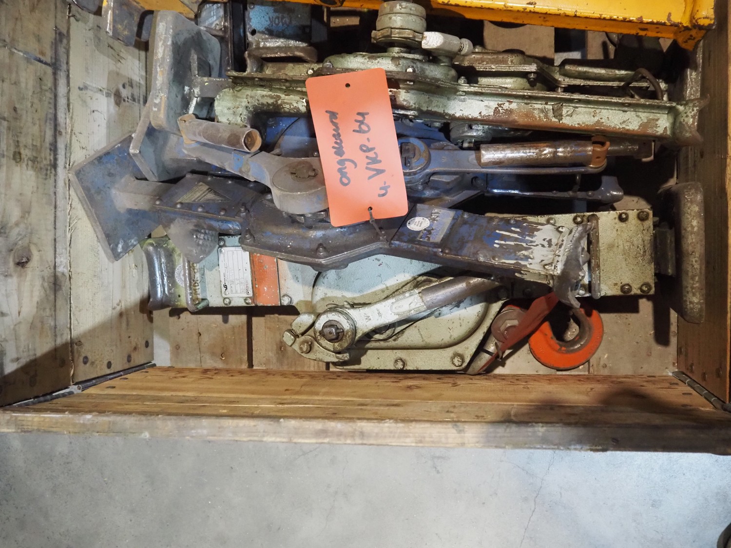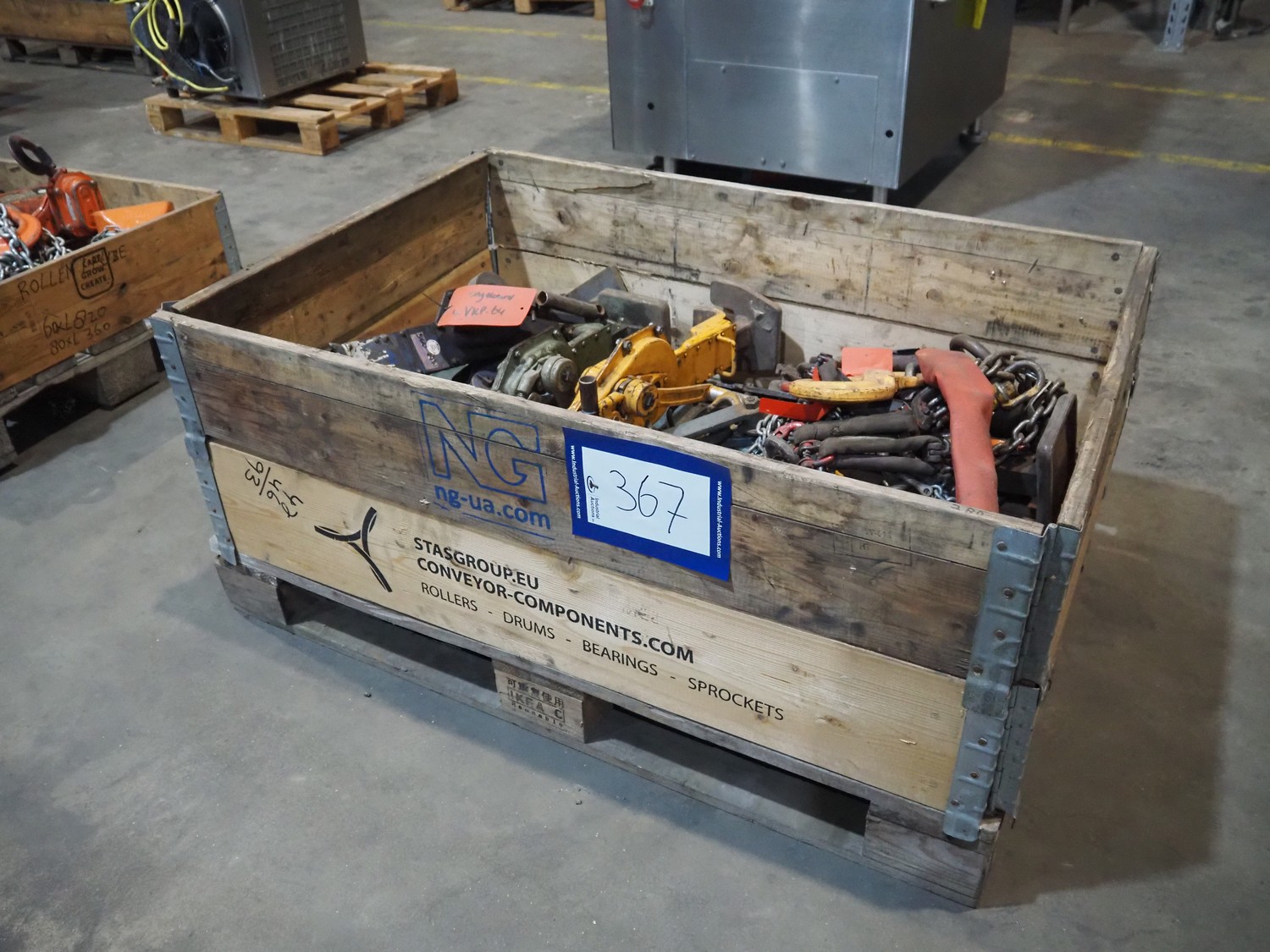 Pallet with 8 jacks, capacity: (2x) 250 kg, (3x) 1.5 ton, (2x) 3 ton and (1x) 5 ton, dimensions: 1200 mm x 800 mm x 600 mm.