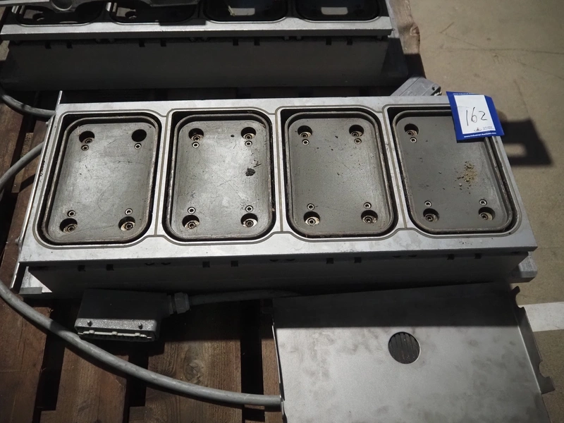 Pallet with dye for Ulma traysealer, dye: (4x) 230 mm x 153 mm, total dimensions: 1200 mm x 1000 mm x 400 mm.