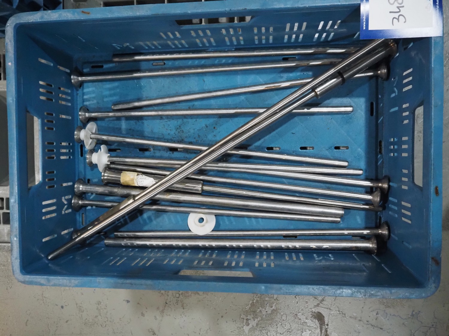 Crate with 15 s/s filling pipes, dimensions: 600 mm x 400 mm x 200 mm.