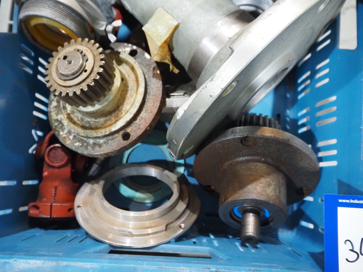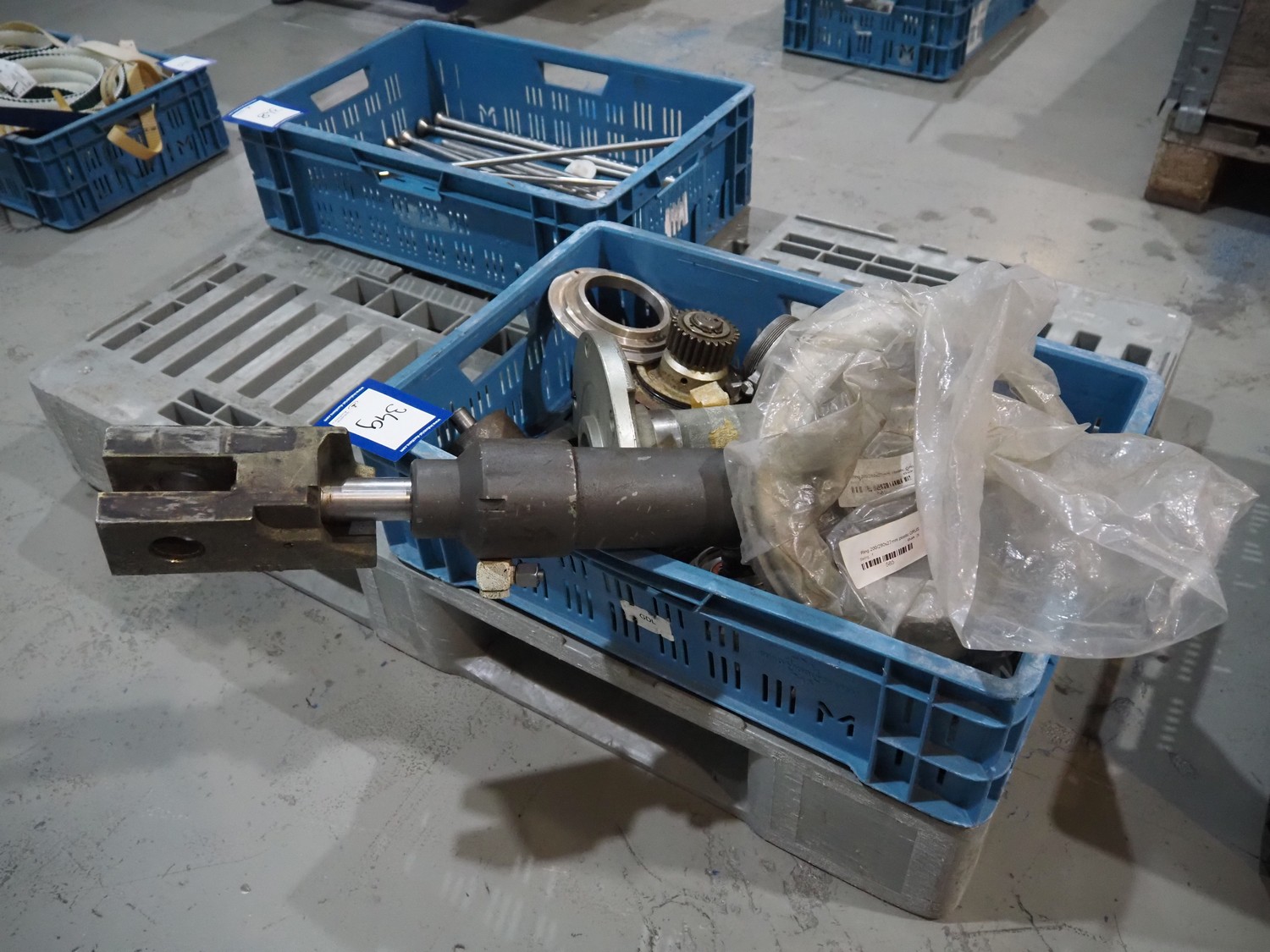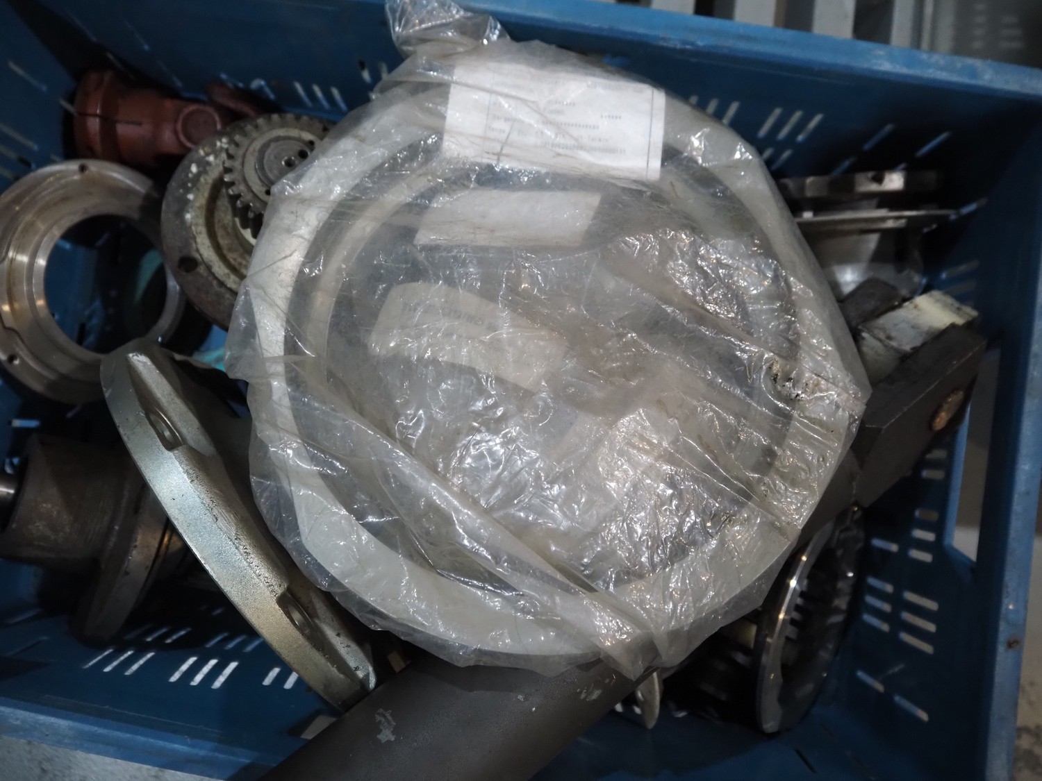 Crate with various parts, dimensions: 600 mm x 600 mm x 250 mm.
