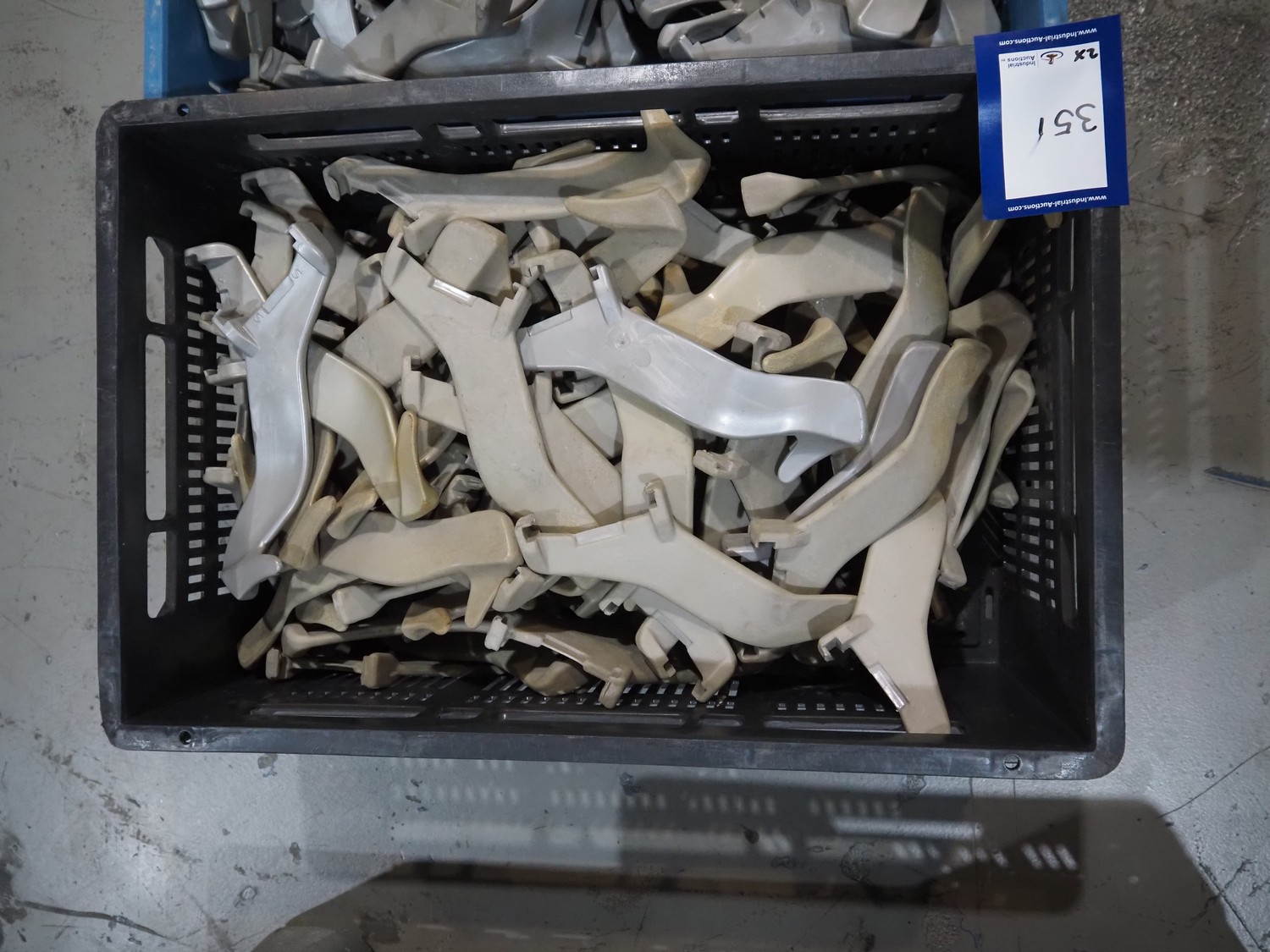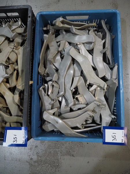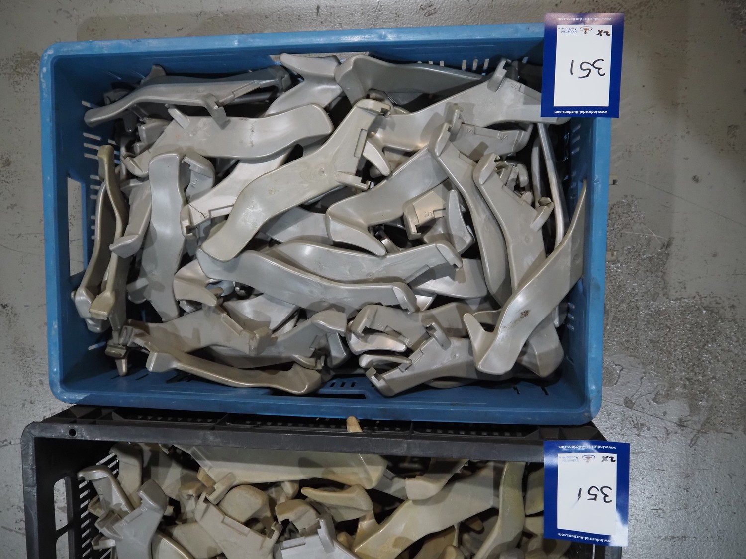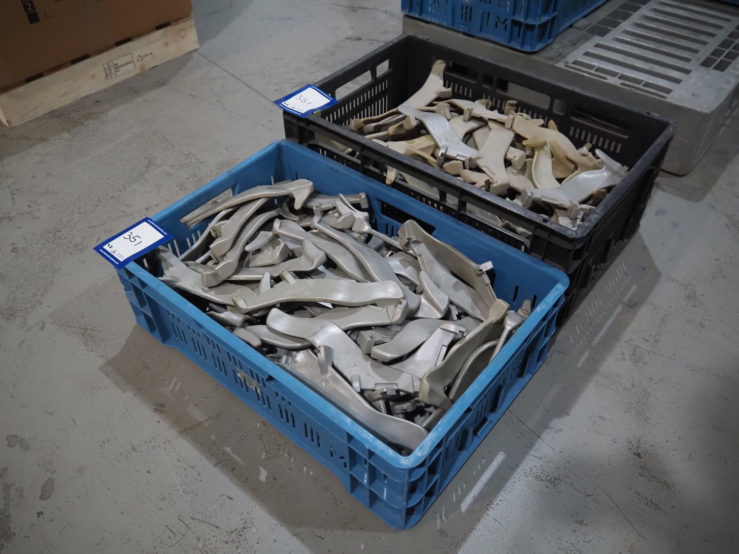 2 crates with hooks for hanging line, dimensions: 600 mm x 400 mm x 200 mm and 600 mm x 400 mm x 270 mm.