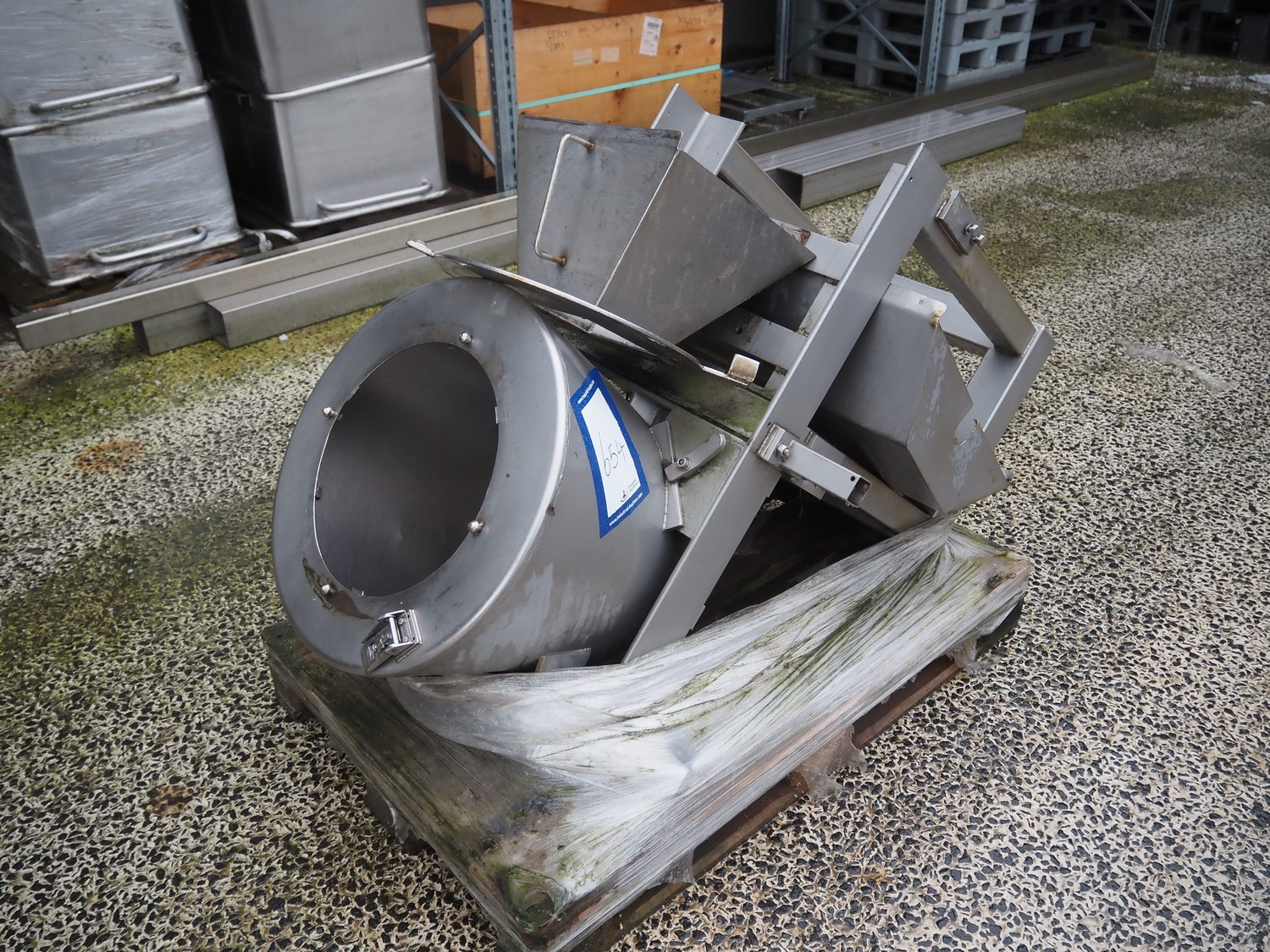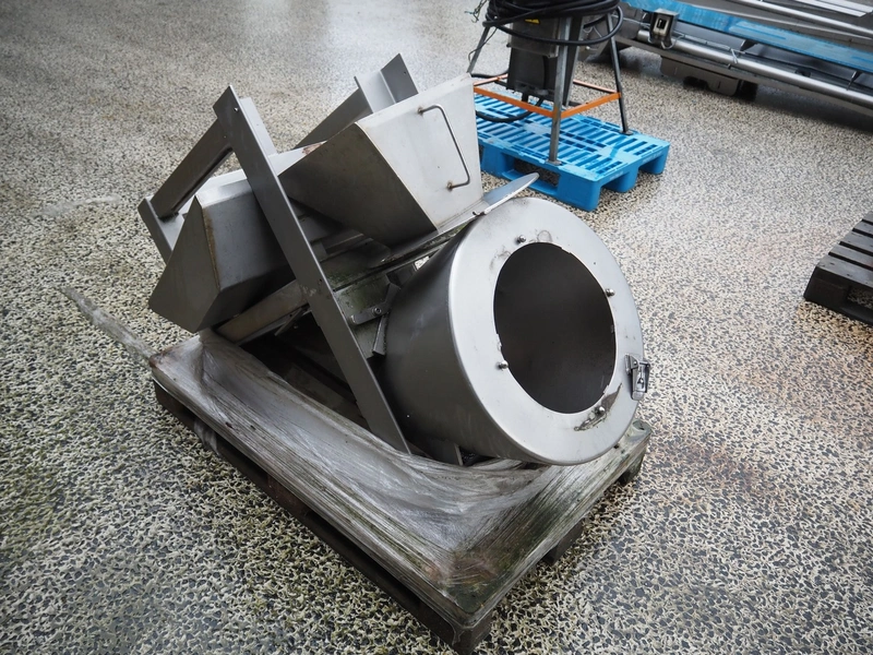 Pallet with parts for vegetable slicer, dimensions: 1200 mm x 800 mm x 700 mm.