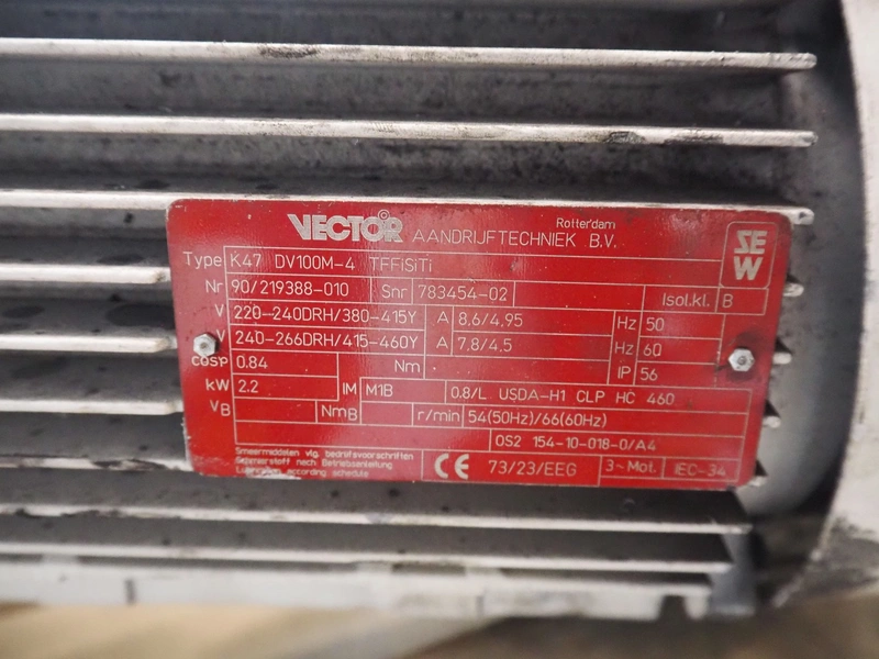 SEW motor, dimensions: 570 mm x 250 mm x 250 mm.