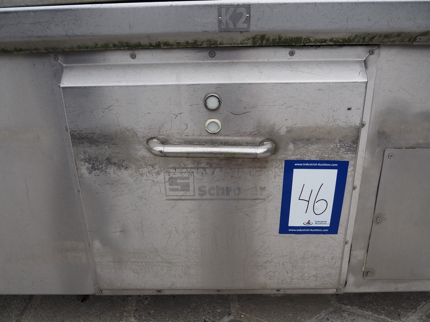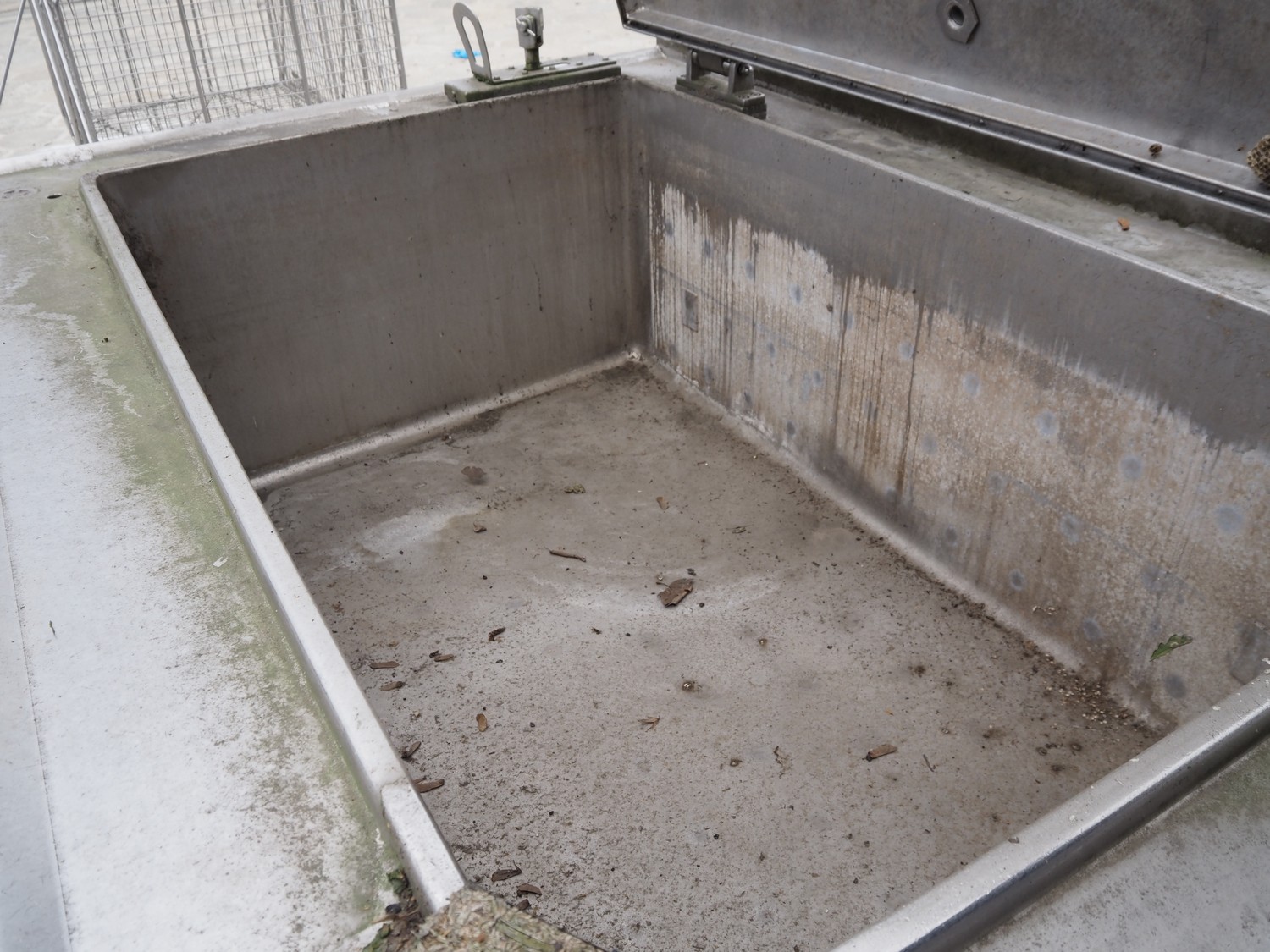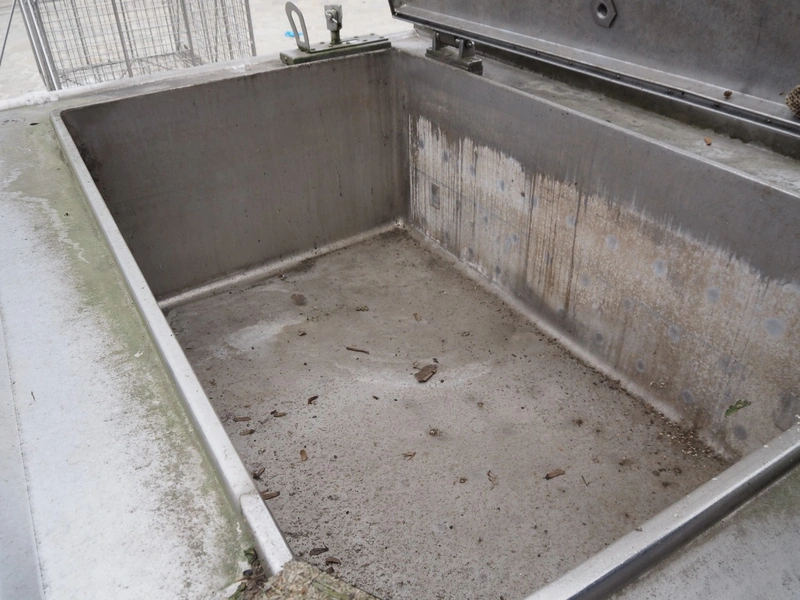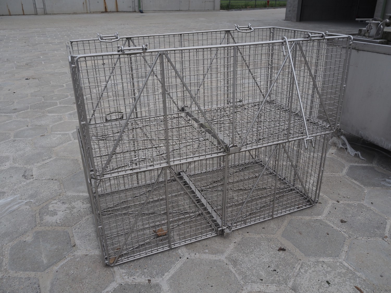 Schröter cooking vessel, inside dimensions: 1490 mm x 900 mm x 550 mm, total dimensions: 1900 mm x 1600 mm x 1120 mm. Including baskets, dimensions basket: (2x) 1340 mm x 690 mm x 520 mm.