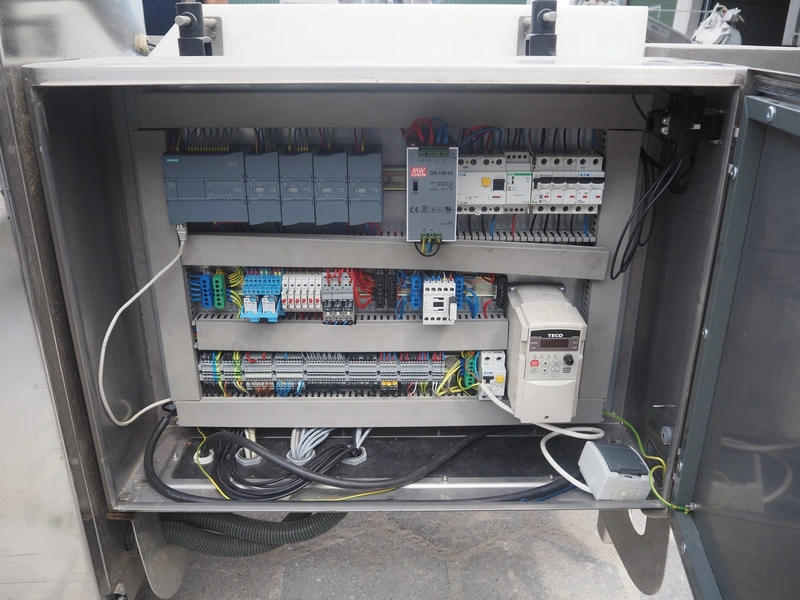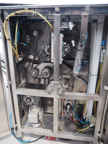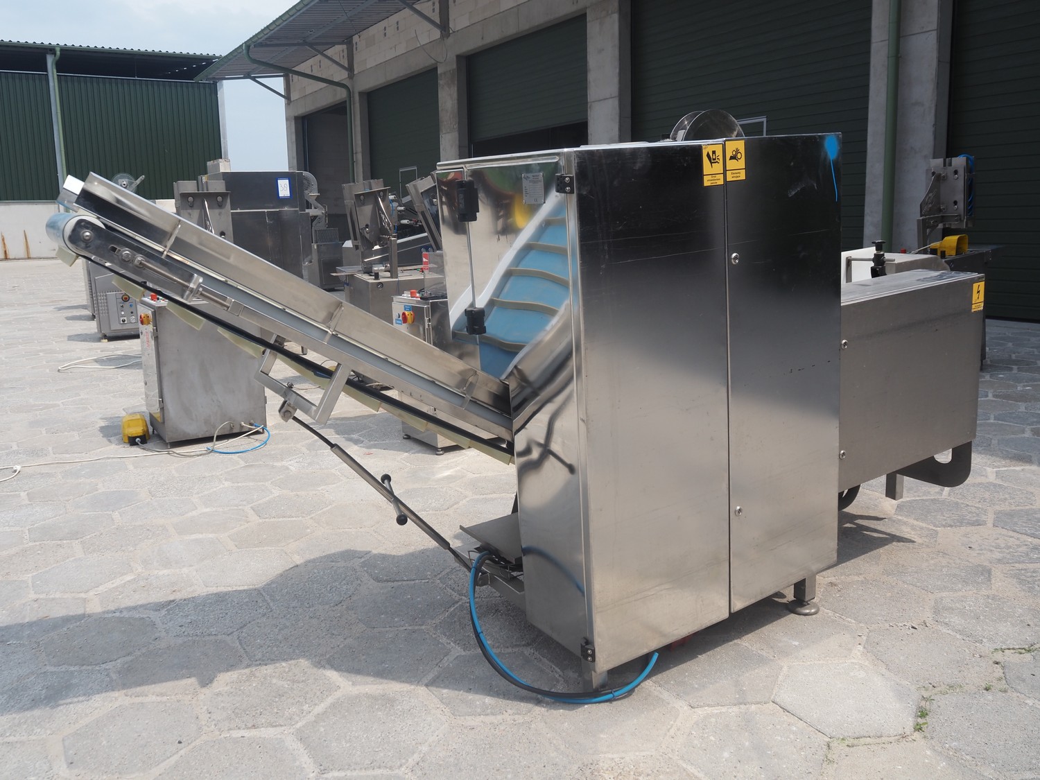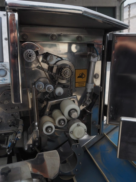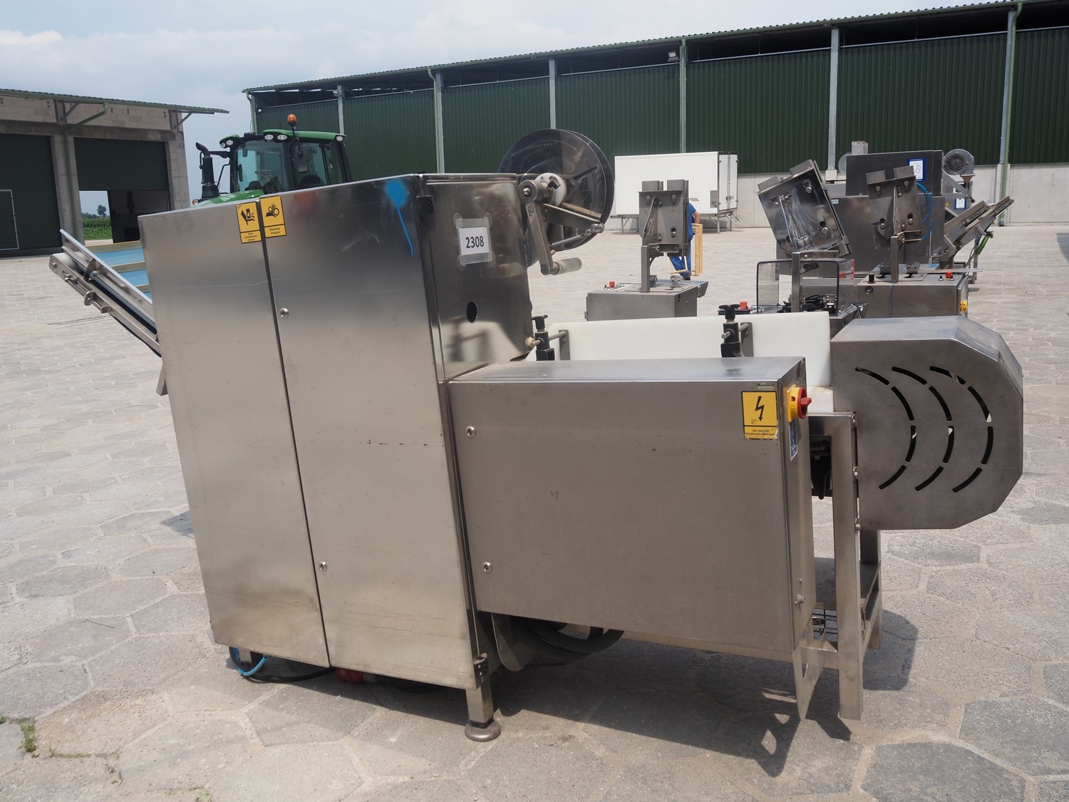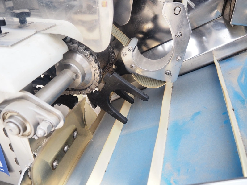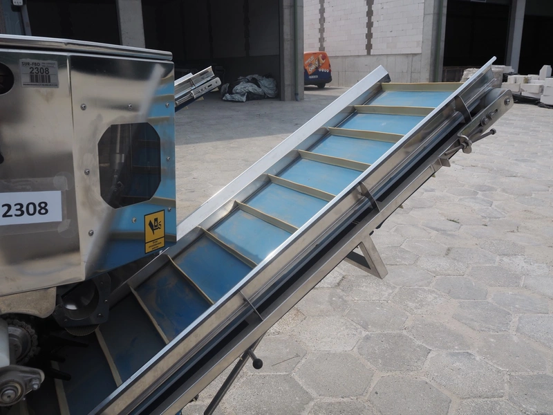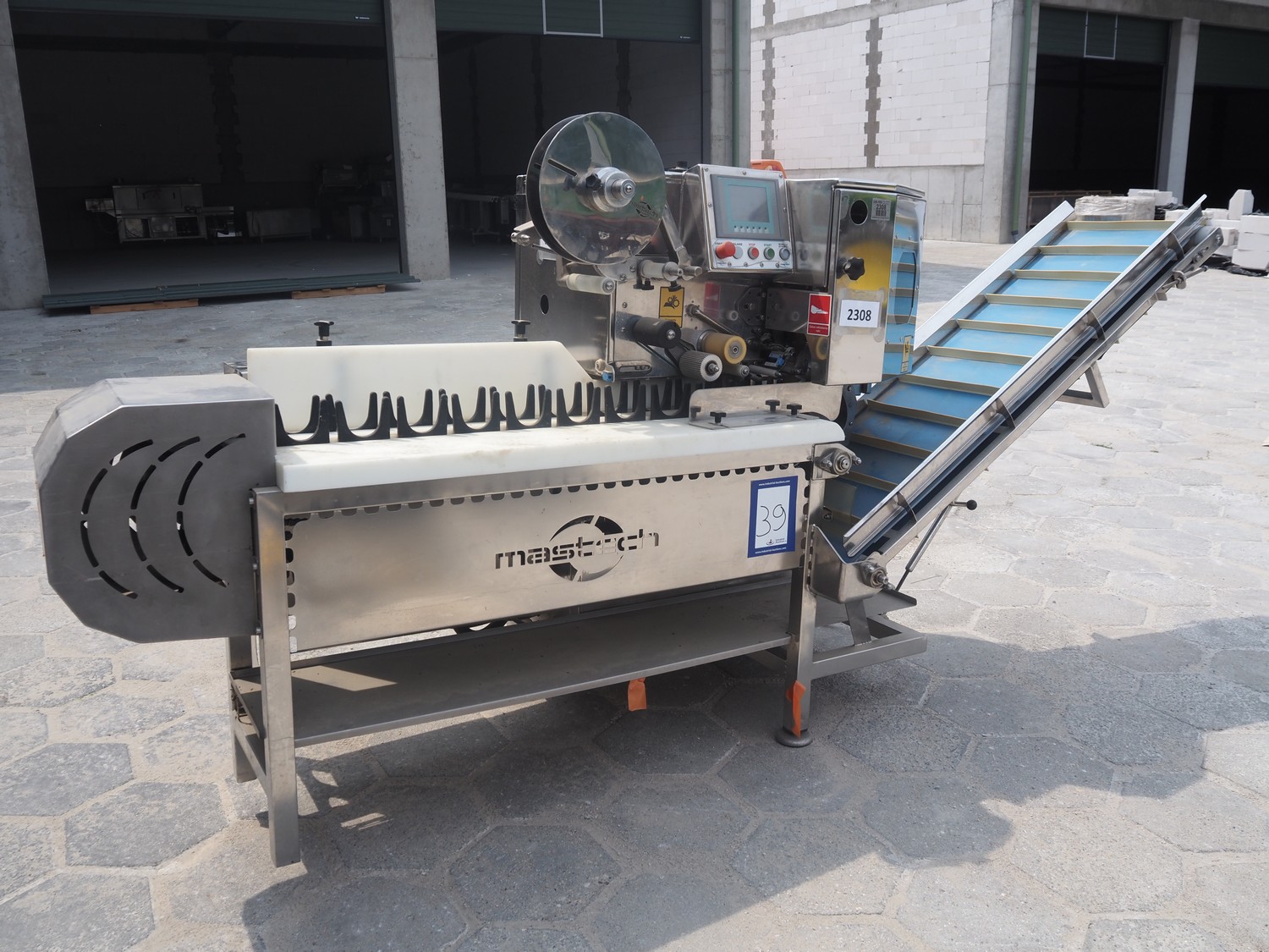 Mastech labelling machine, type: BD2-50-P, serial number: 15, year of construction: 03/2016, 400 V, weight: 485 kg, plastic belt with dividers, belt width: 490 mm, divider height: 25 mm, distance between dividers: 140 mm, total dimensions: 3200 mm x 1000 mm x 1600 mm.