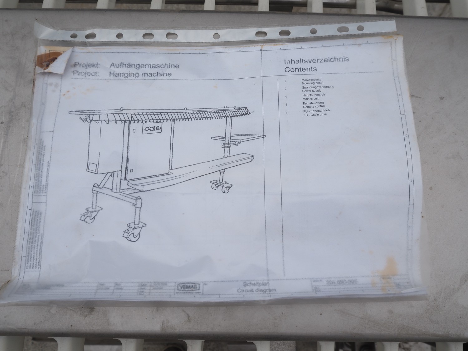 Vemag mobile hanging line, type: AH 204, serial number: 2040428, year of construction: 2011, 400/460 V, 3 Ph, 50/60 Hz, 3,5 A, 1,5 kW, dimensions: 4000 mm x 670 mm x 1230 mm.