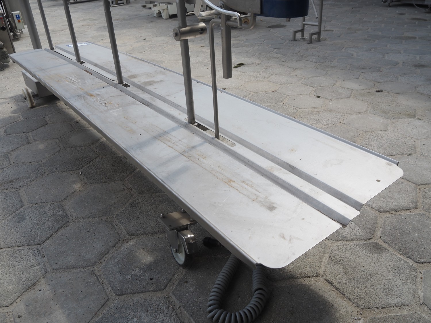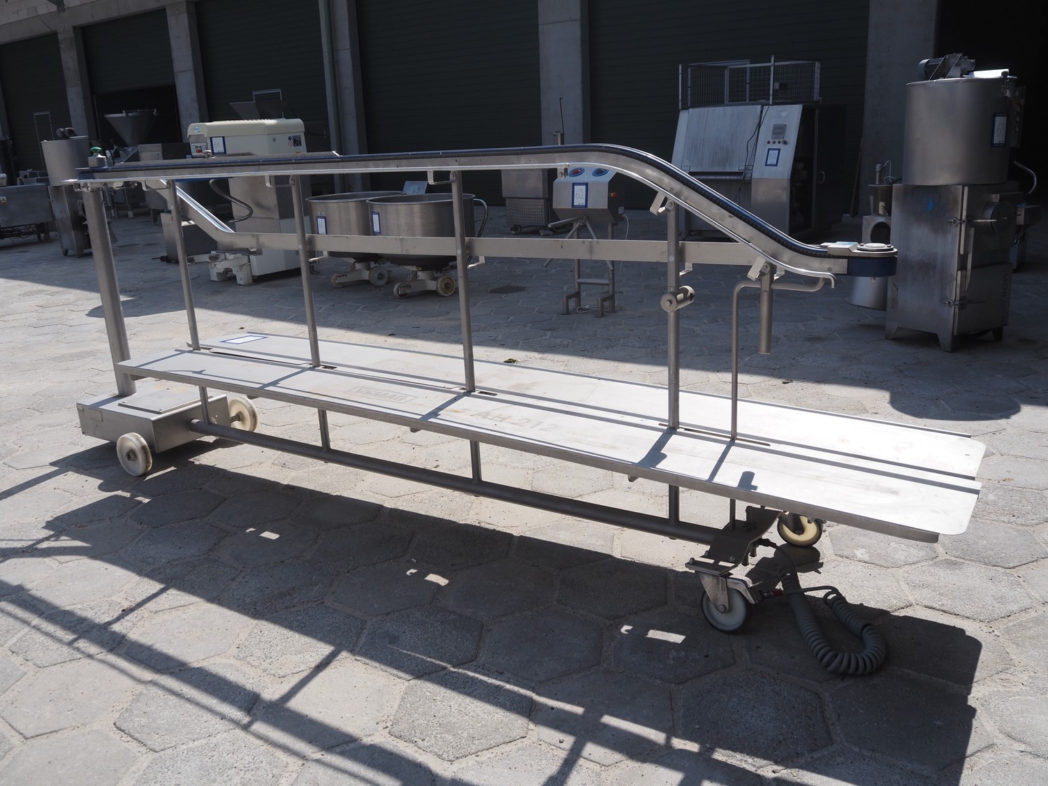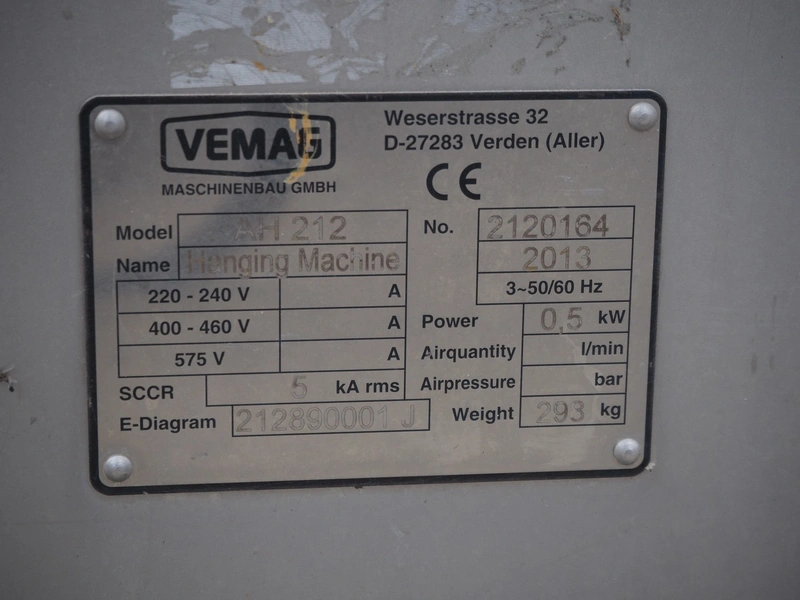 Vemag mobile hanging line, type: AH 212, serial number: 2120164, year of construction: 2013, 3 Ph, 50/60 Hz, 0,5 kW, weight: 293 kg, dimensions: 4040 mm x 760 mm x 1840 mm. Missing hangers.