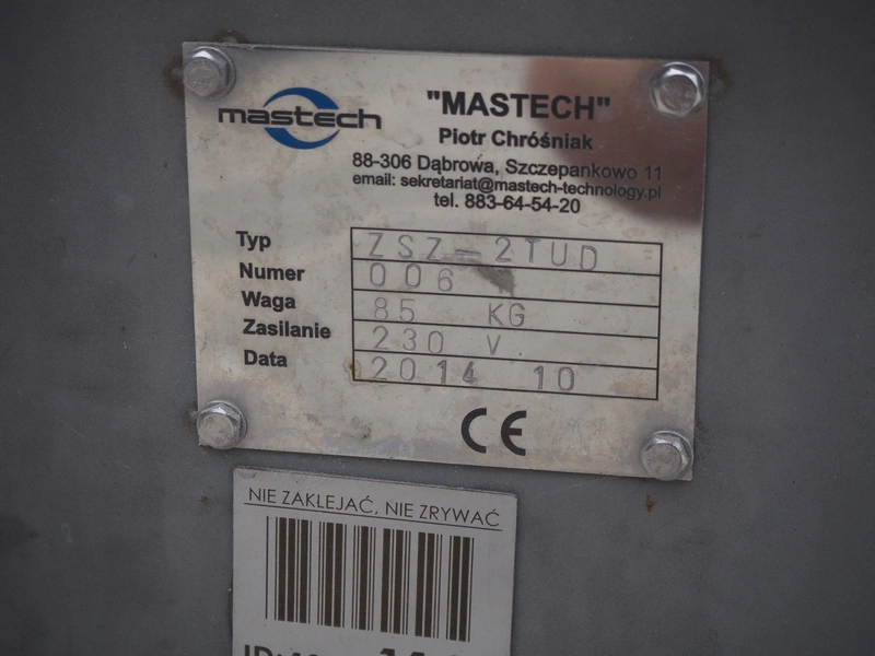 Mastech ultrasonic welder, type: ZSZ-2TUD, number: 006, year of construction: 10/2014, 230 V, weight: 85 kg, dimensions: 670 mm x 800 mm x 1550 mm.