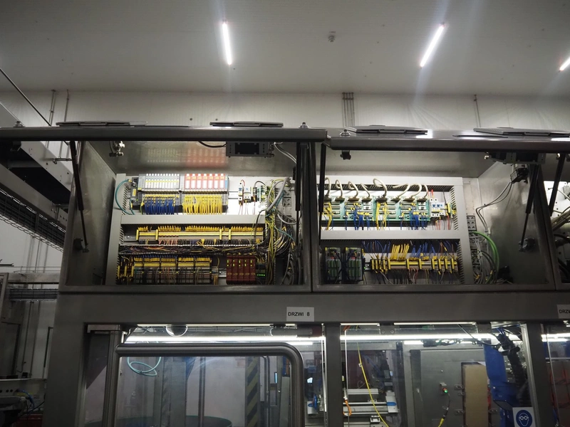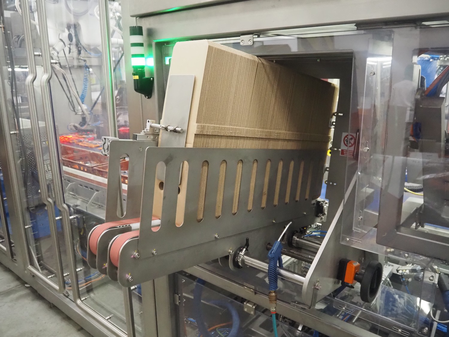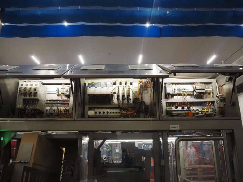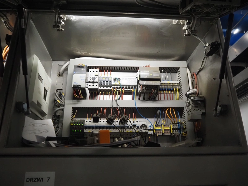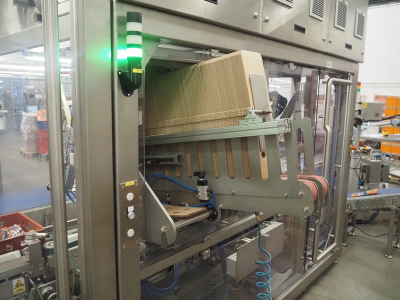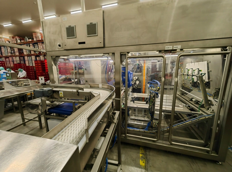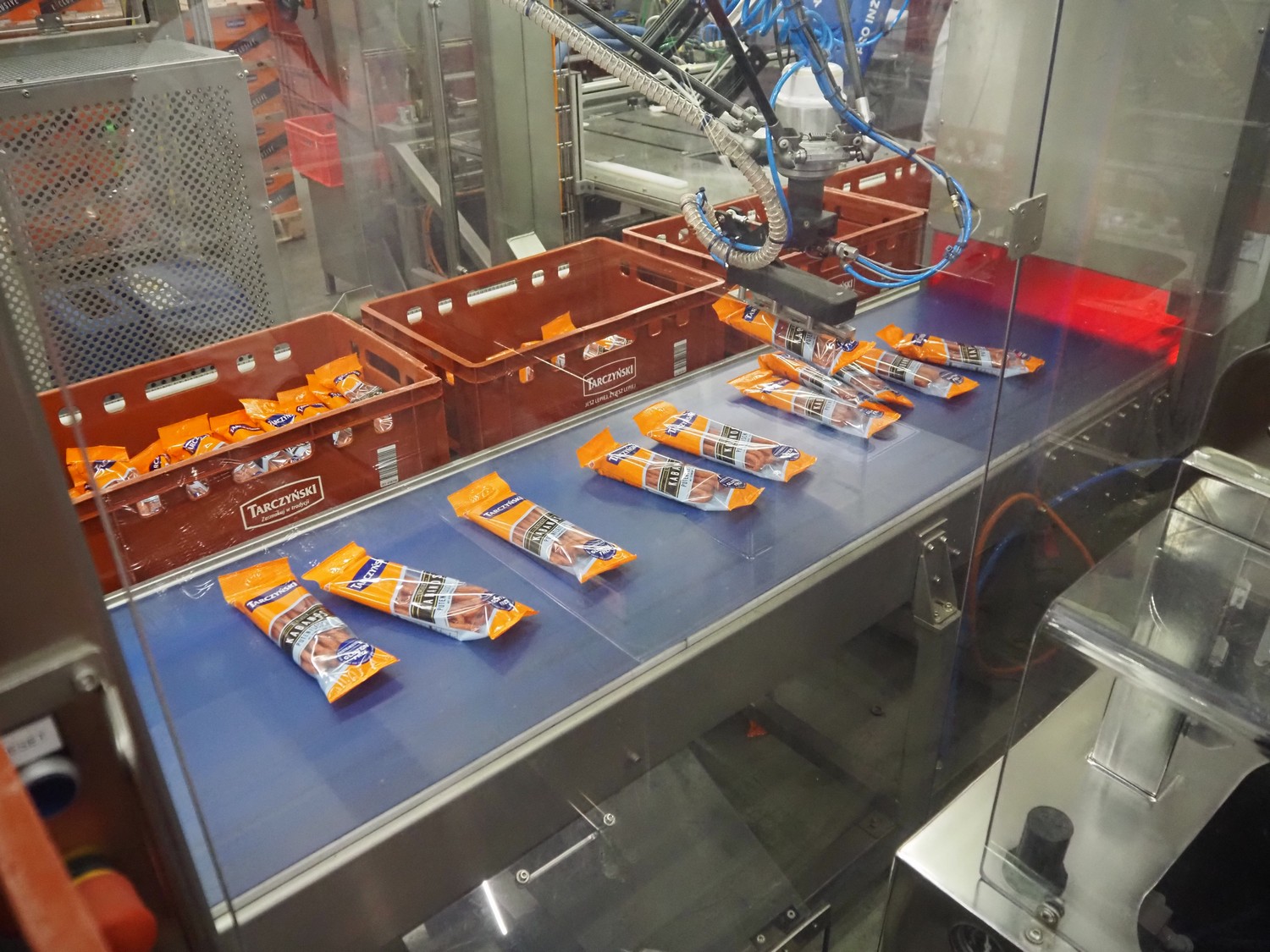 Pro Inzynier pick and place robot with case packaging machine, serial number: CP/2/05/2021, year of construction: 2021, 400 V, 50 Hz, 12 kW, weight: 10000 kg, plastic belt, belt width: 500 mm, clearance: 530 mm x 120 mm, total dimensions: 8300 mm x 2700 mm x 3000 mm.