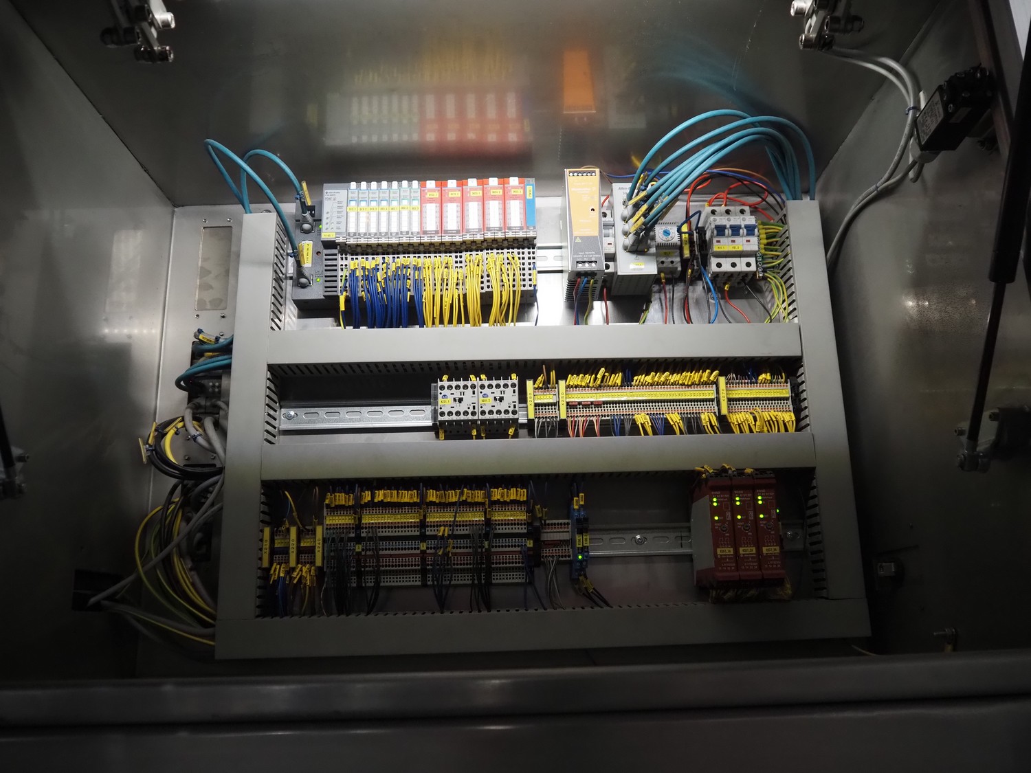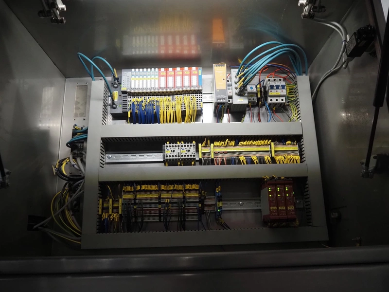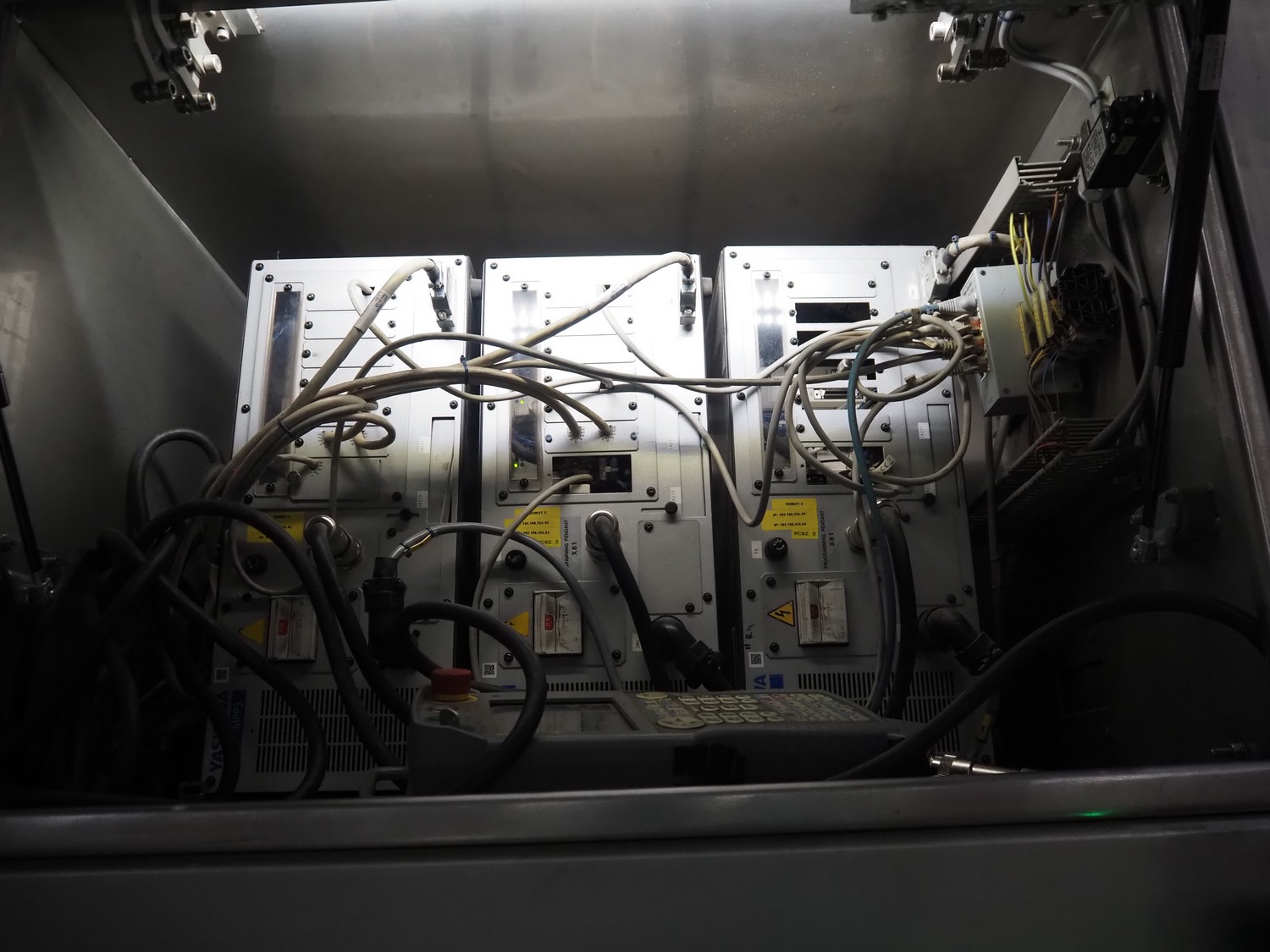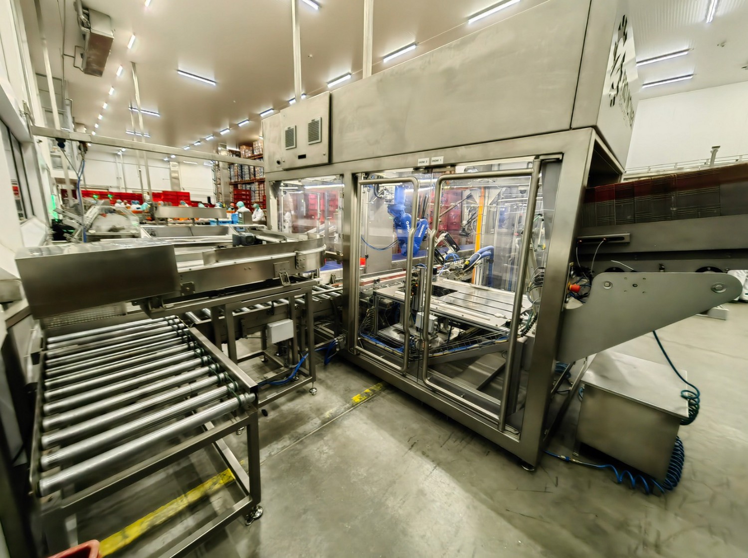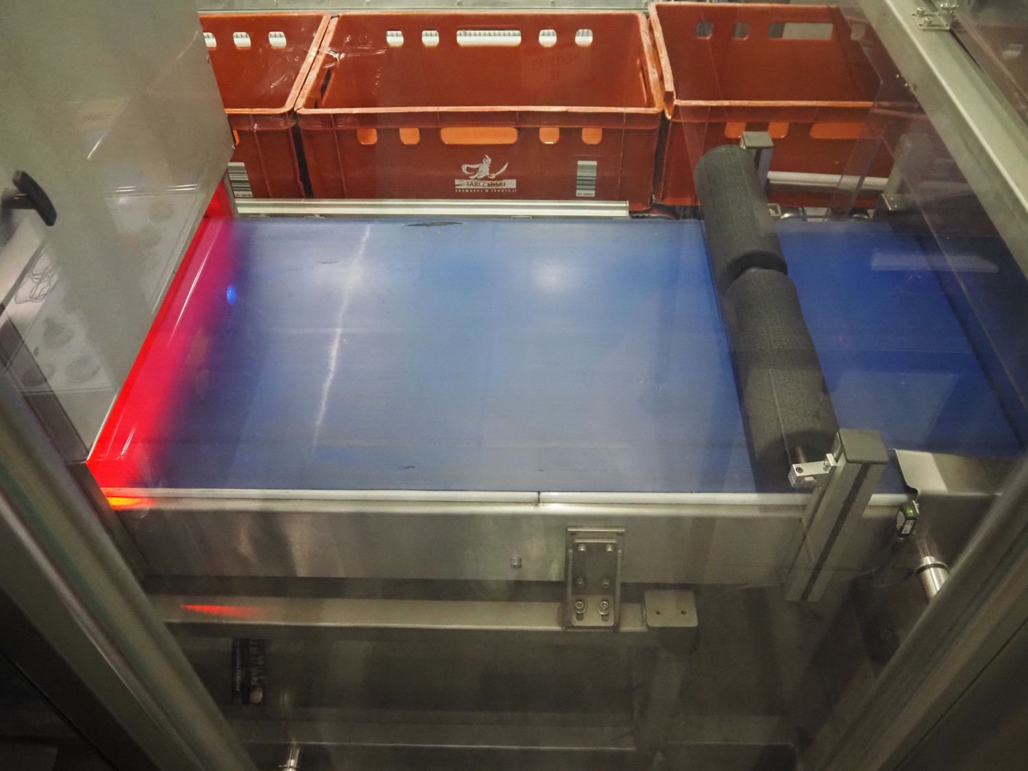 Pro Inzynier pick and place robot with case packaging machine, serial number: CP/2/05/2021, year of construction: 2021, 400 V, 50 Hz, 12 kW, weight: 10000 kg, plastic belt, belt width: 500 mm, clearance: 530 mm x 120 mm, total dimensions: 8300 mm x 2700 mm x 3000 mm.