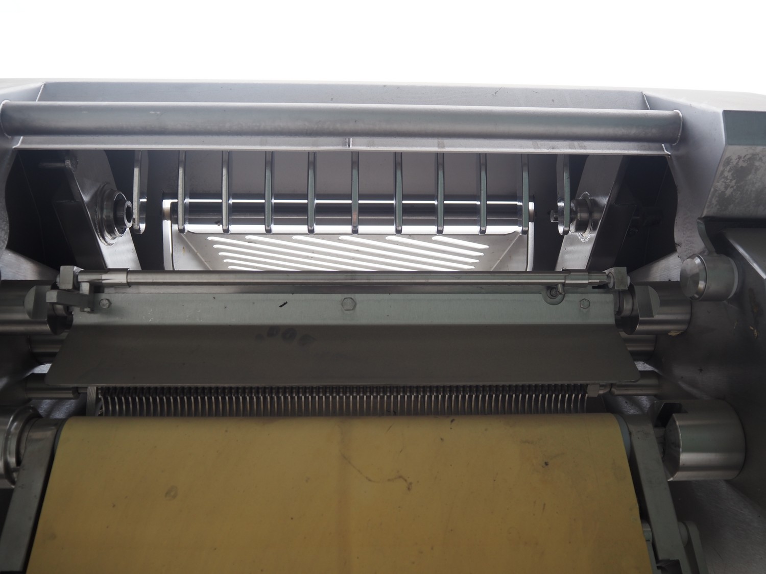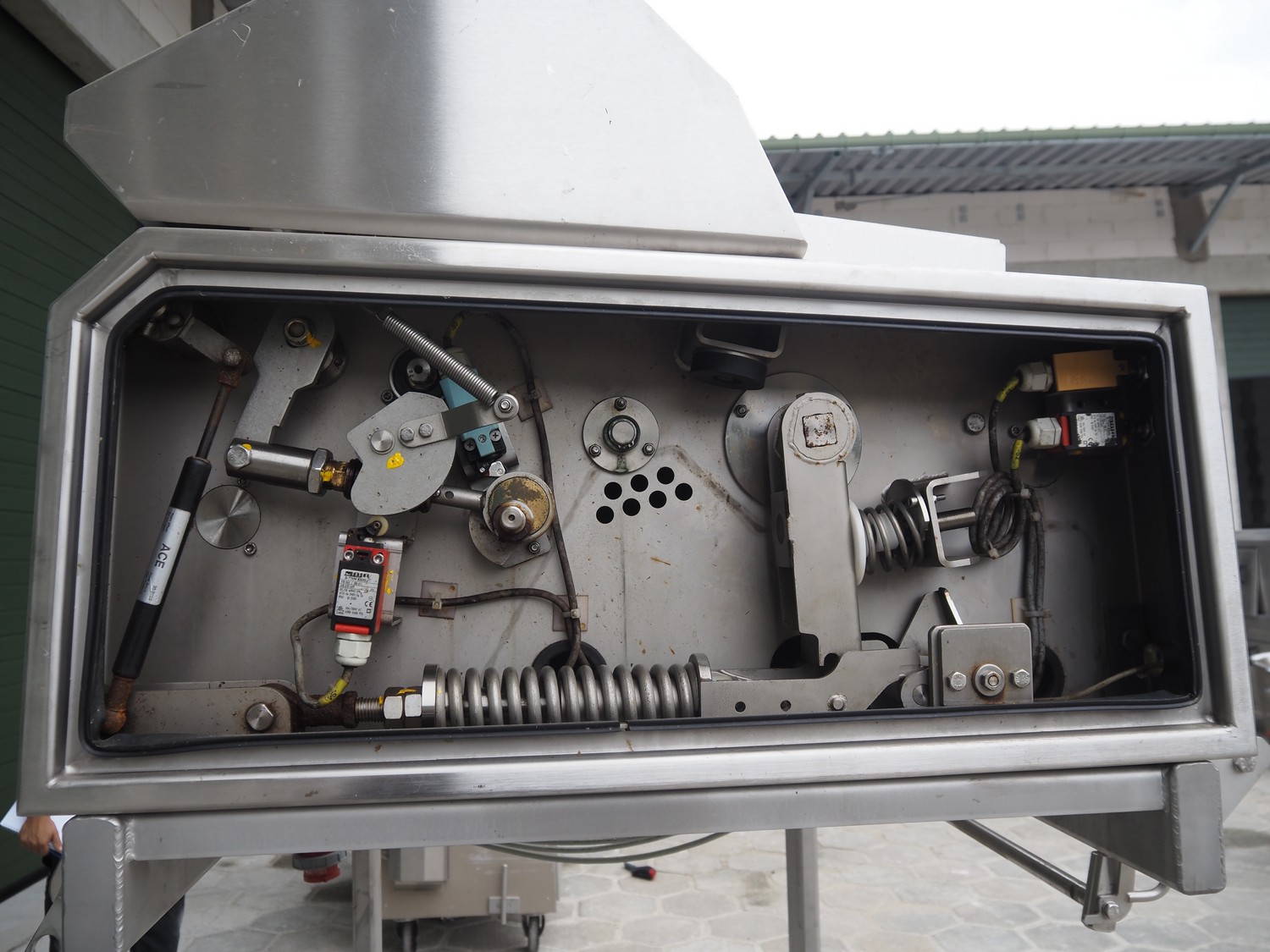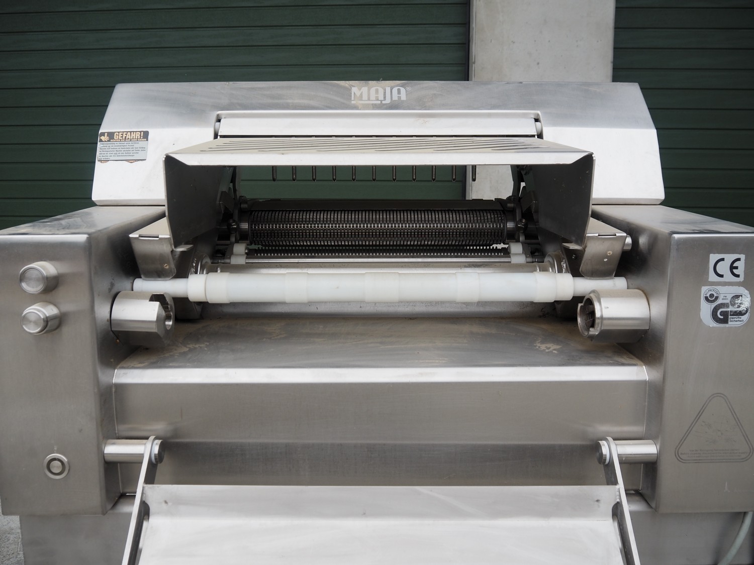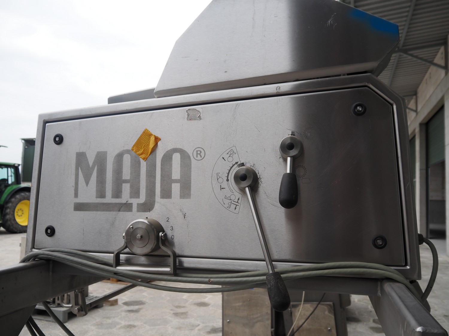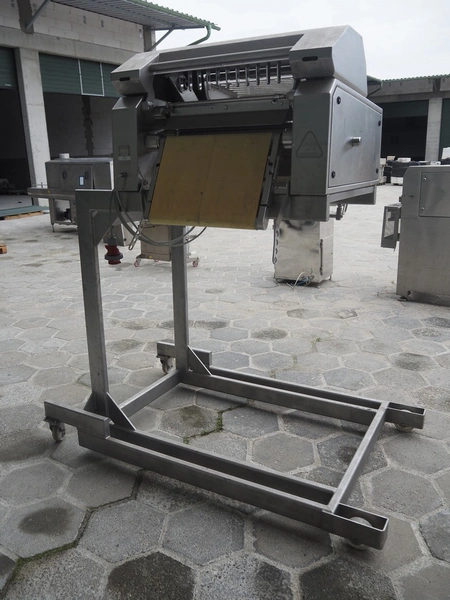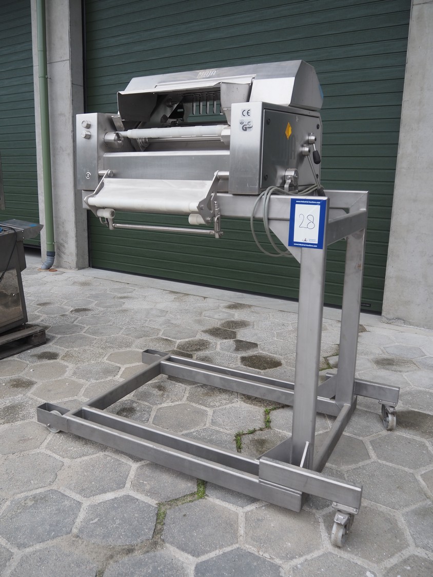 Maja mobile skinning machine, type: BXM 554, serial number:M-46555, year of construction: 2007, 400 V, 3 Ph, 50 Hz, 2,8 A, 1.1 kW, plastic belt, belt width: 500 mm, working width: 550 mm, total dimensions: 1855 mm x 1200 mm x 2000 mm.