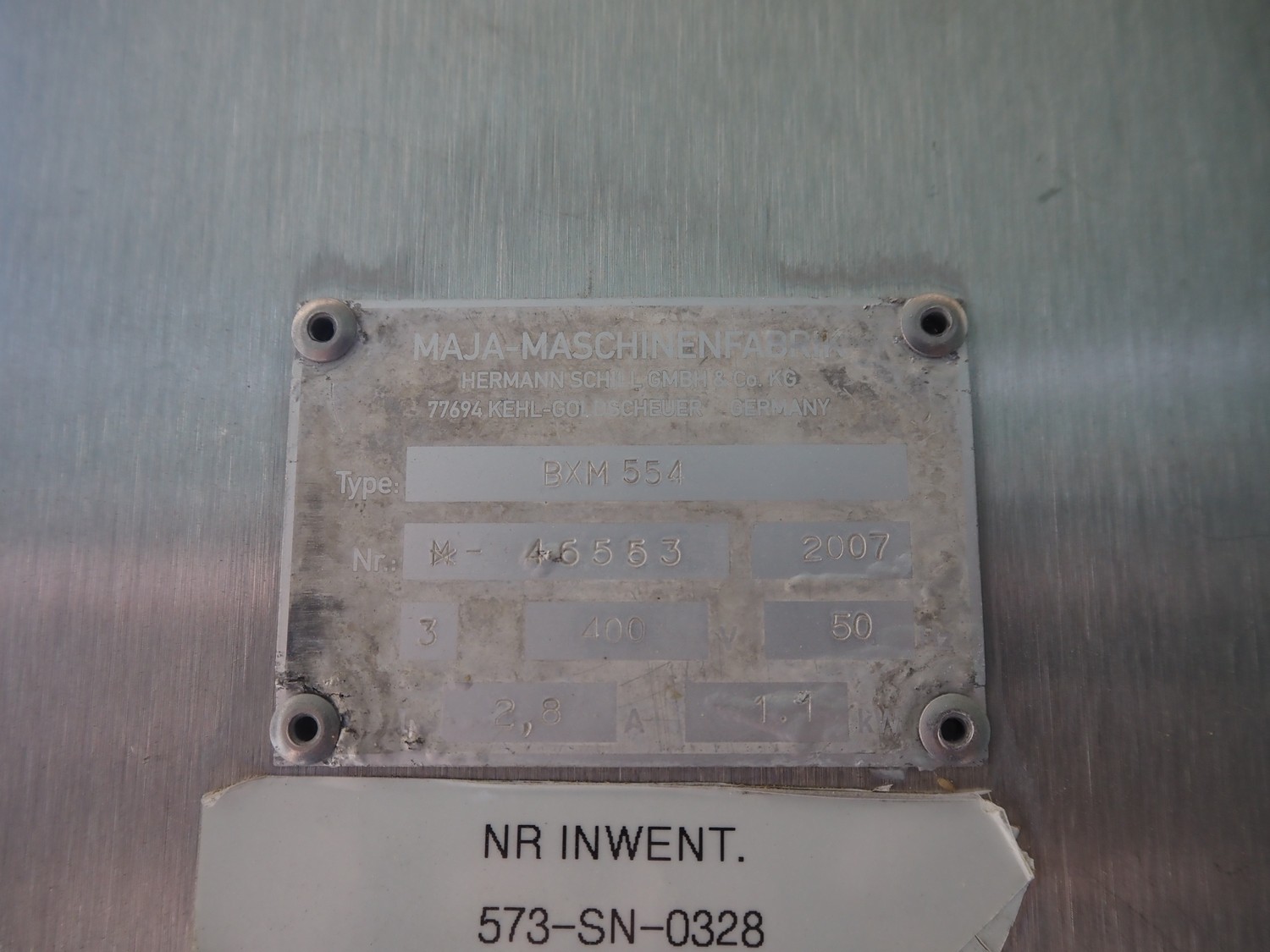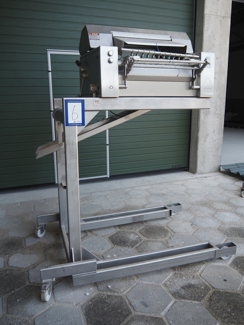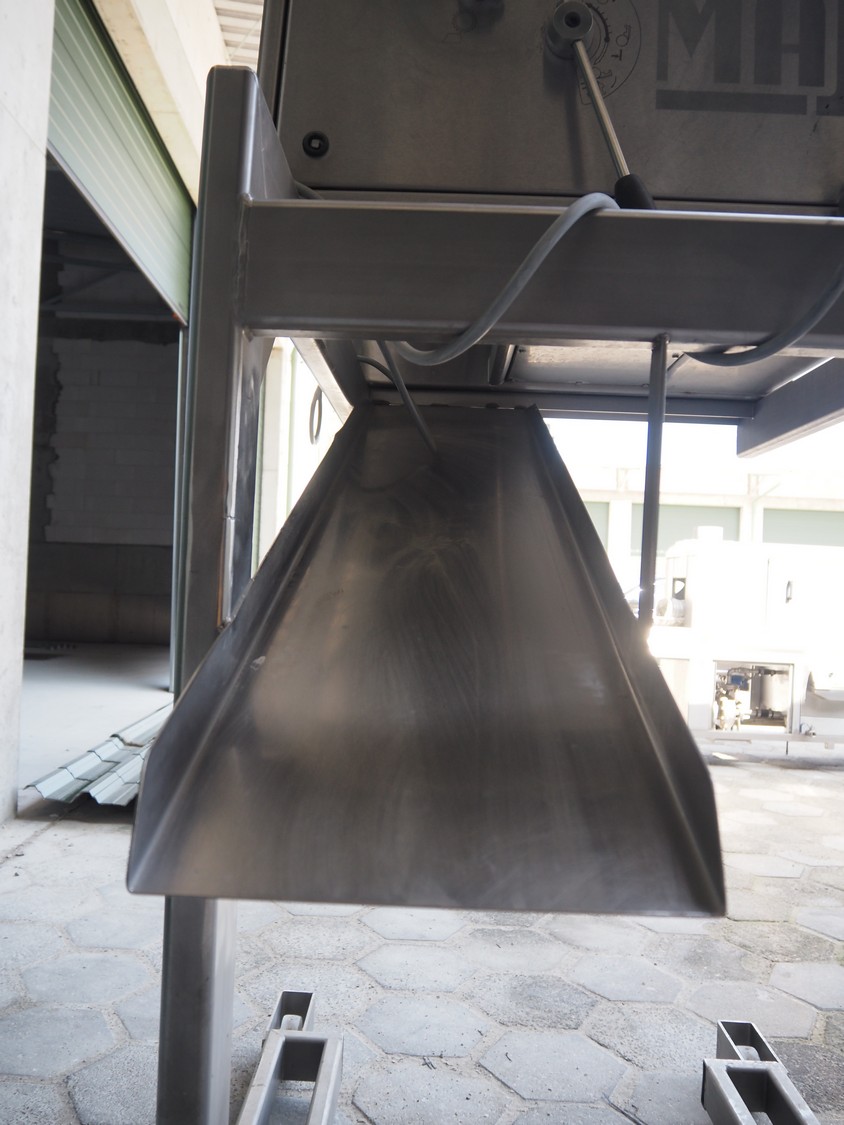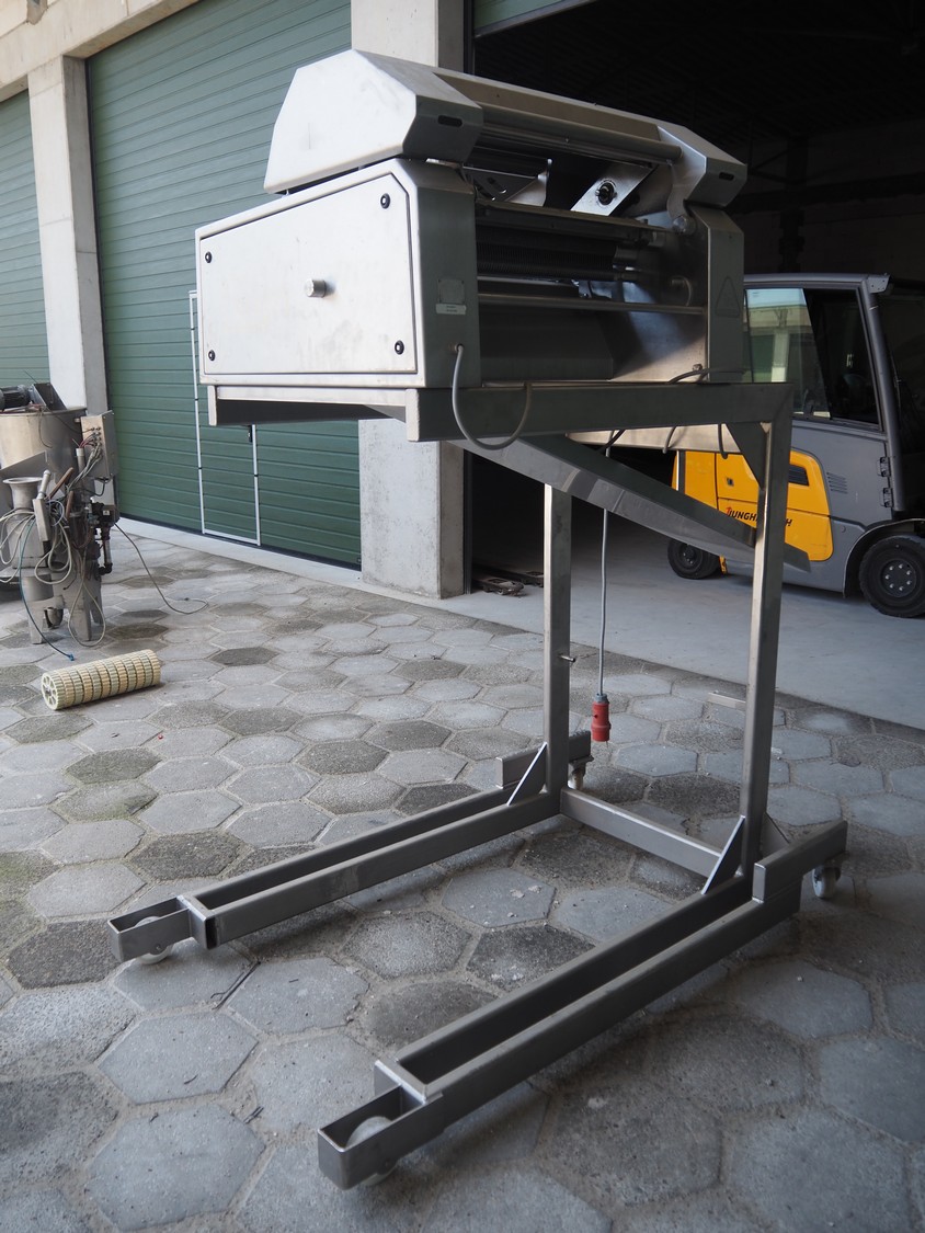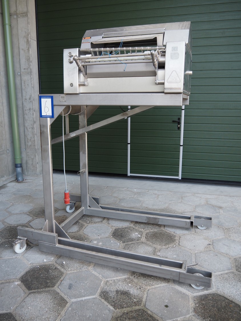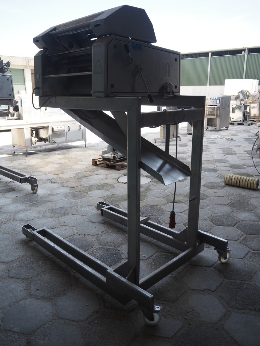 Maja mobile skinning machine, type: BXM 554, serial number: M-46553, year of construction: 2007, 400 V, 3 Ph, 50 Hz, 2,8 A, 1.1 kW, working width: 550, total dimensions: 1850 mm x 1200 mm x 2180 mm. Incomplete.