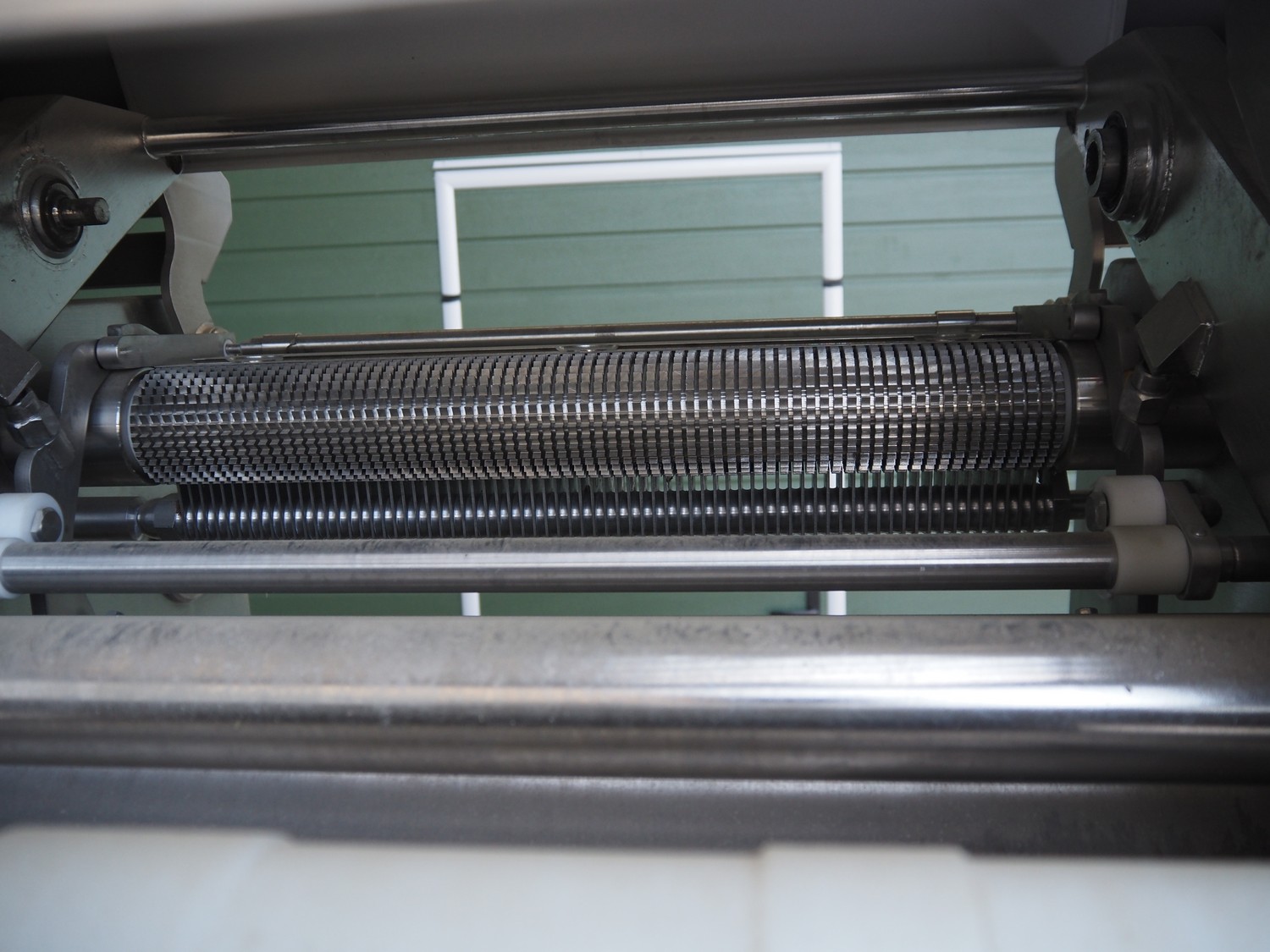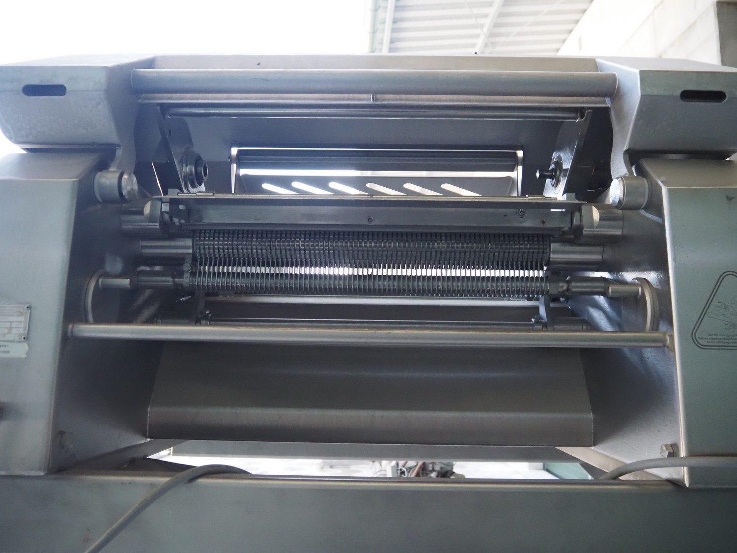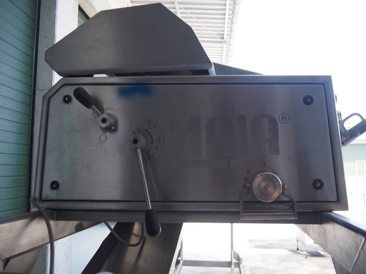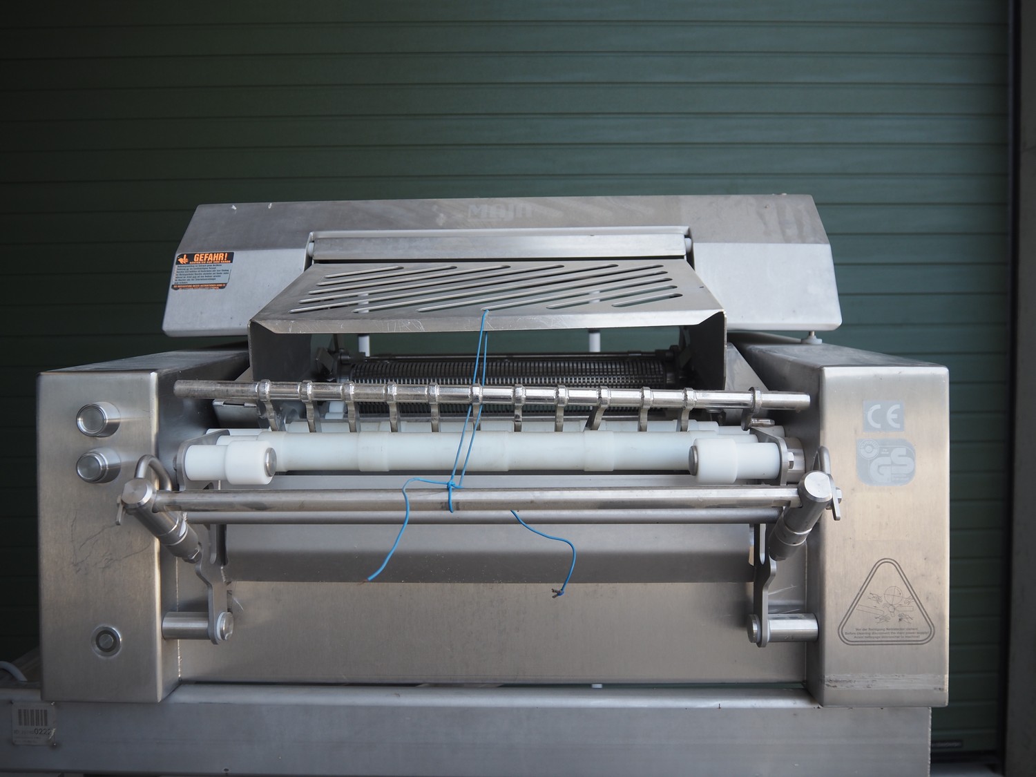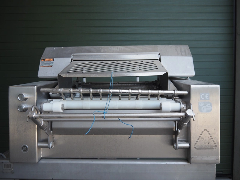 Maja mobile skinning machine, type: BXM 554, serial number: M-46553, year of construction: 2007, 400 V, 3 Ph, 50 Hz, 2,8 A, 1.1 kW, working width: 550, total dimensions: 1850 mm x 1200 mm x 2180 mm. Incomplete.