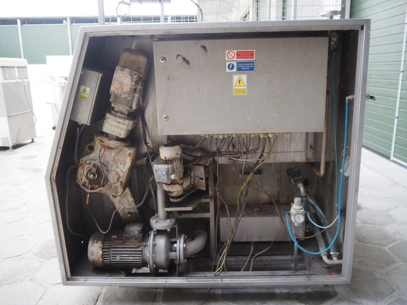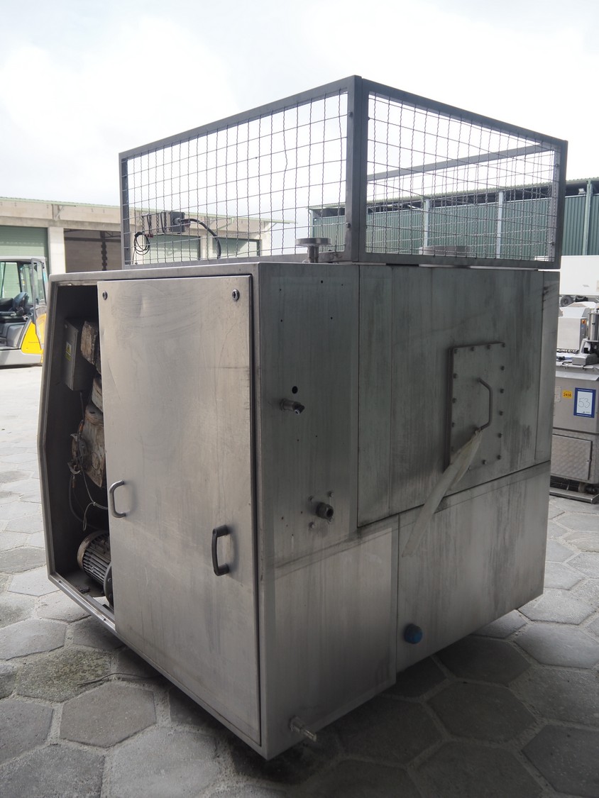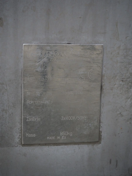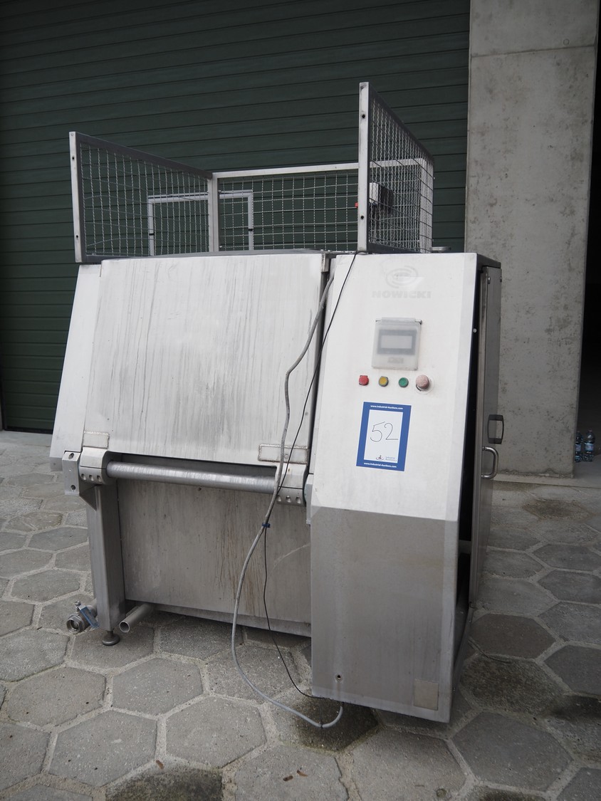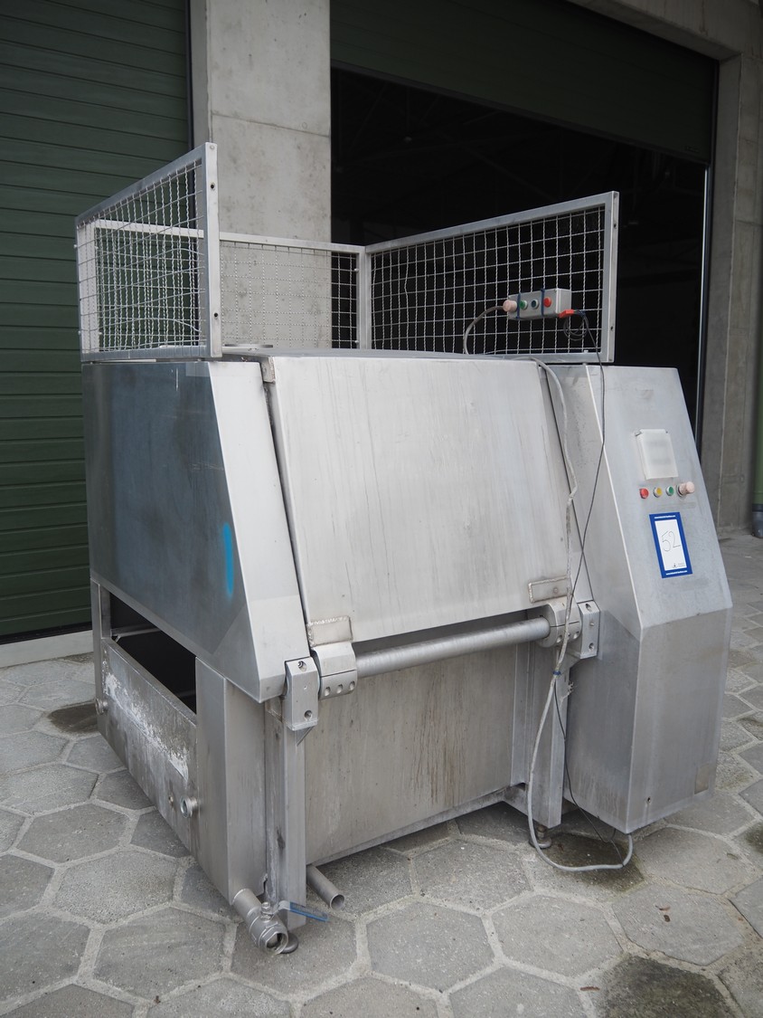 Nowicki meat bin washer for 200 liter meat bins, type: MWF, serial number: 96312046, year of construction: 2012, 3x400 V, 50 Hz, weight: 850 kg, dimensions: 1750 mm x 1650 mm x 2050 mm. Defect.