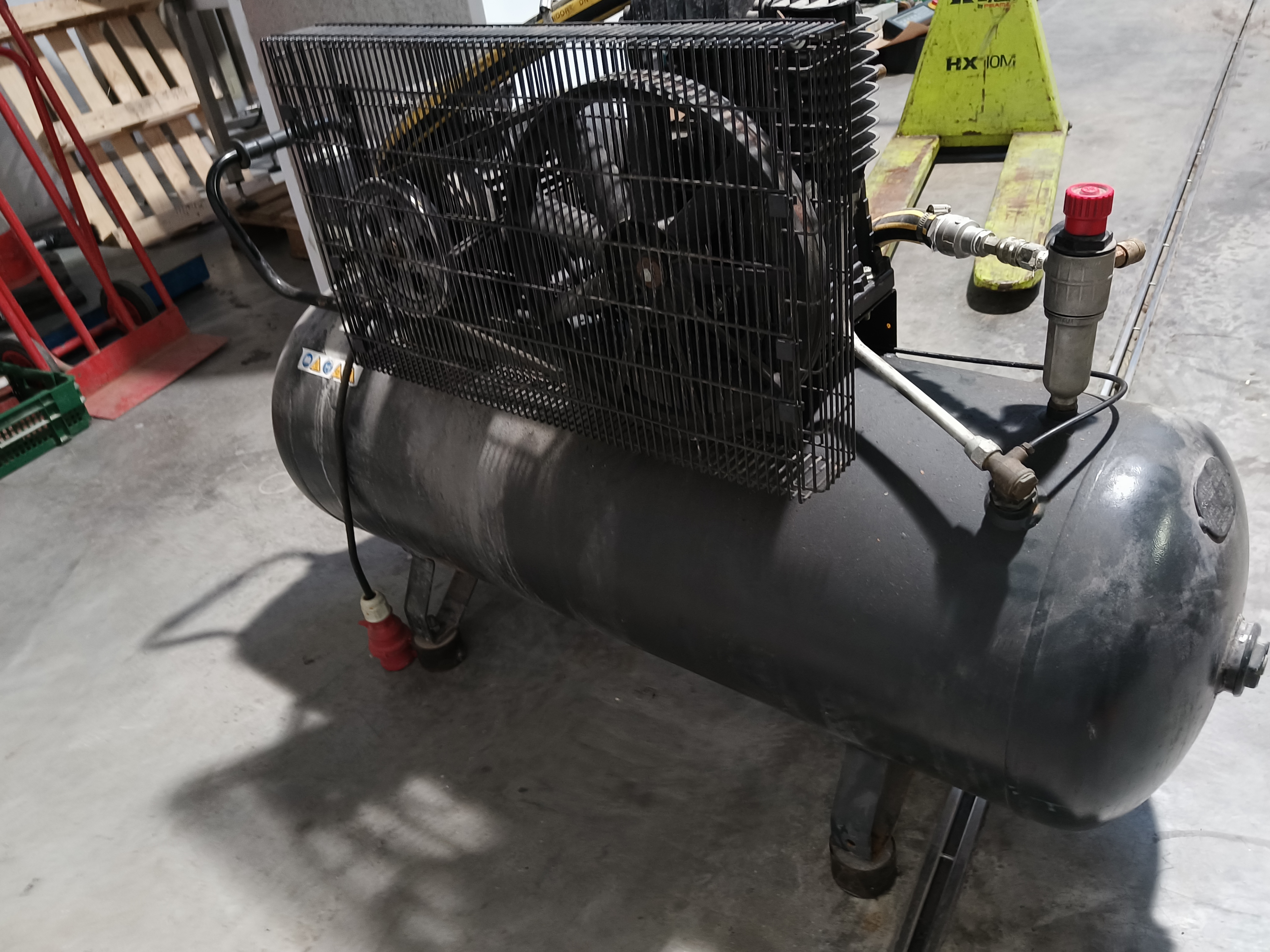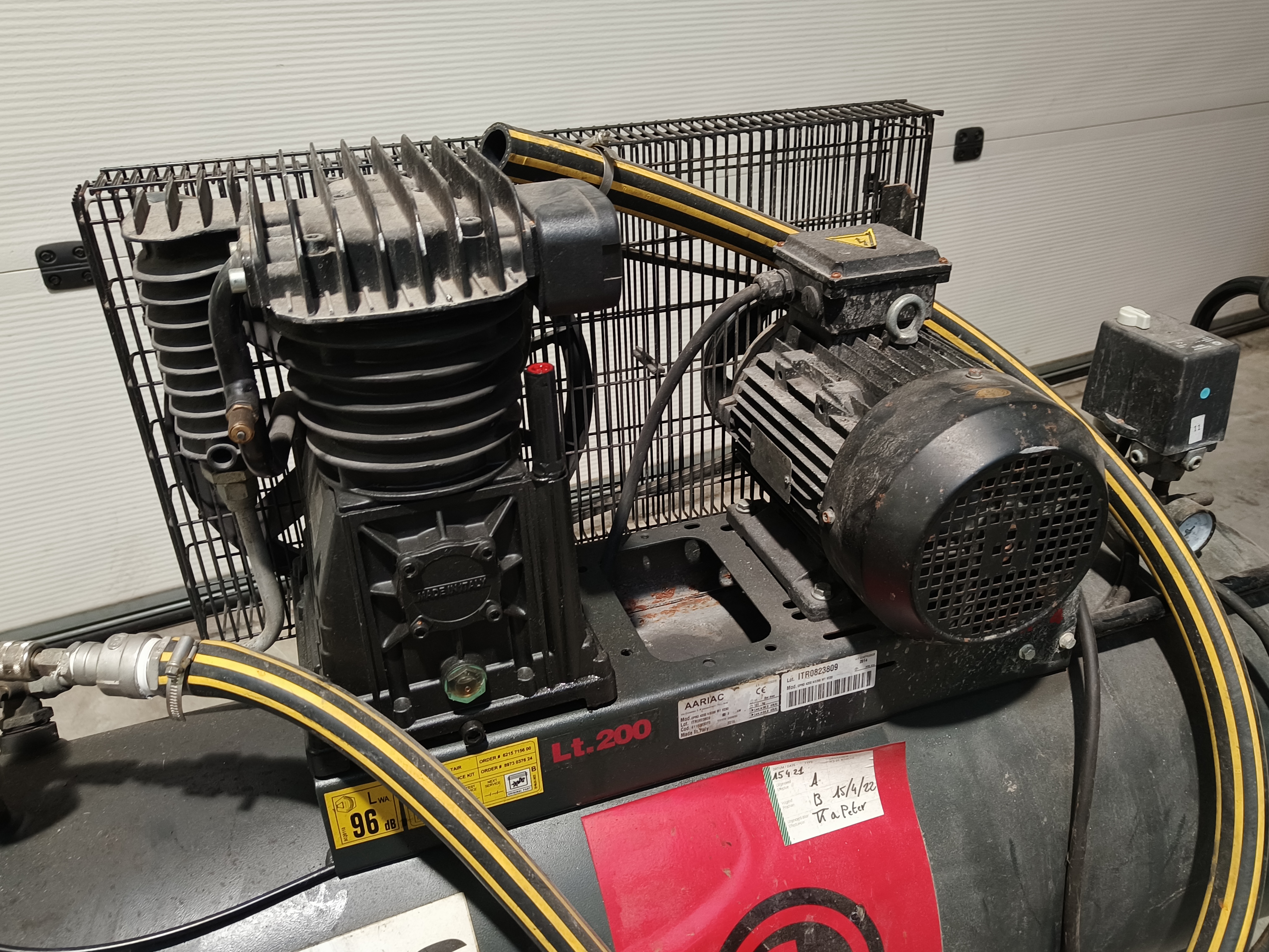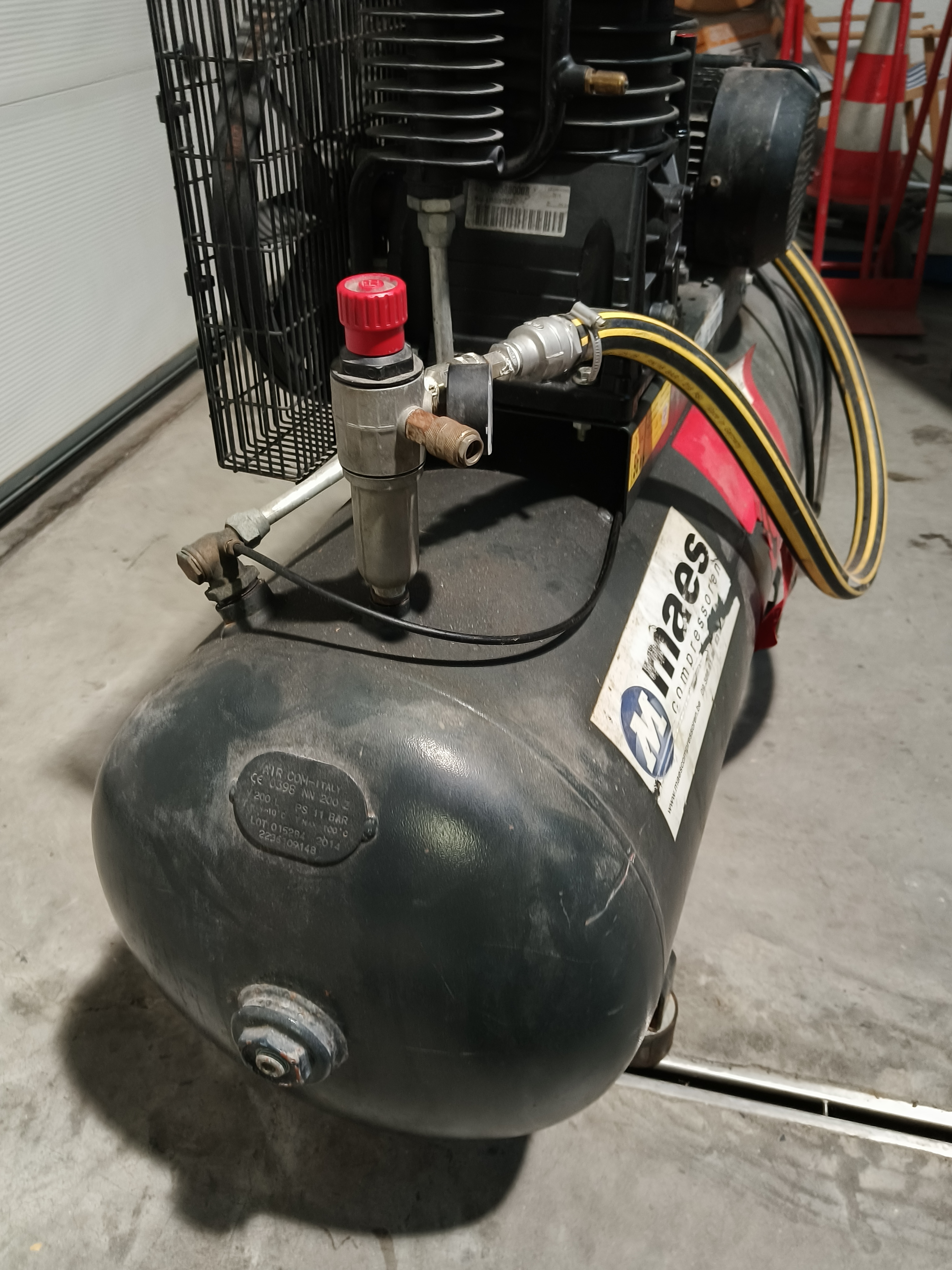 Aariac air compressor, model: CPRD 4200 N 8298 MT V230, year of construction: 2014, 230 V, 3 Ph, 50 Hz, 3 kW, maximum pressure: 11 bar, weight: 121 kg, dimensions: 1550 mm x 500 mm x 950 mm.
