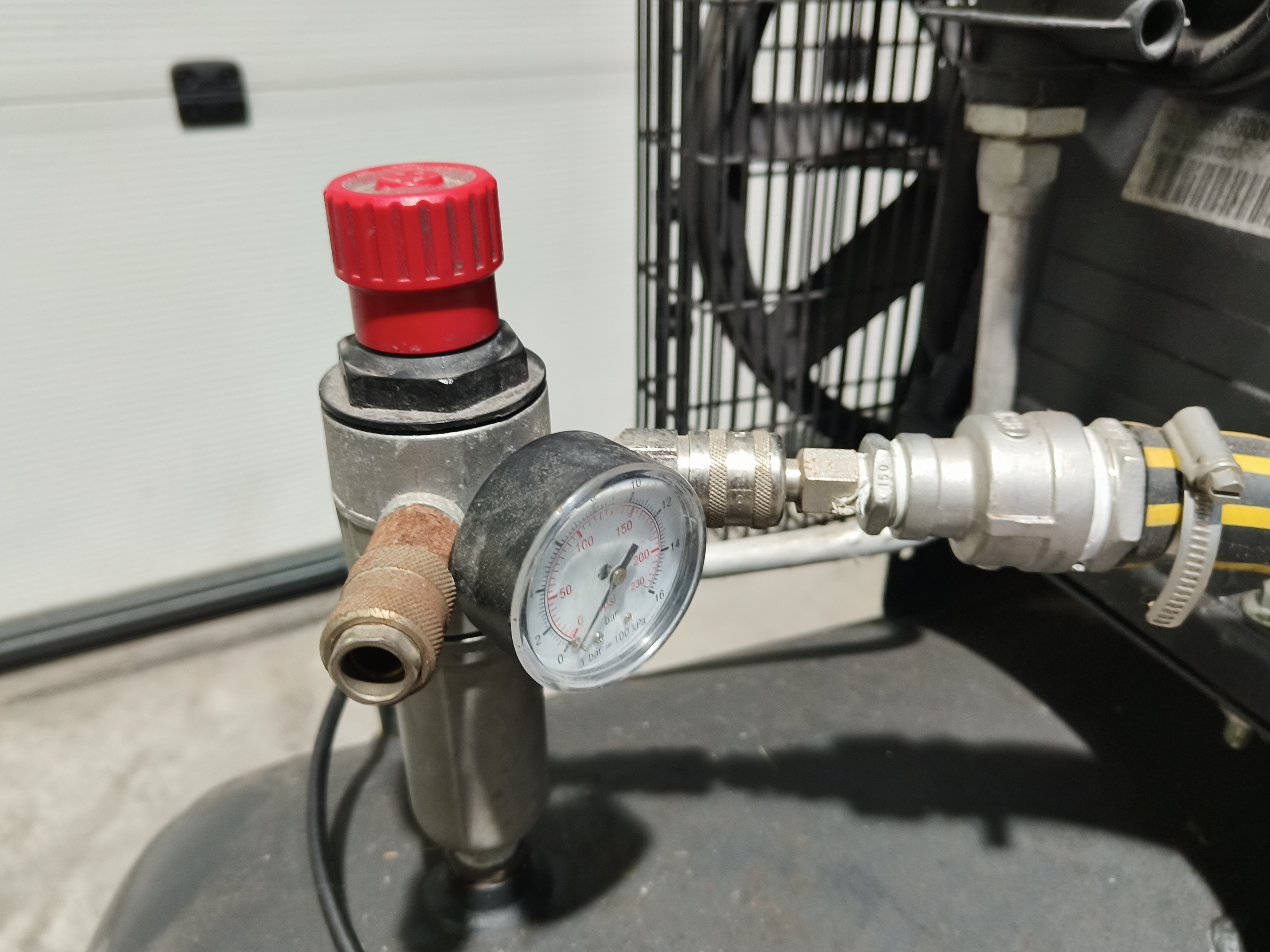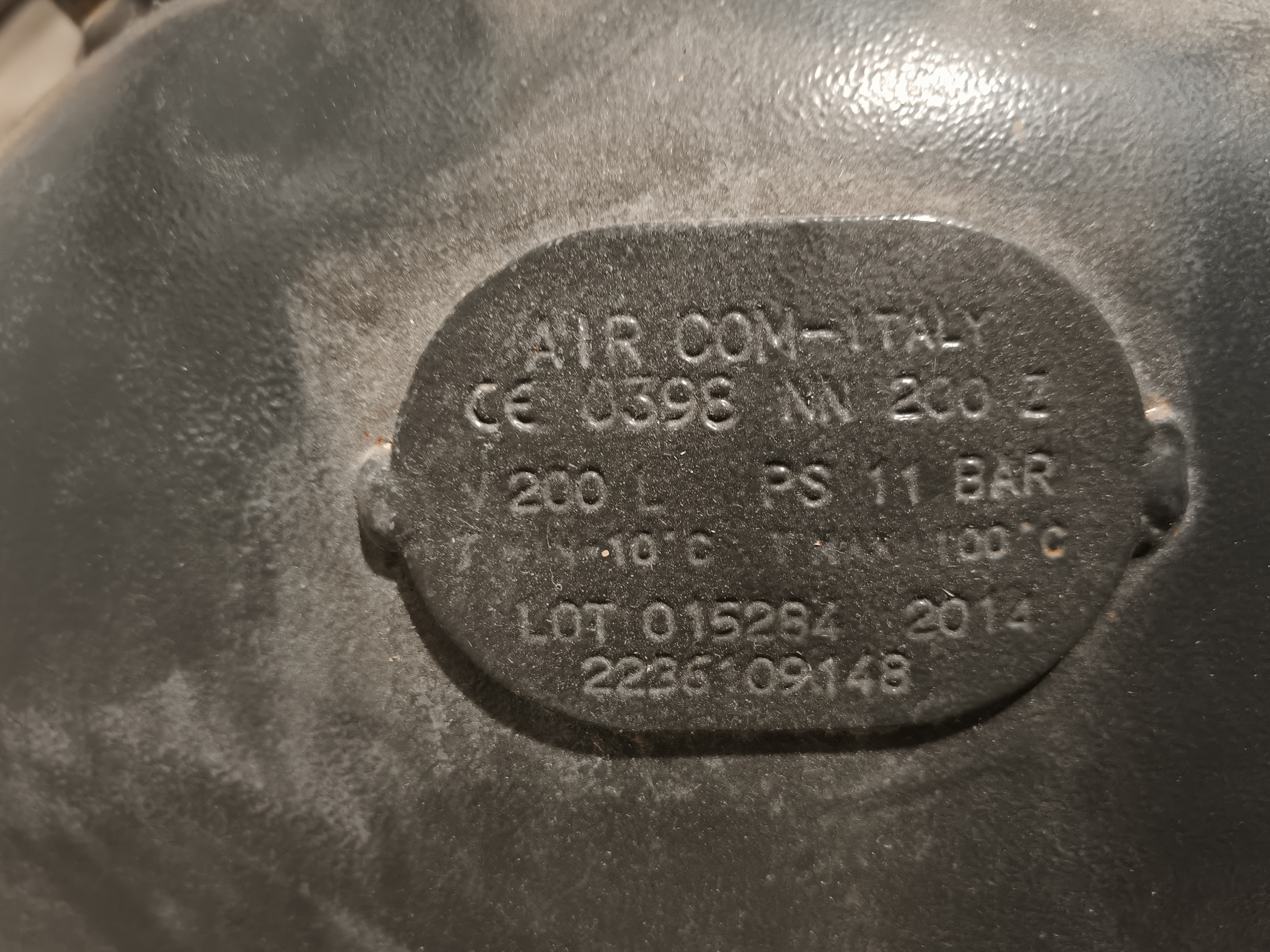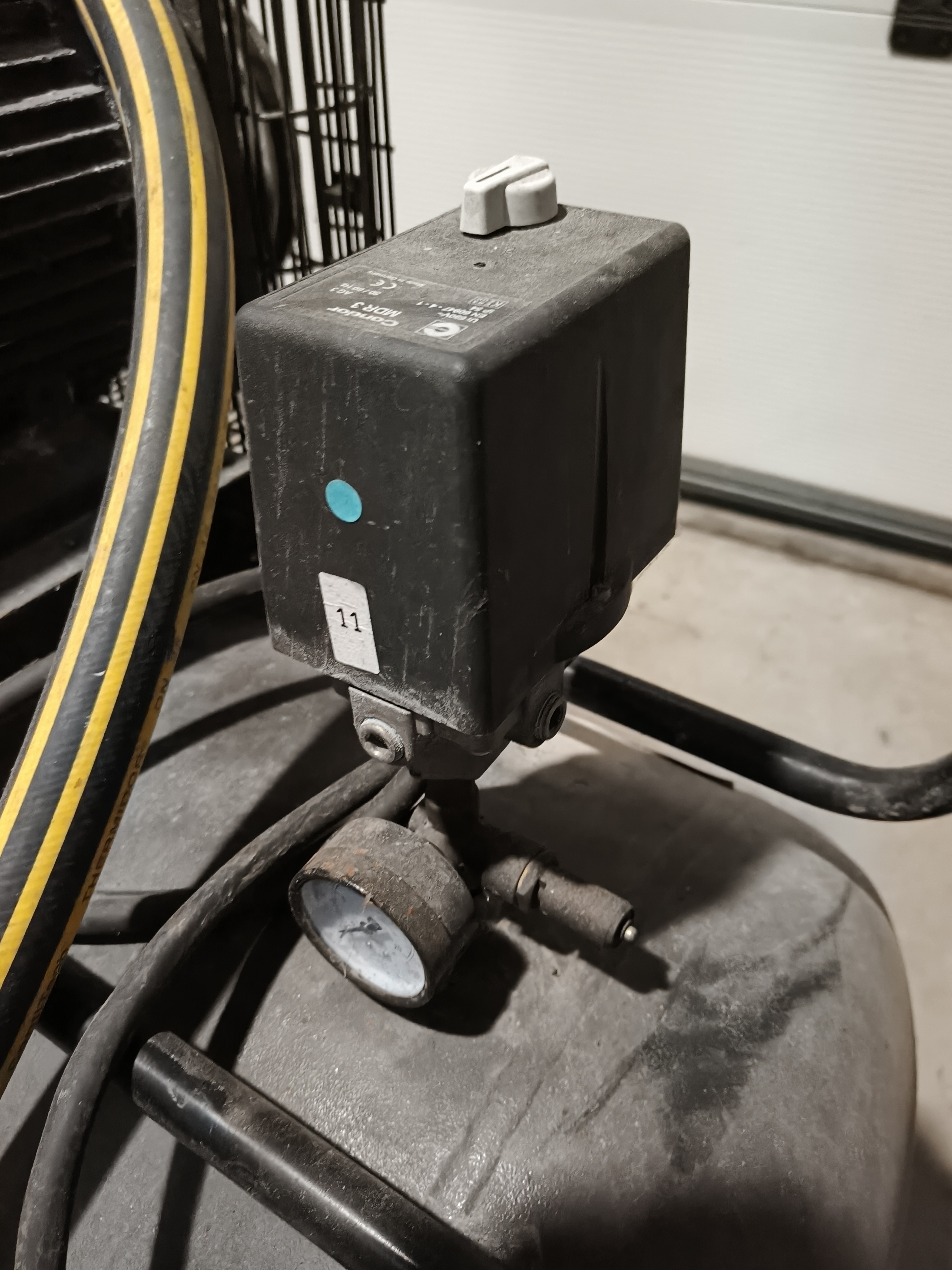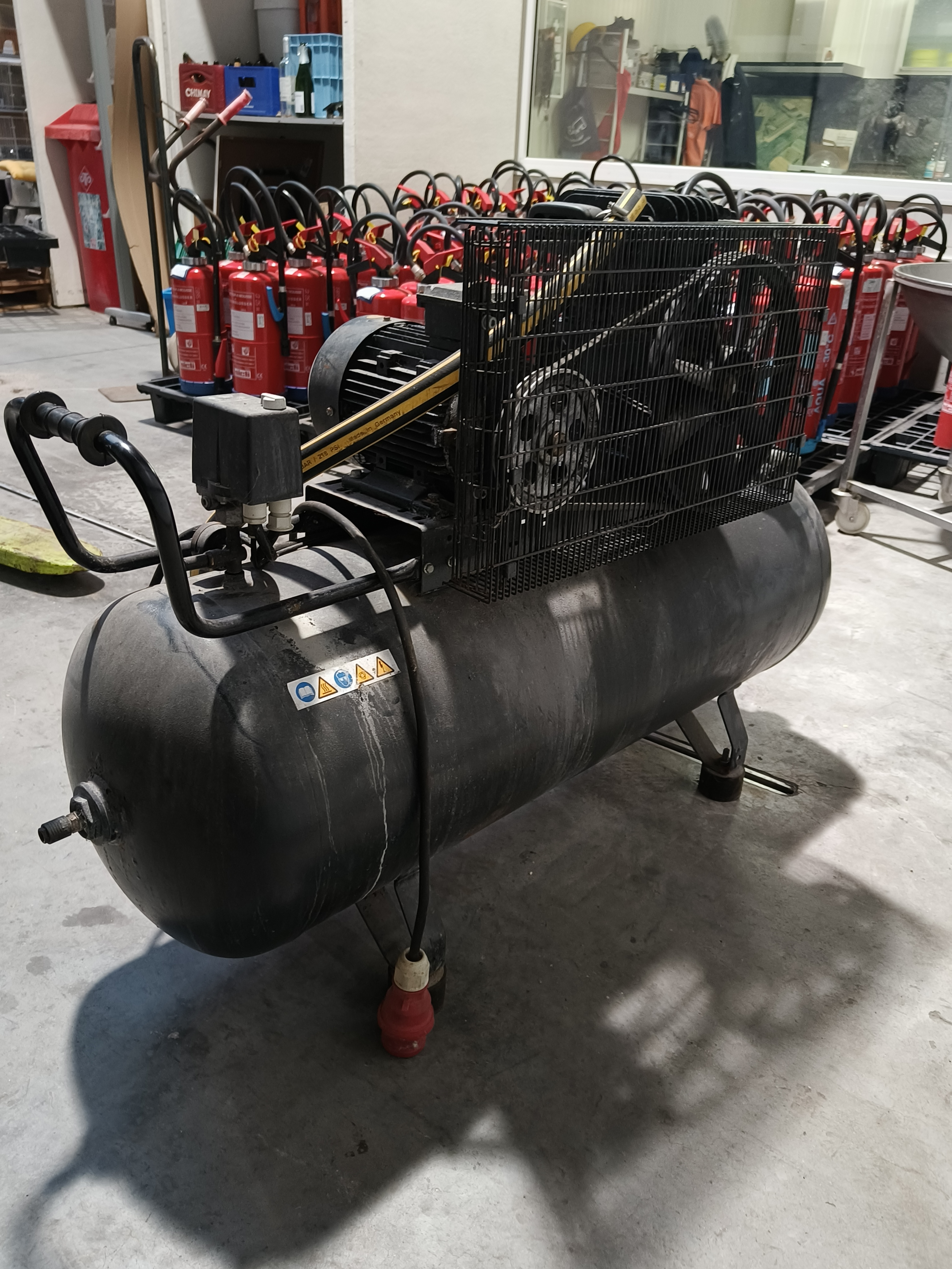 Aariac air compressor, model: CPRD 4200 N 8298 MT V230, year of construction: 2014, 230 V, 3 Ph, 50 Hz, 3 kW, maximum pressure: 11 bar, weight: 121 kg, dimensions: 1550 mm x 500 mm x 950 mm.
