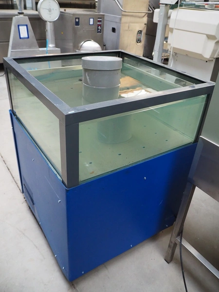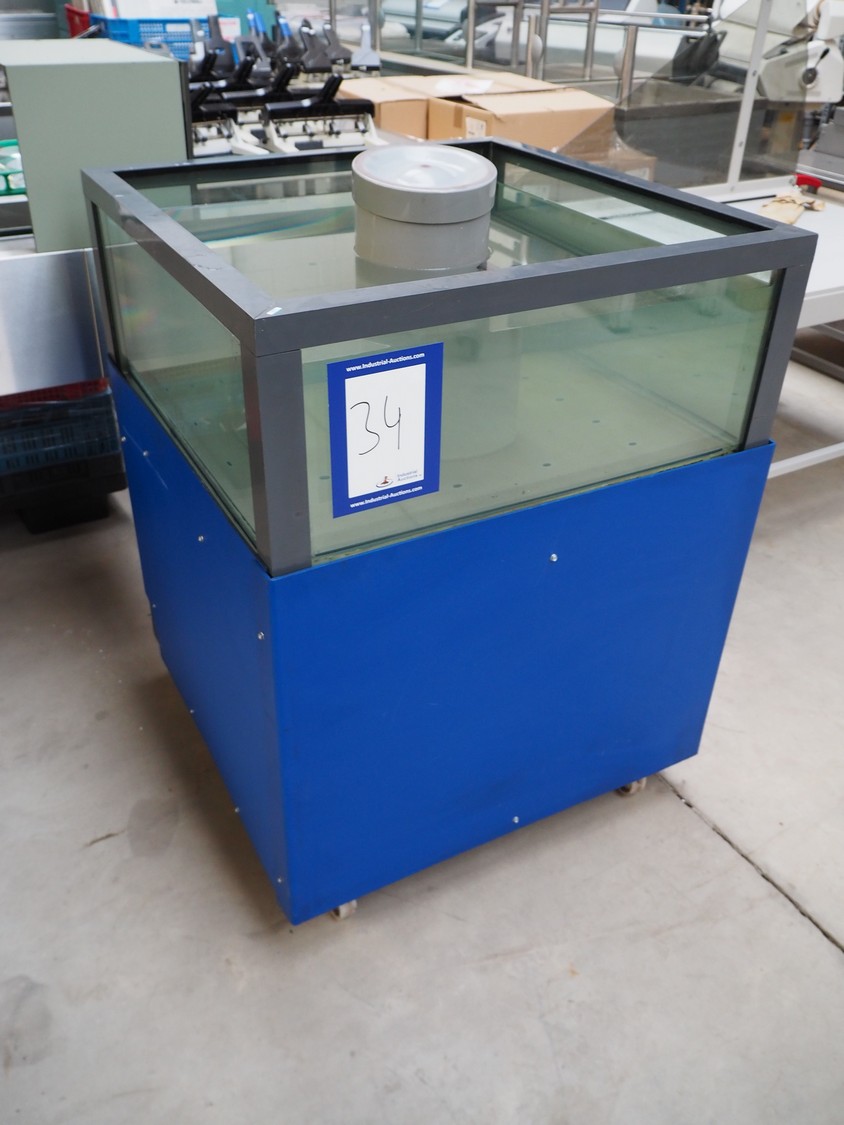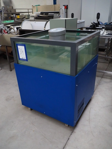 Mobile cooled oyster aquarium, inside dimensions: 730 mm x 730 mm x 300 mm, total dimensions: 810 mm x 810 mm x 1070 mm.