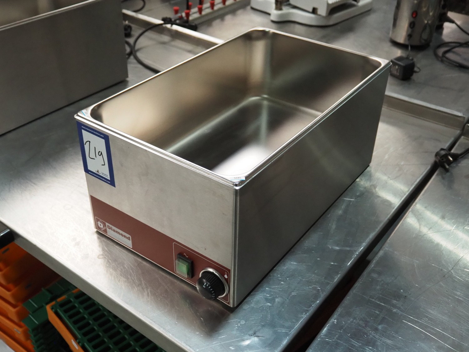 Diamond au bain-marie, model: BM1/X, 220-240 V, 50 Hz, 1500 W, inside dimensions: 300 mm x 500 mm x 160 mm, total dimensions: 560 mm x 330 mm x 250 mm.