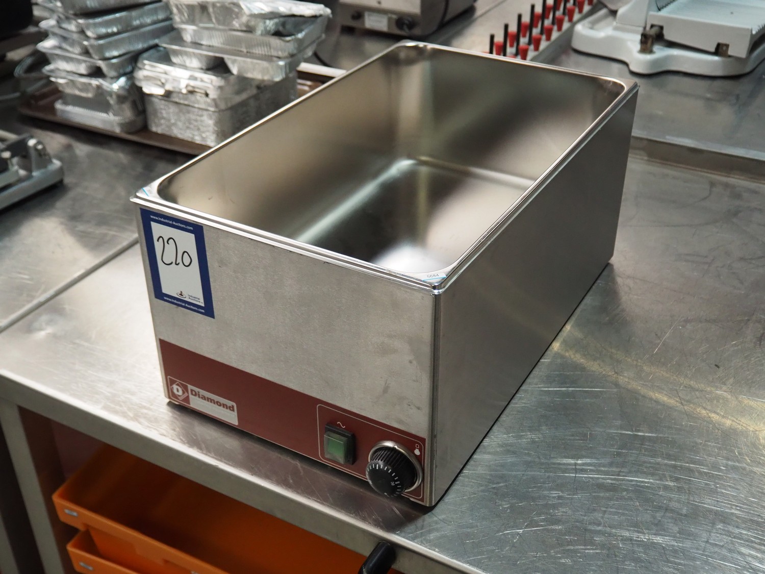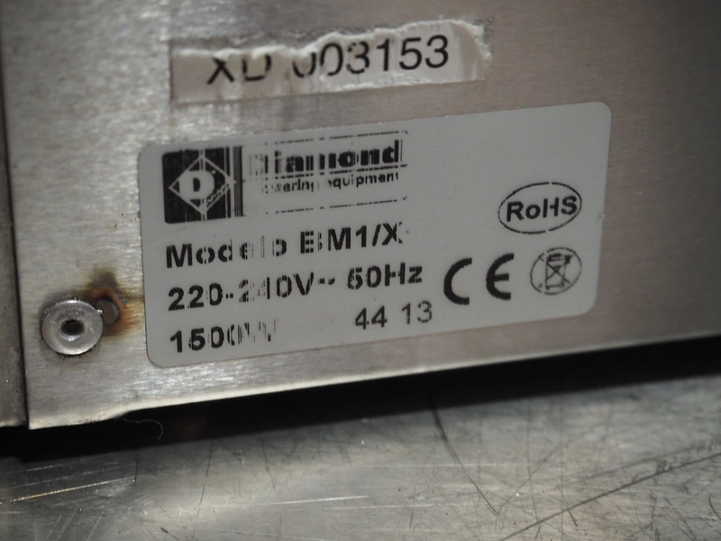 Diamond au bain-marie, model: BM1/X, 220-240 V, 50 Hz, 1500 W, inside dimensions: 300 mm x 500 mm x 160 mm, total dimensions: 560 mm x 330 mm x 250 mm.