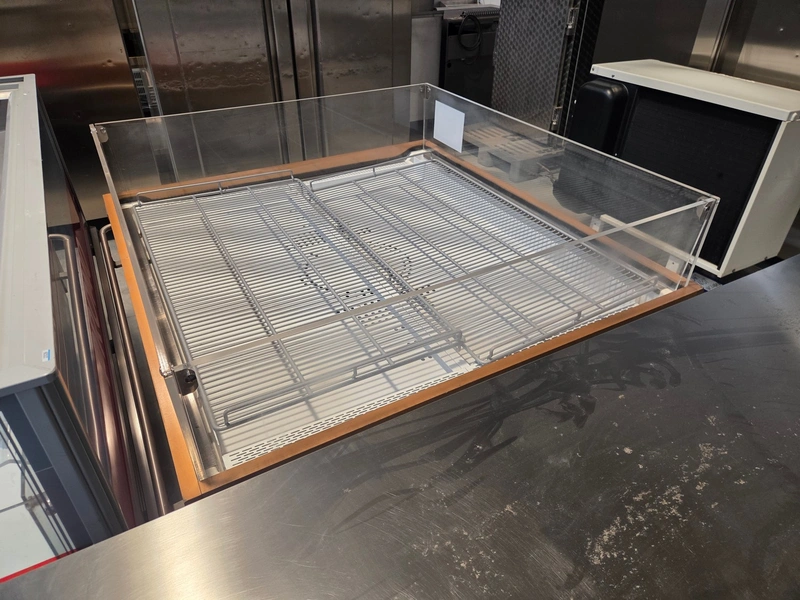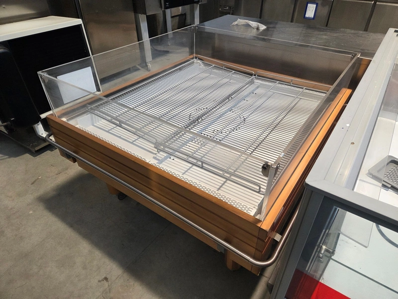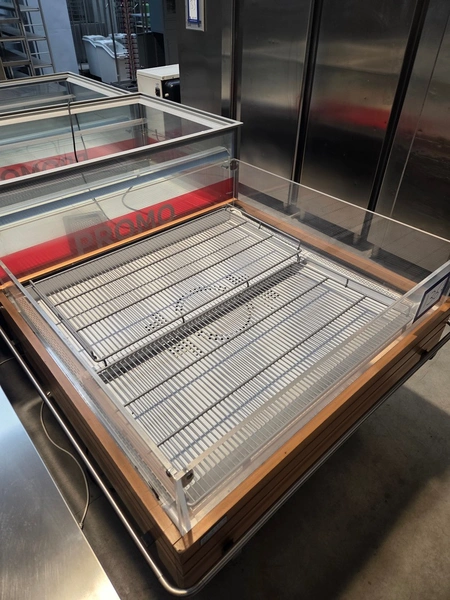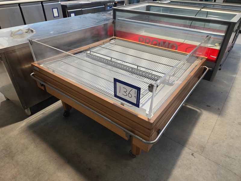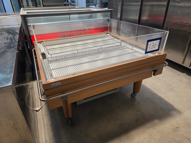 De Rigo mobile refrigerated showcase, inside dimensions: 1170 mm x 1220 mm x 250 mm, total dimensions: 1400 mm x 1330 mm x 920 mm.