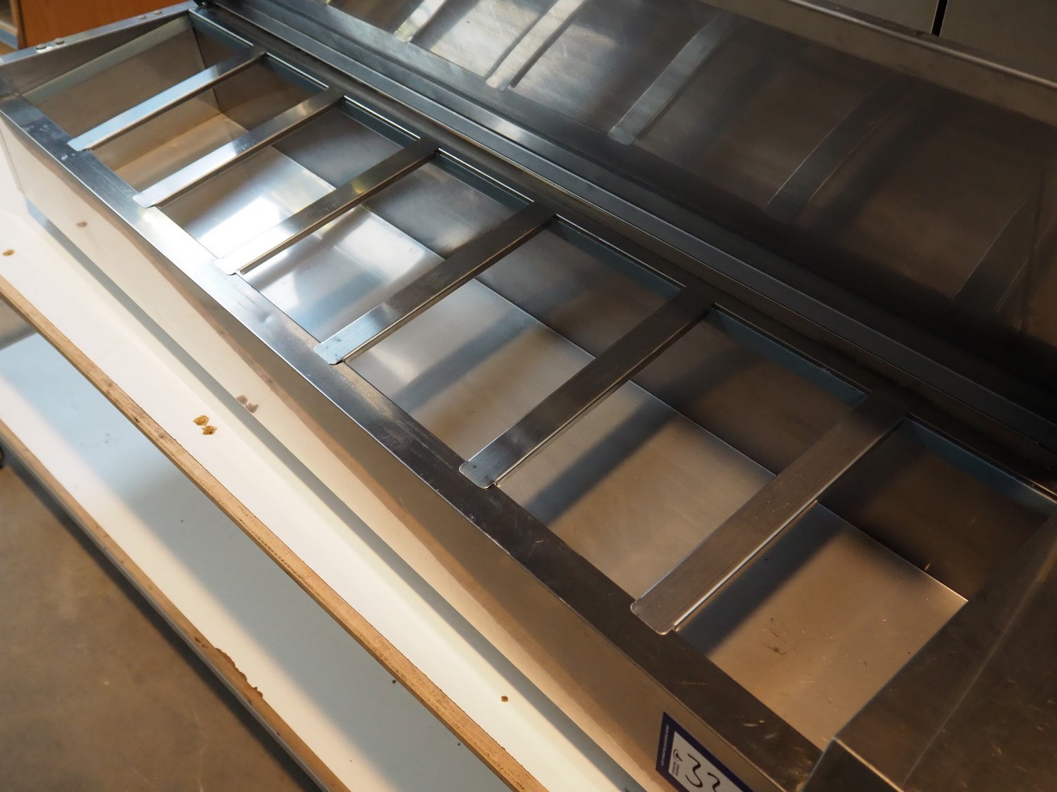 GGG Gastro salad bar, model: VRX1600/330 S/S, year of construction: 2016, 230 V, 50 Hz, 1.0 A, 150 W, refrigerant: R134a/0.135 kg, volume: 47.9 liter, dimensions: 1600 mm x 350 mm x 270 mm.