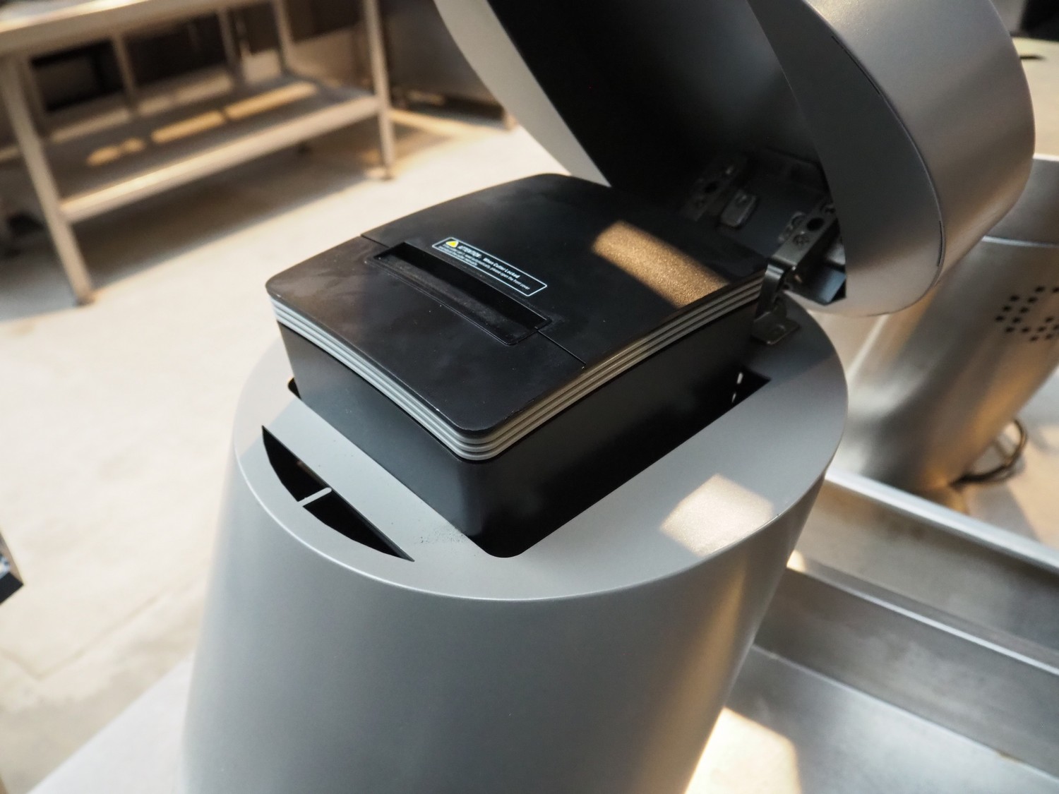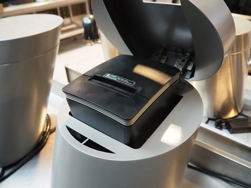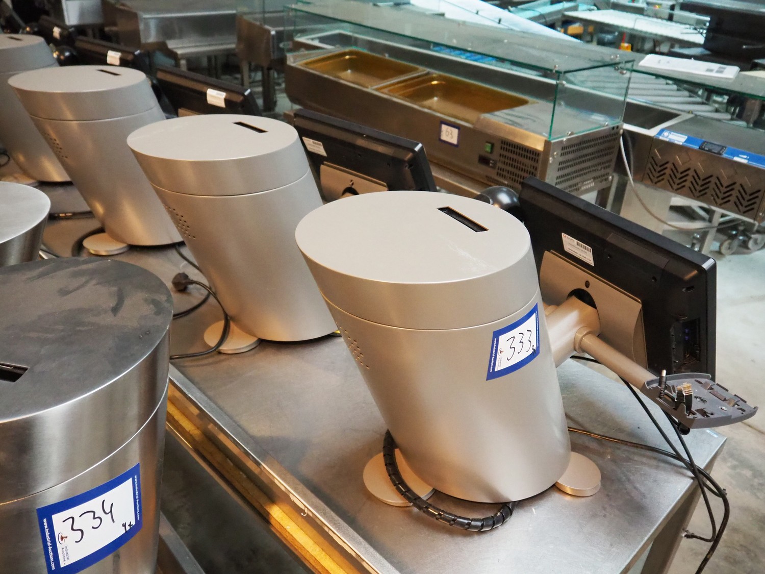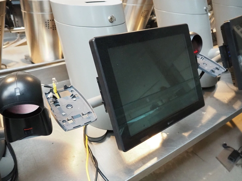 3 Quarto payment systems with receipt printer from which 6 in a frame, dimensions each: 600 mm x 600 mm x 440 mm. Table not included.