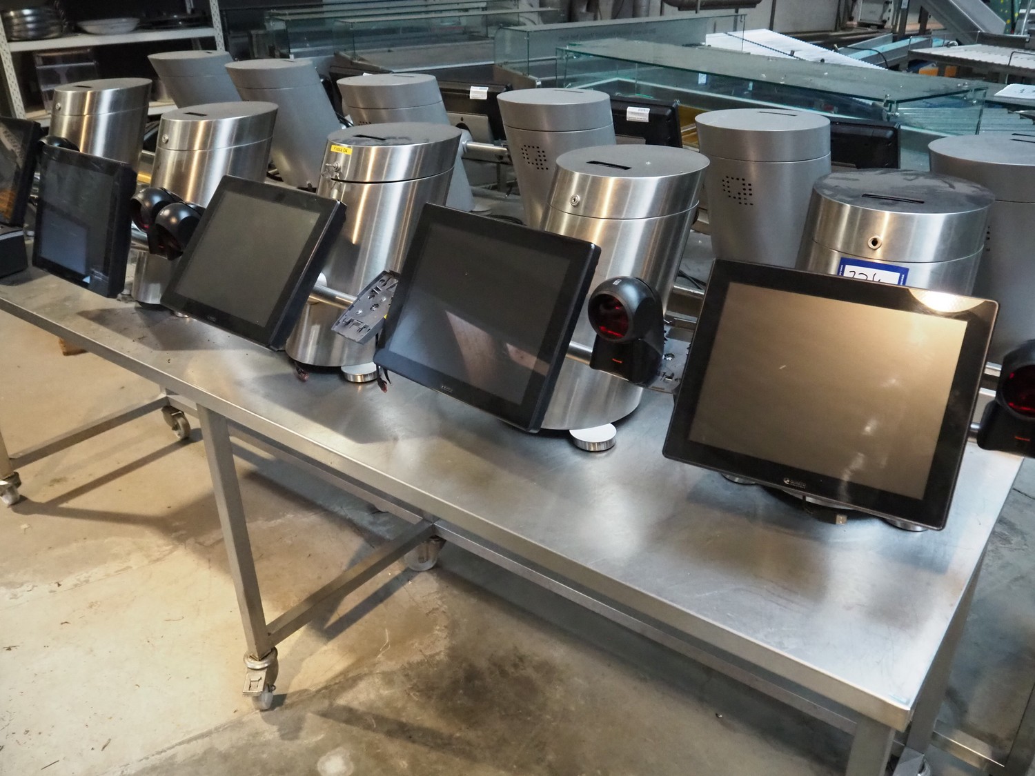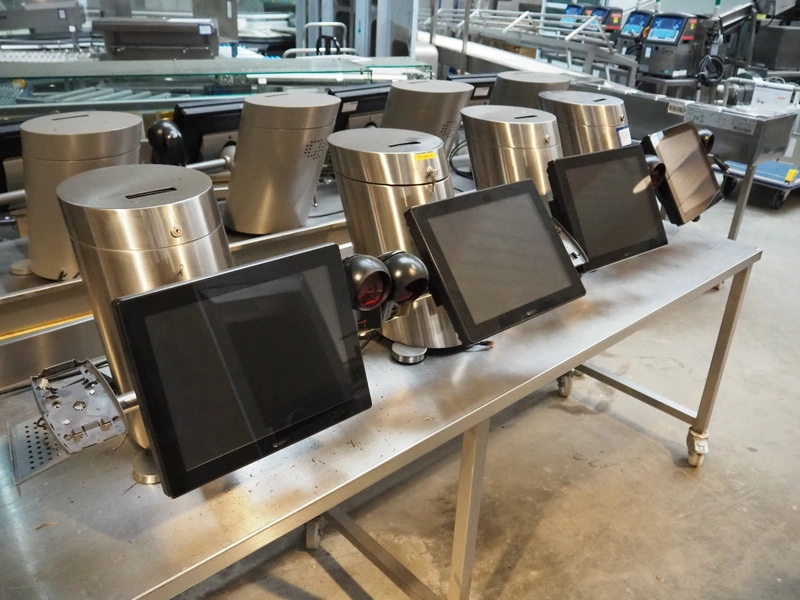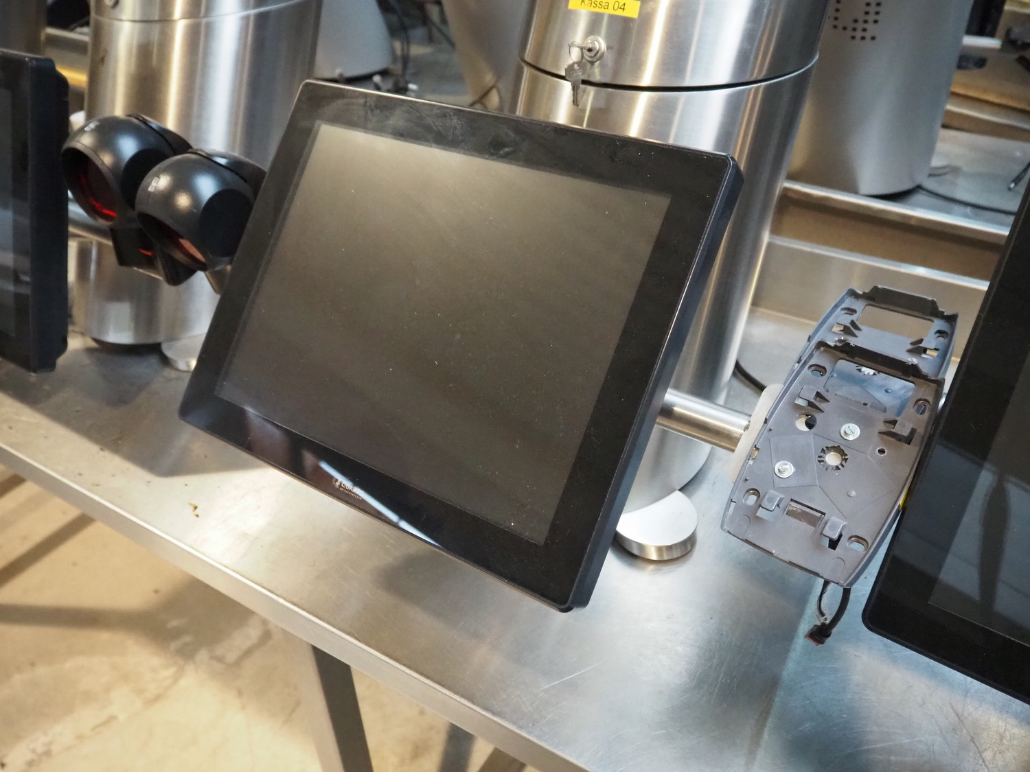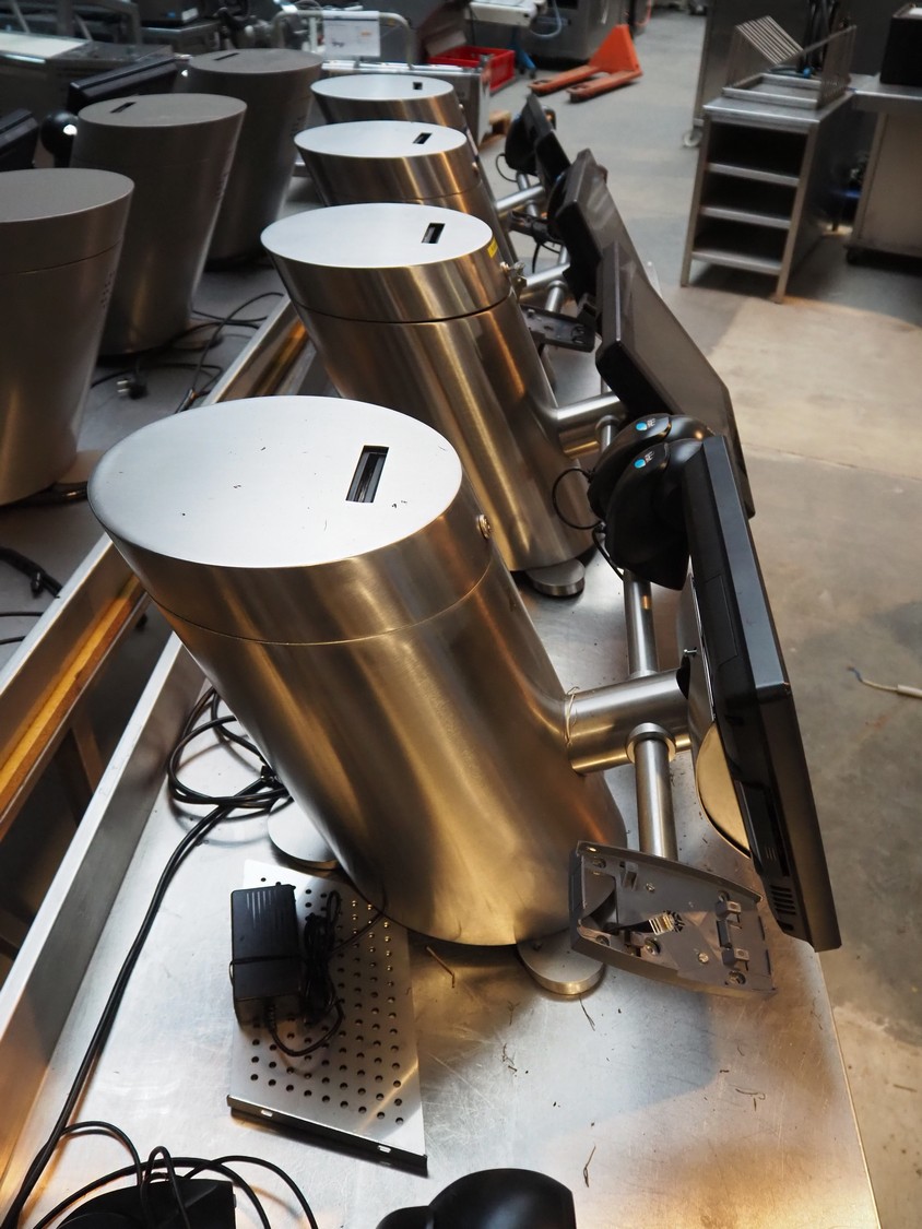 4 Quarto payment systems with receipt printer from which 6 in a frame, dimensions each: 600 mm x 600 mm x 440 mm. Table not included.