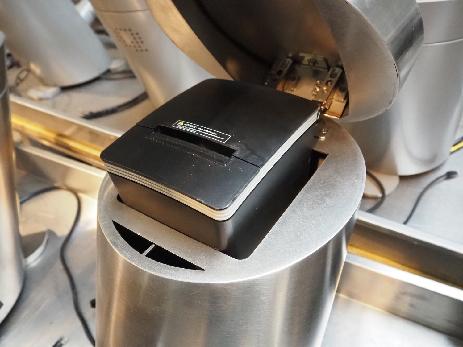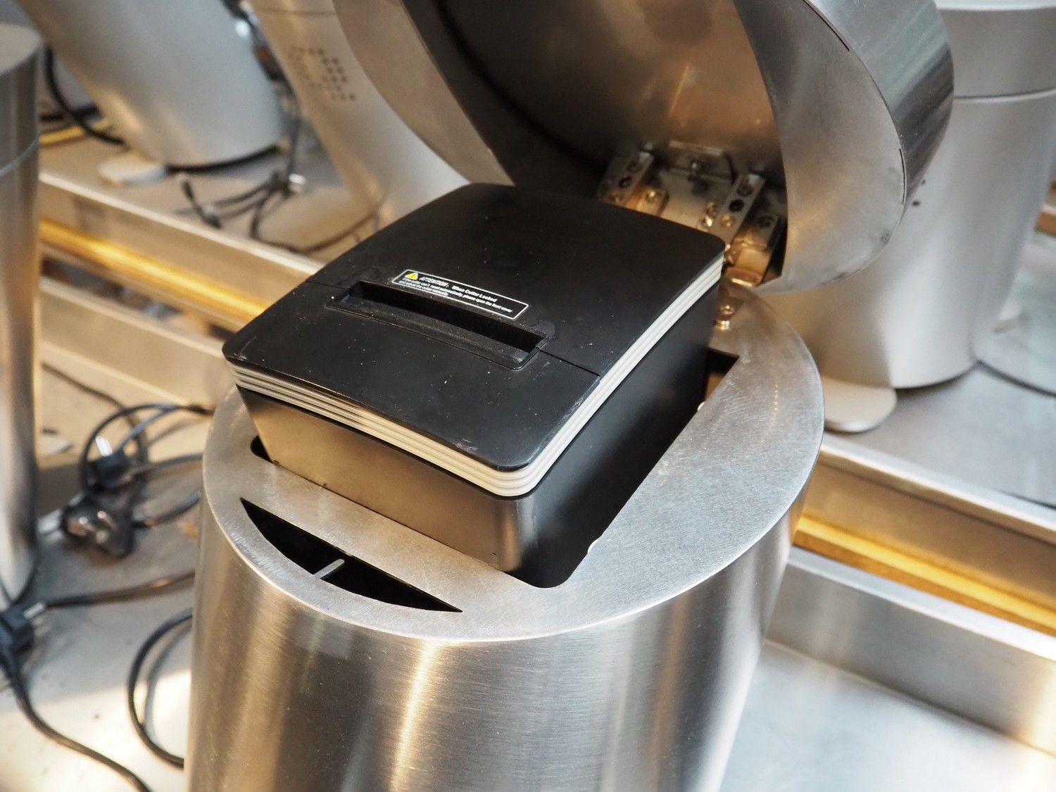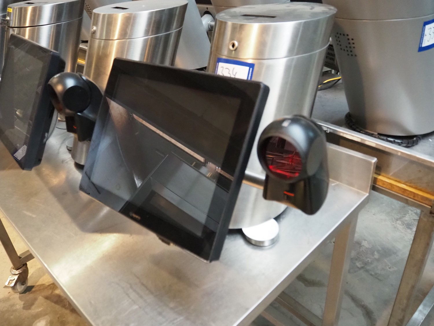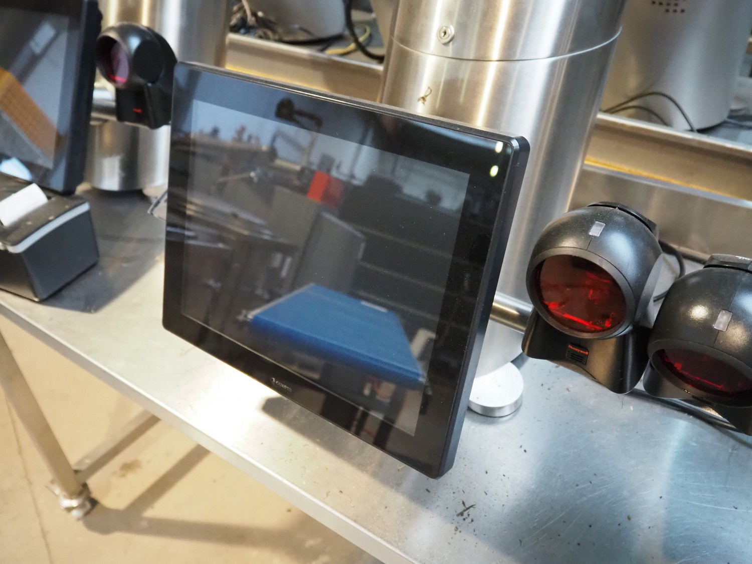 4 Quarto payment systems with receipt printer from which 6 in a frame, dimensions each: 600 mm x 600 mm x 440 mm. Table not included.