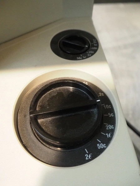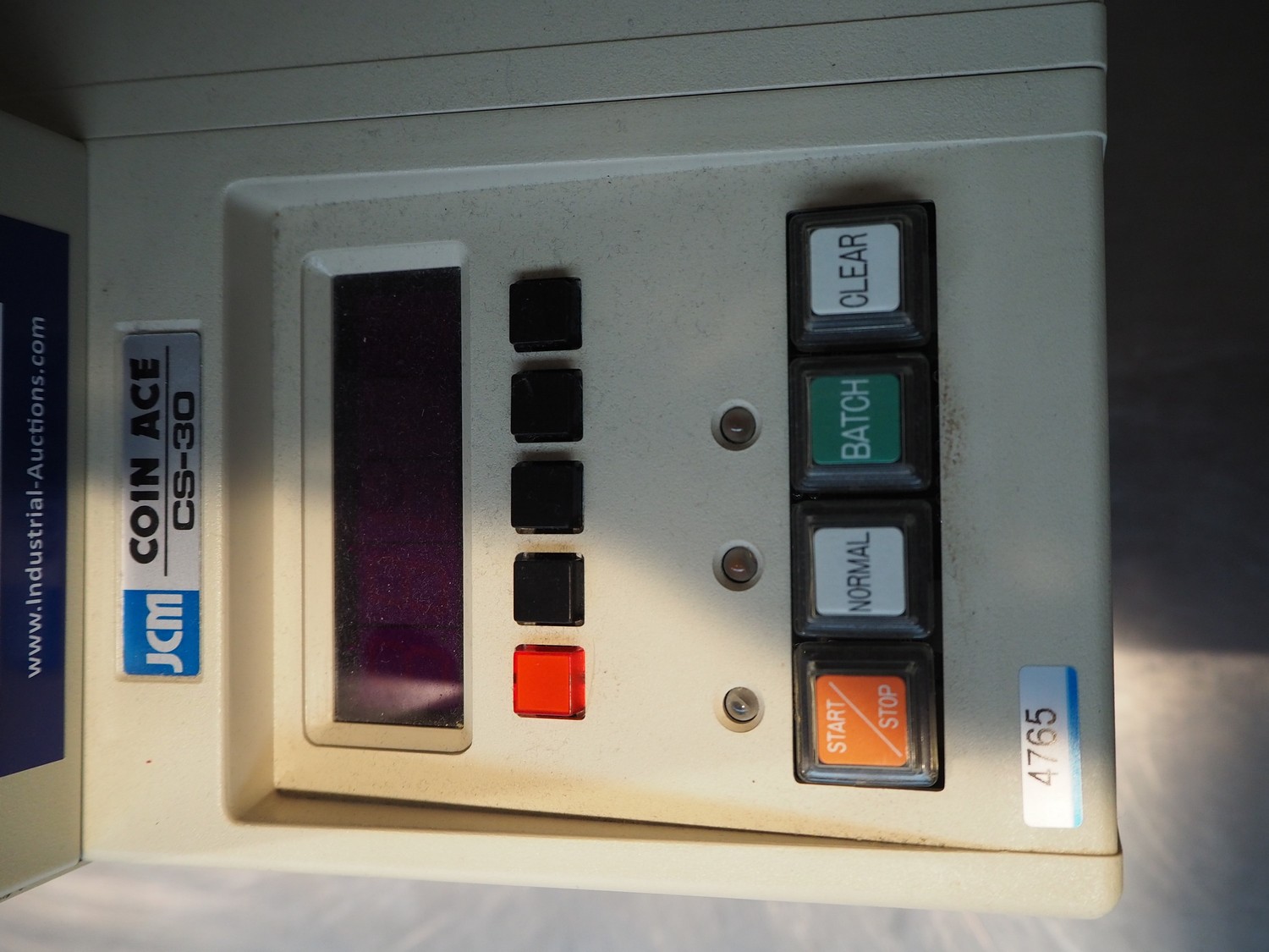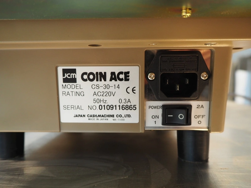 JMC coin ace coin counter, model: CS-30-14, serial number: 0109116865, 220 V, 50 Hz, 0.3 A, dimensions: 390 mm x 230 mm x 350 mm.