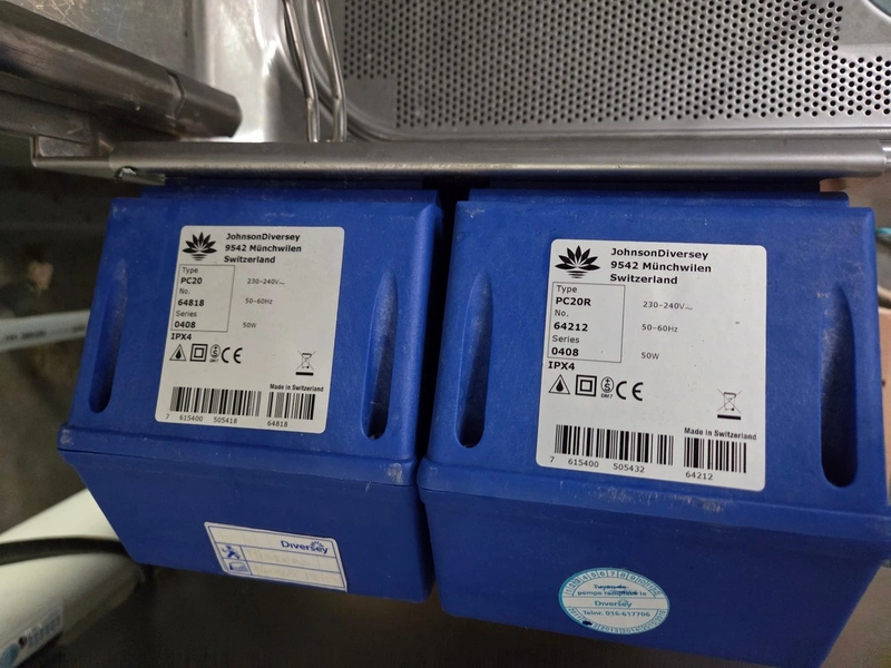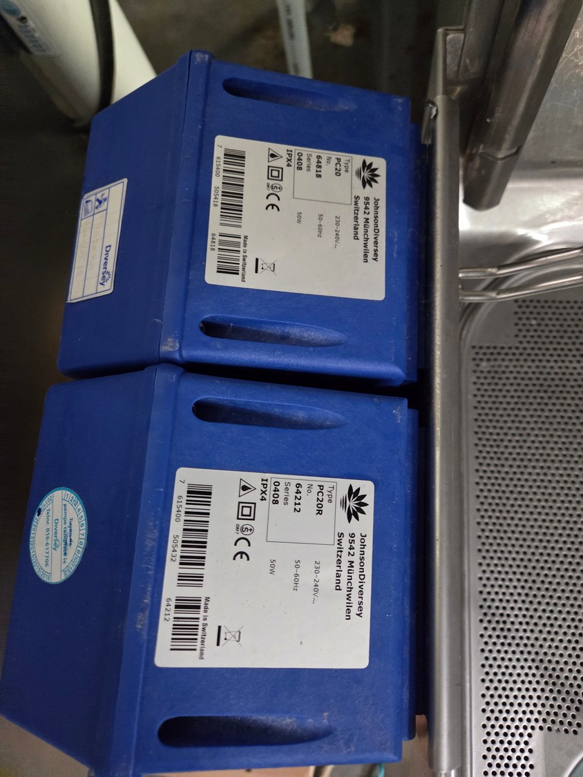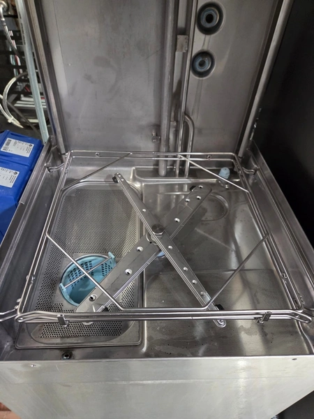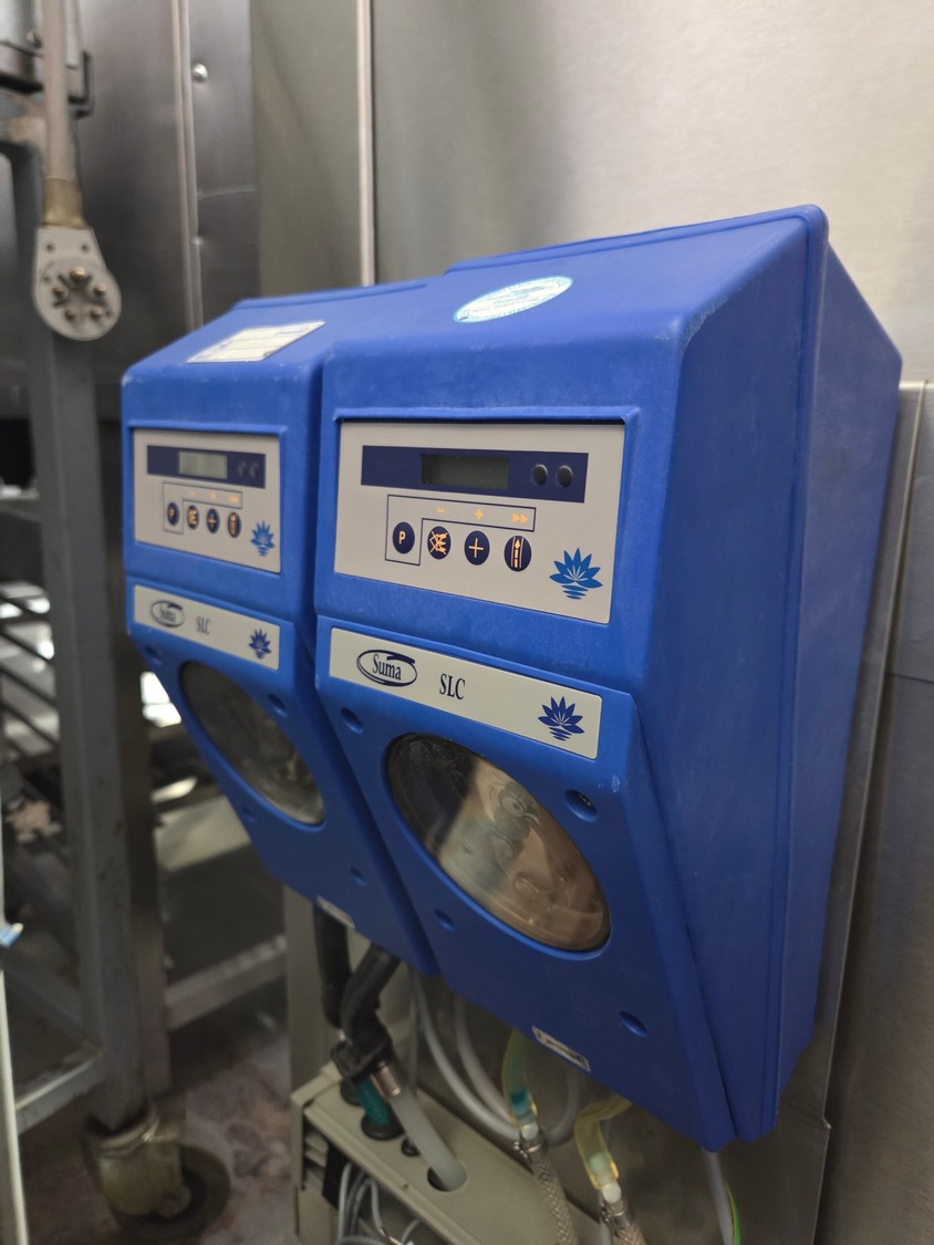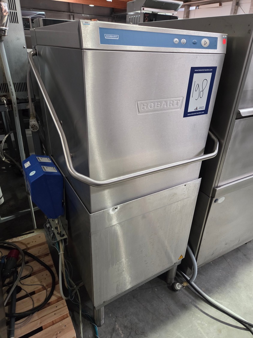 Hobart dishwasher with 2 Suma soap stations, crate: 500 mm x 500 mm, total dimensions: 770 mm x 750 mm x 1600 mm.