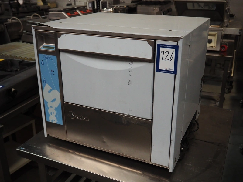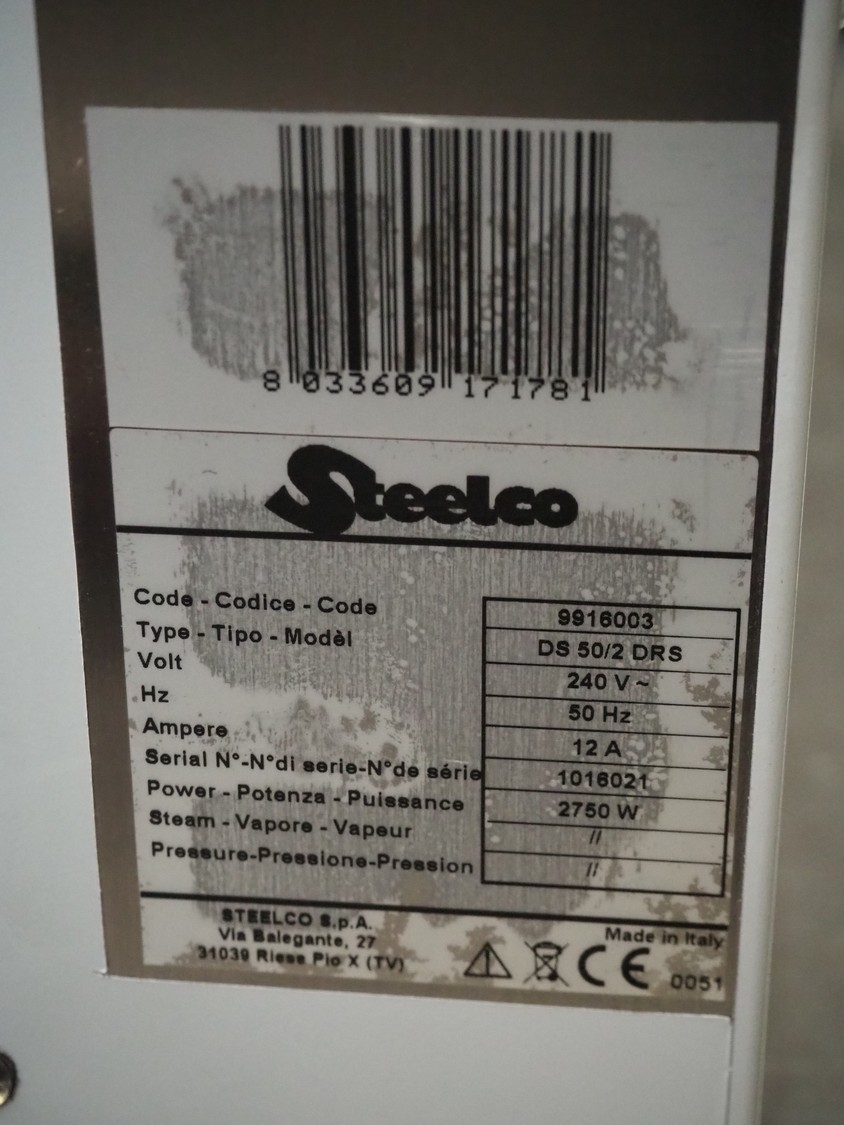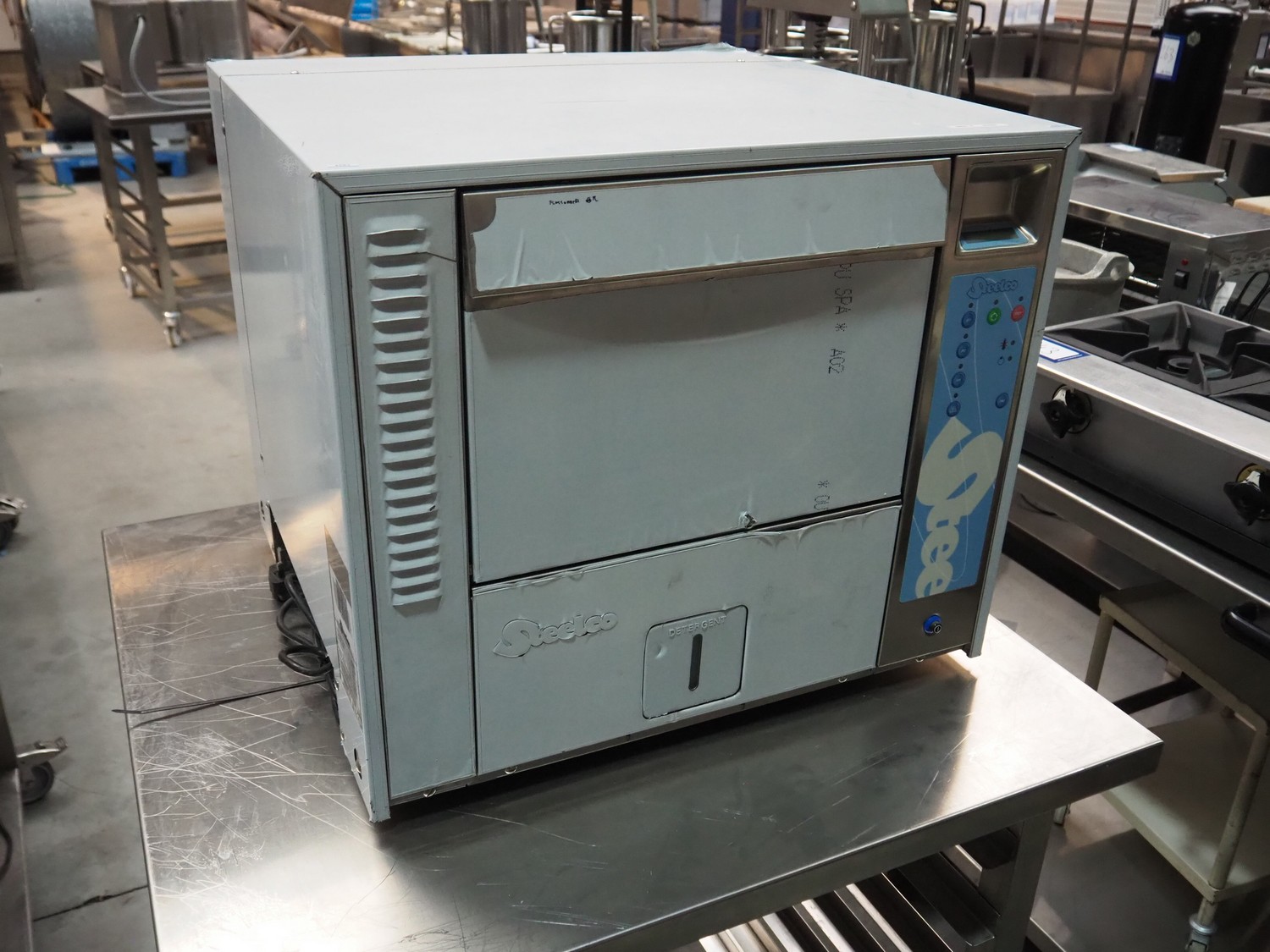 Steelco table model dishwasher, type: DS 50/2 DRS, serial number: 1018021, 240 V, 50 Hz, 12 A, 2750 W, dimensions: 620 mm x 550 mm x 560 mm.