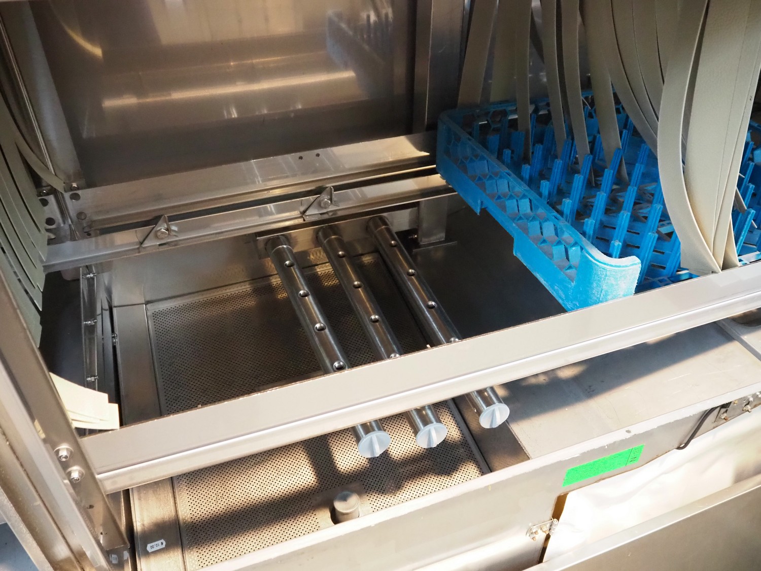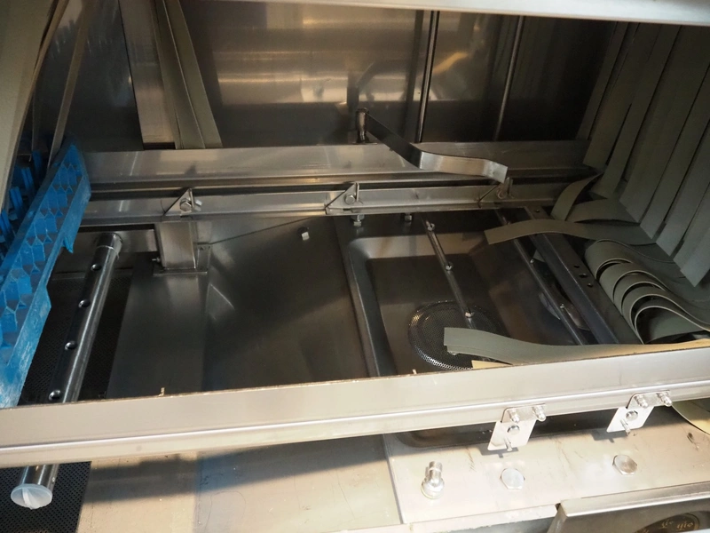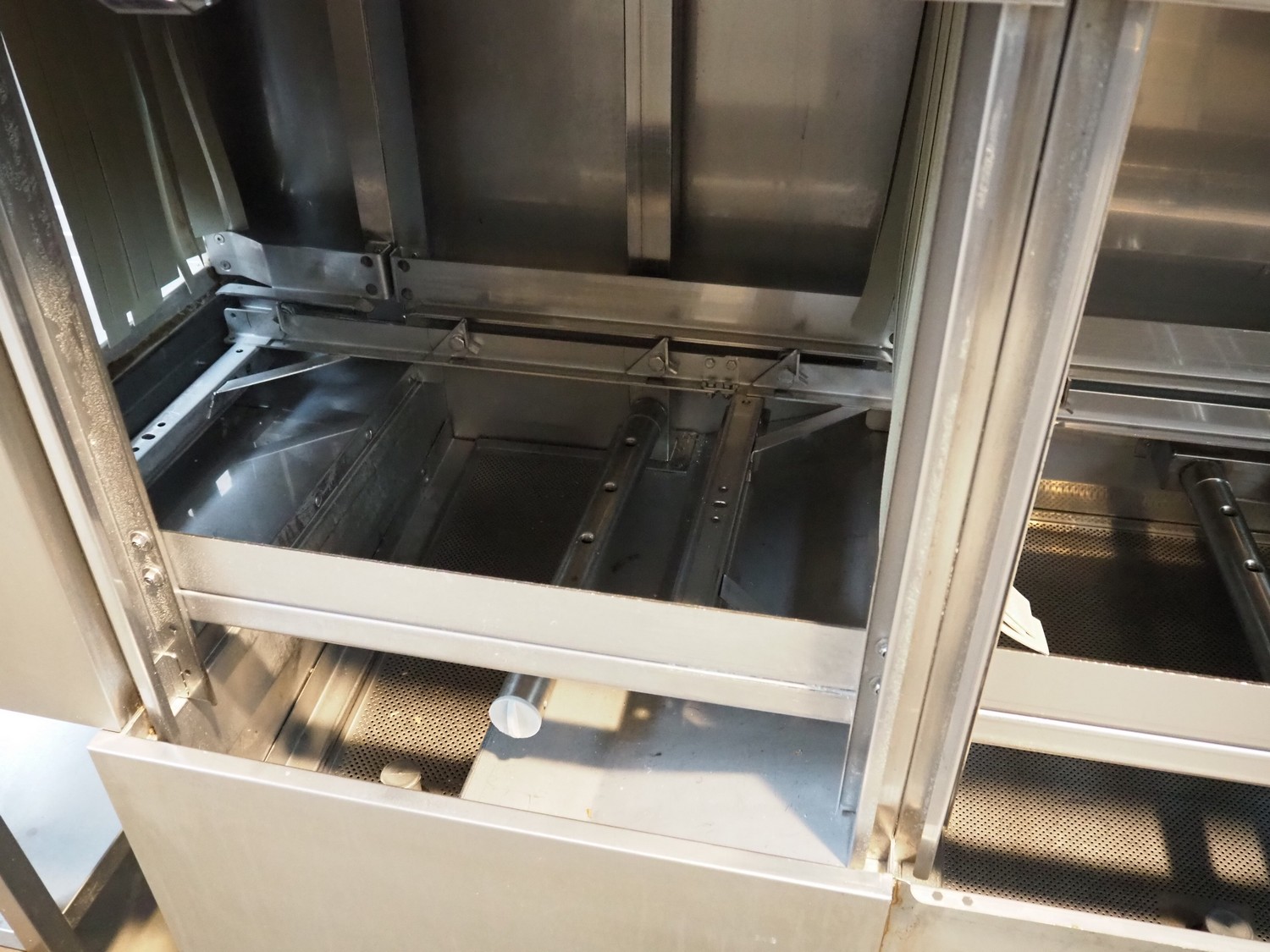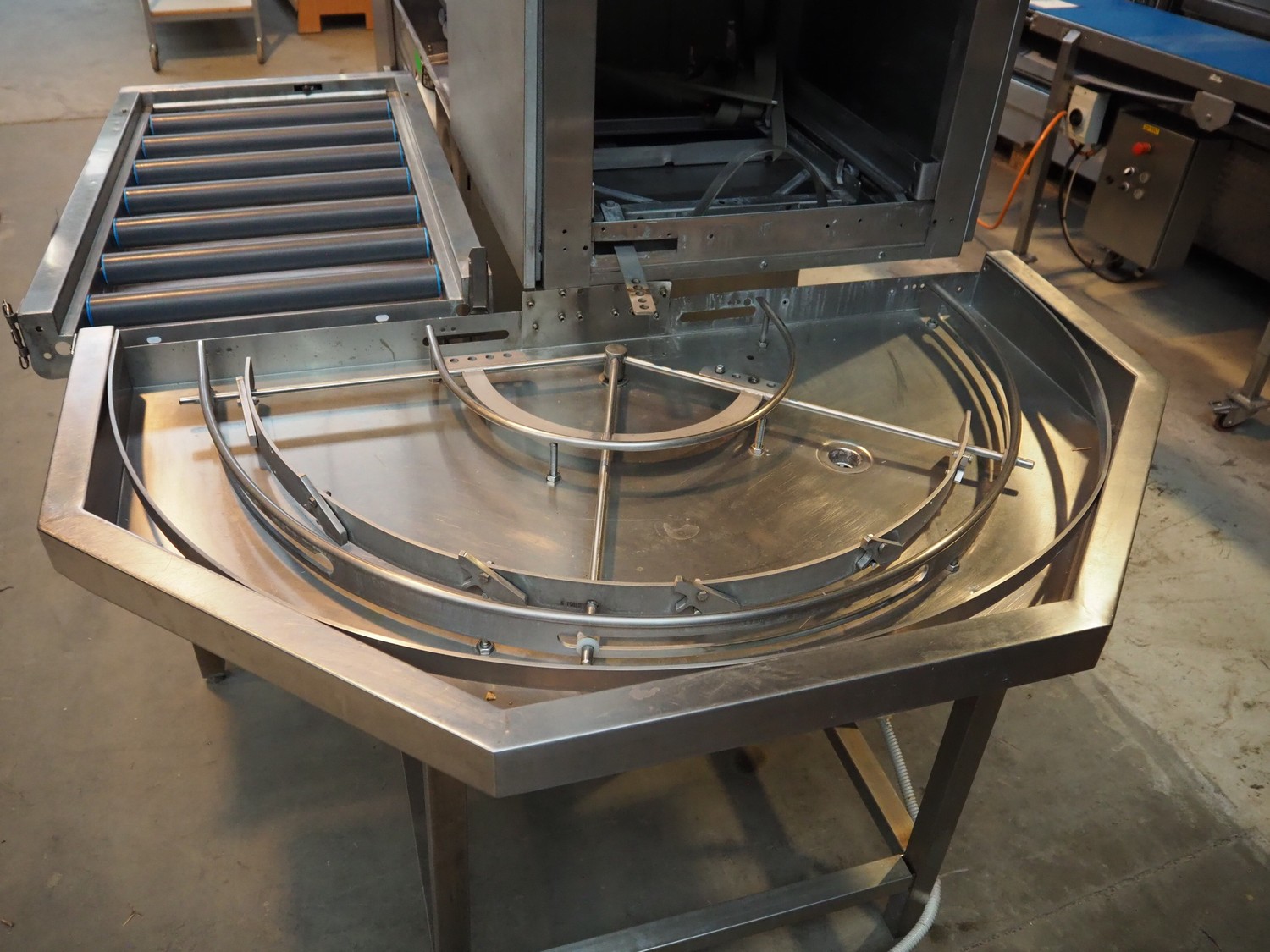Colged dishwasher, type: PL220 DDI, serial number: 114918, year of construction: 2005, 400 V, 63 A, 35.5 kW, dimensions sink: 940 mm x 840 mm x 1150 mm, dimensions dishwasher: 3000 mm x 800 mm x 1890 mm, dimensions 180° curve: 1400 mm x 820 mm x 850 mm, dimensions roller conveyor: 1150 mm x 630 mm x 860 mm. Rollies not included.
