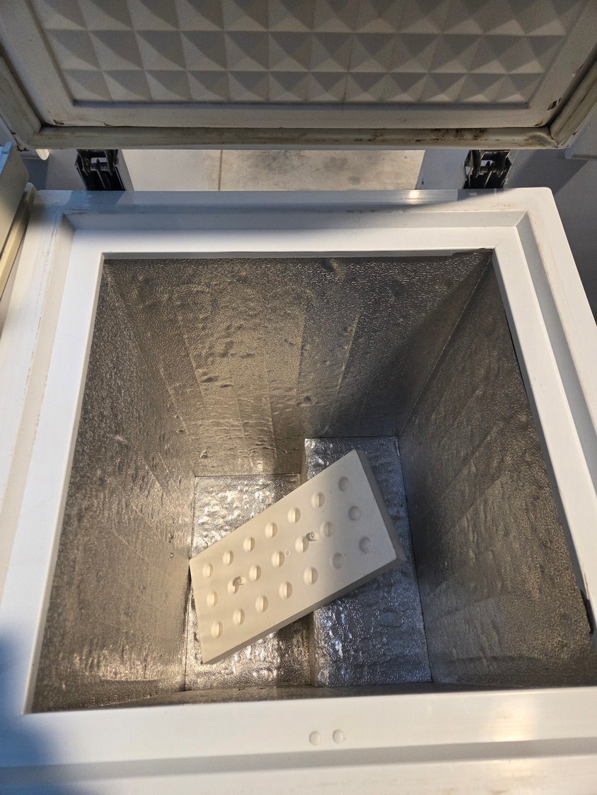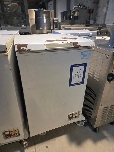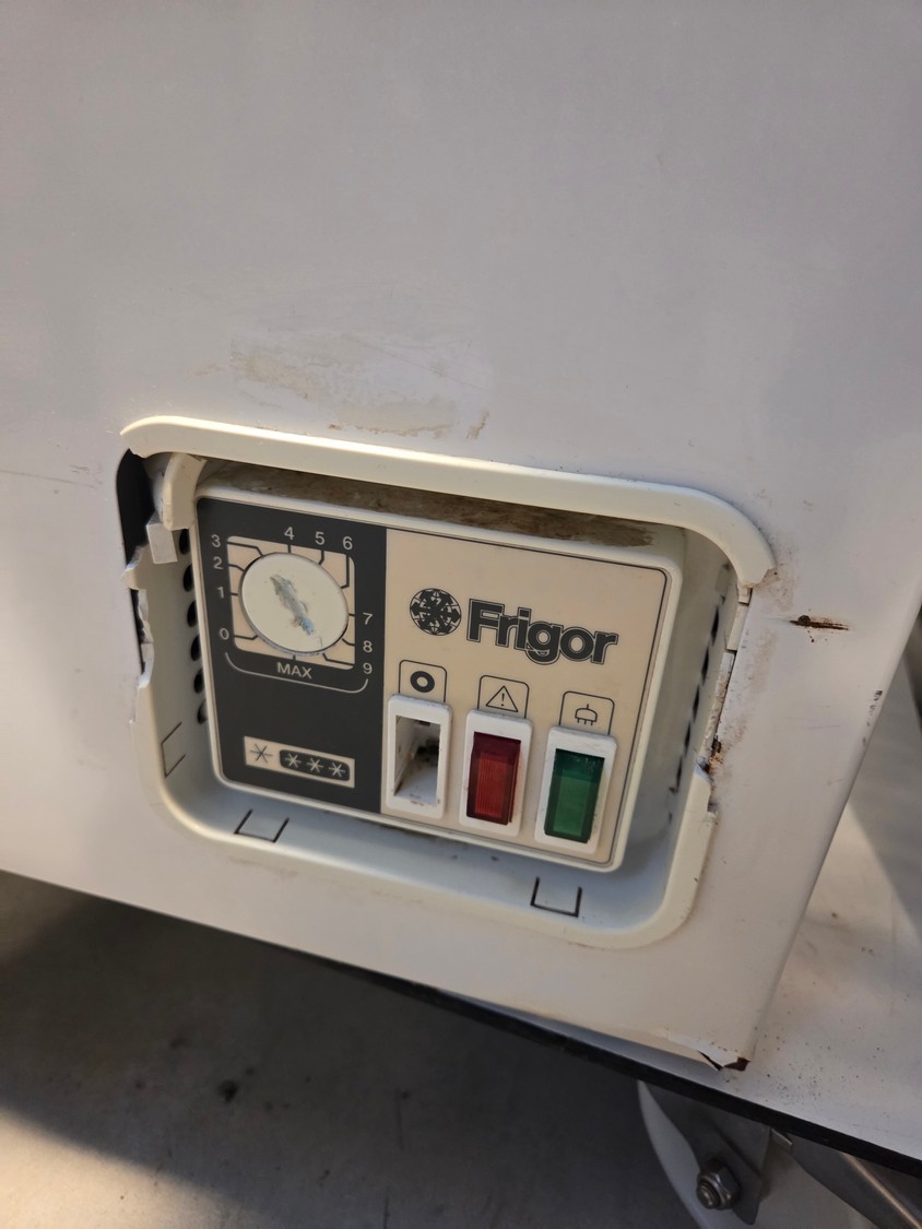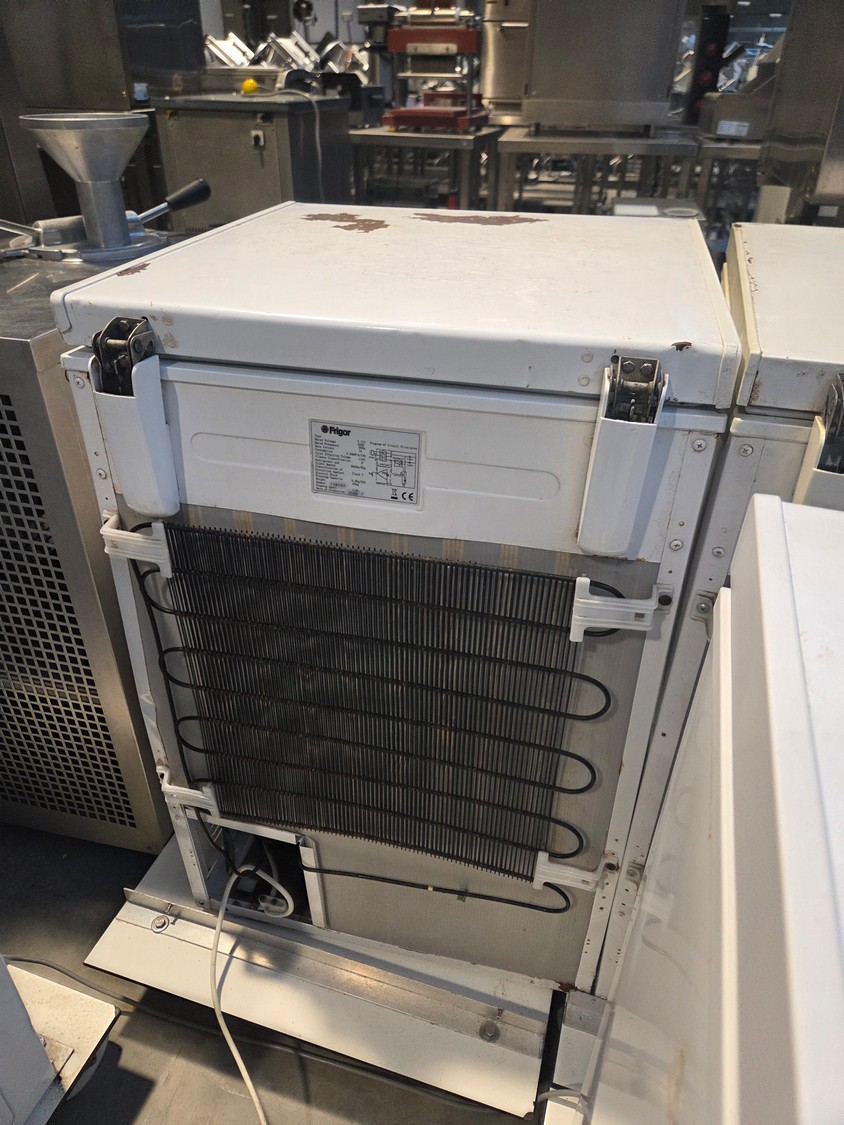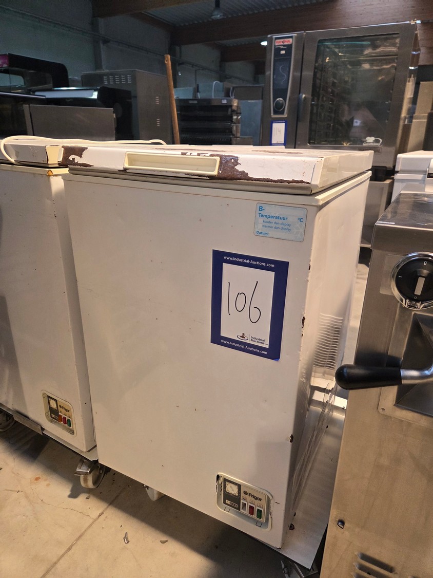 Frigor freezer, type: G 115, number: 118107, year of construction: 2006/7, 230 V, 50 Hz, 1 A, refrigerant: R600a/50g, weight: 32 kg, volume: 110 liter, dimensions: 600 mm x 550 mm x 860 mm.
