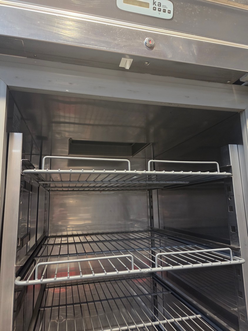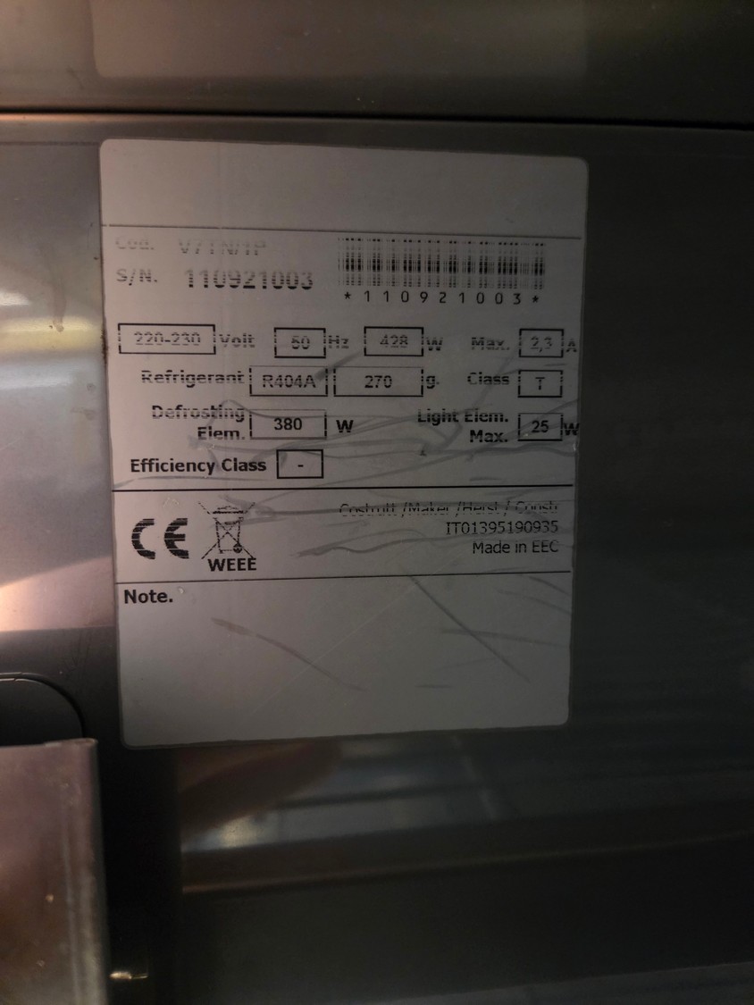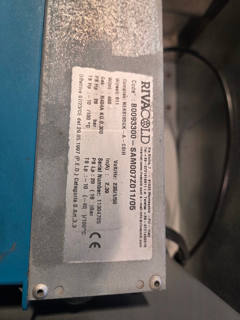 Rivacold freezer, serial number: 11304705, 230 V, 1 Ph, 50 Hz, 6 floors, floor dimensions: 650 mm x 530 mm, total dimensions: 810 mm x 730 mm x 2100 mm.