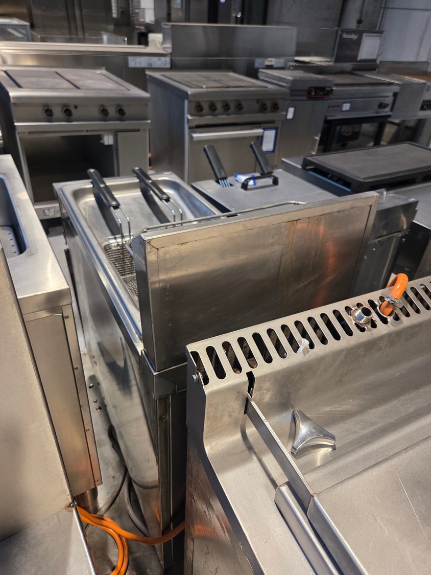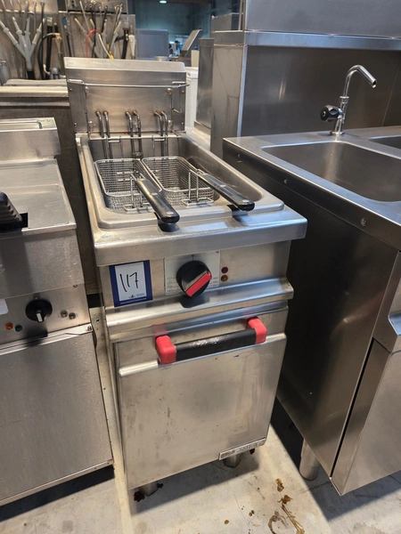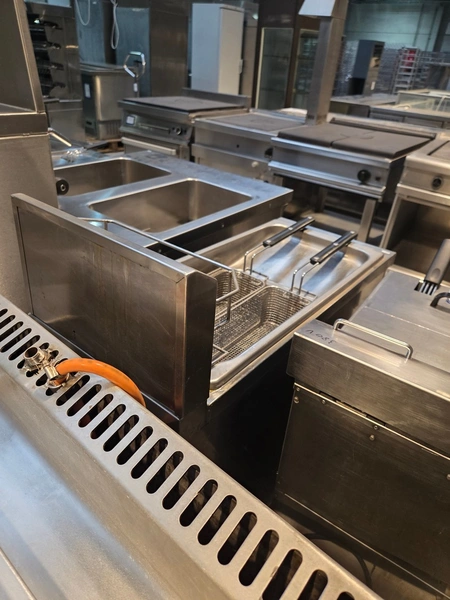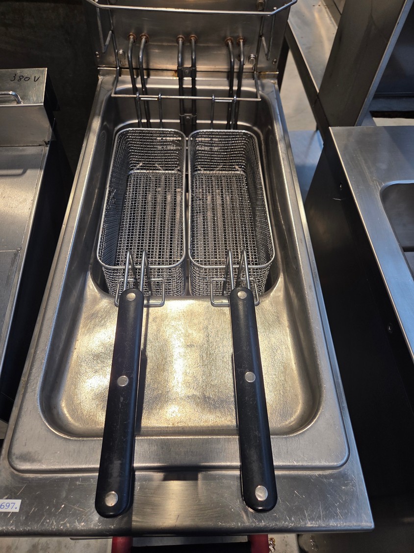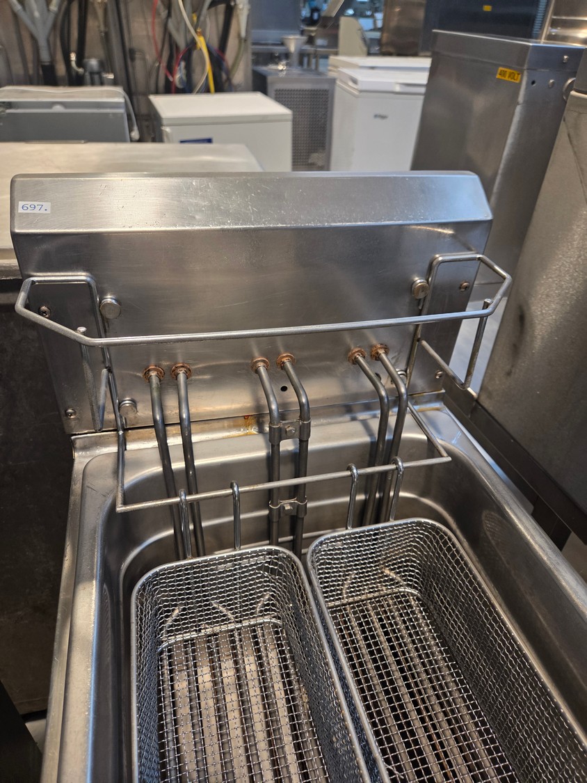 Angelo Po double fryer, model: 70FE1, serial number: 501150001, year of construction: 93, 220 V, 3 Ph, 50 Hz, 37 A, 14.1 kW, dimensions: 920 mm x 400 mm x 1100 mm.