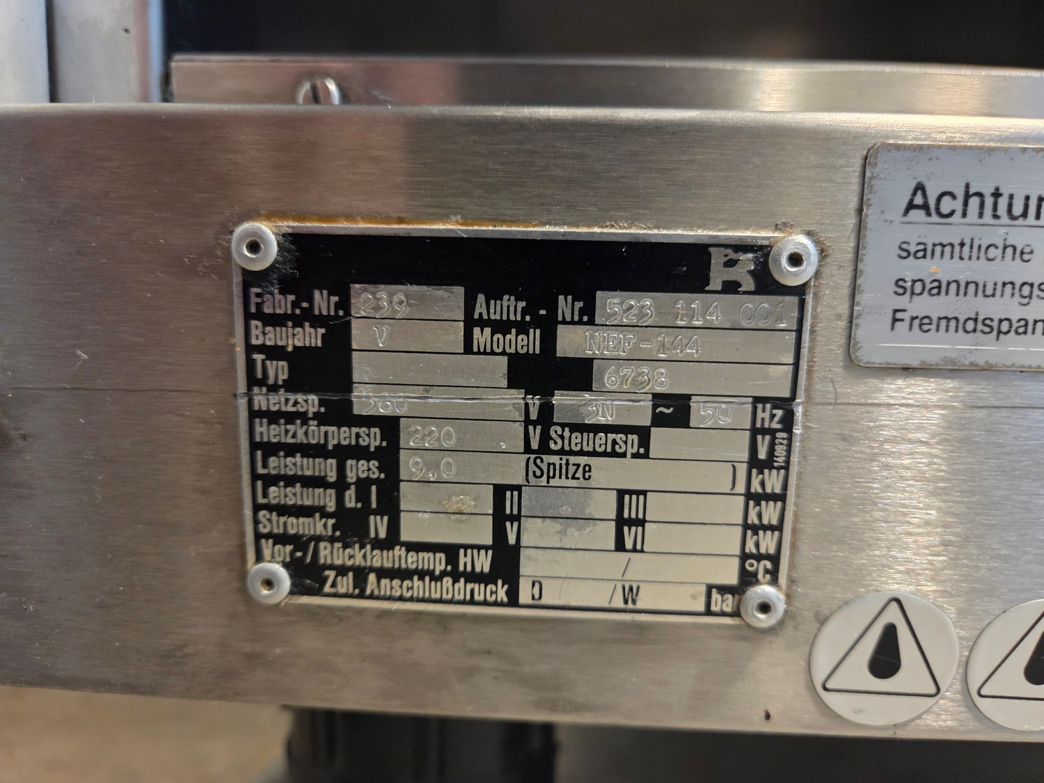 Küppersbusch deep fryer, model: NEF-144, serial number: 523 114 001, year of construction: V, 220 V, 3 Ph, 50 Hz, 9.0 kW, dimensions: 850 mm x 600 mm x 1000 mm.