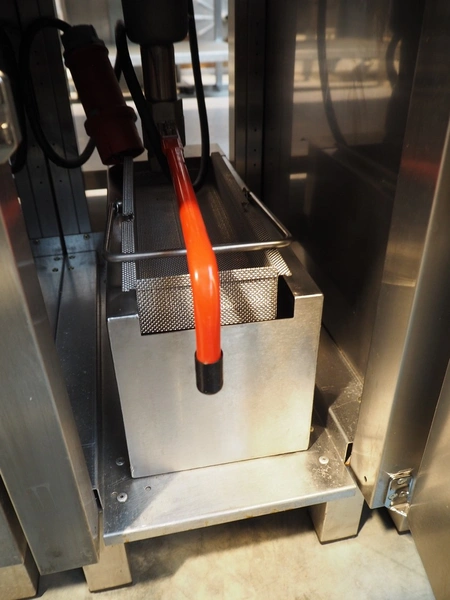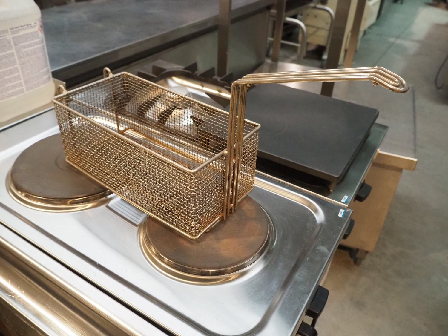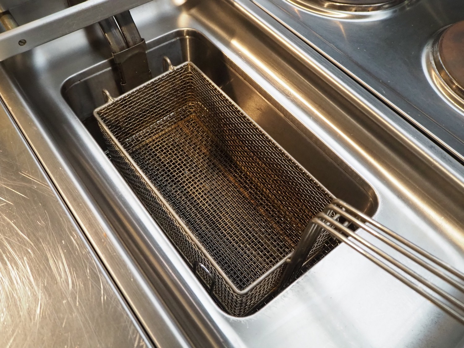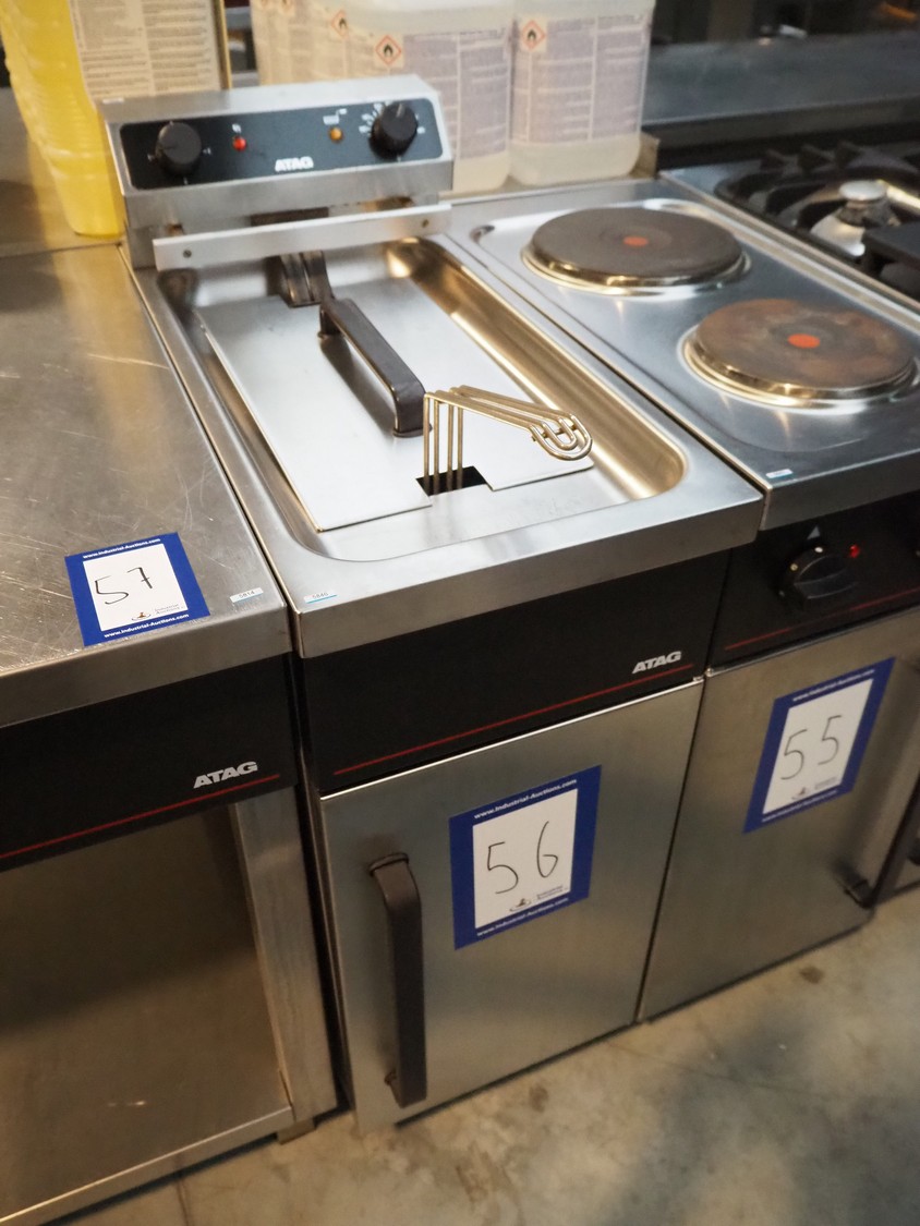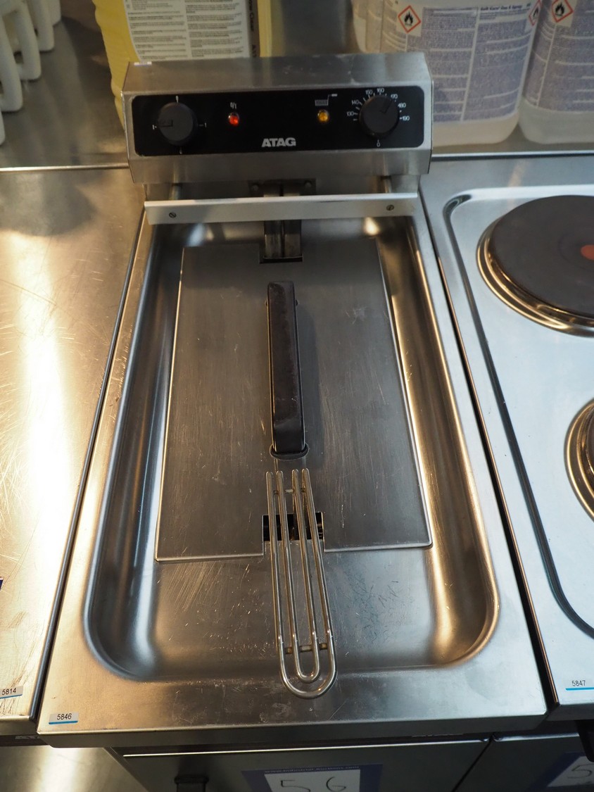 Atag deep fryer, inside dimensions: 390 mm x 220 mm x 150 mm, total dimensions: 700 mm x 350 mm x 1050 mm.