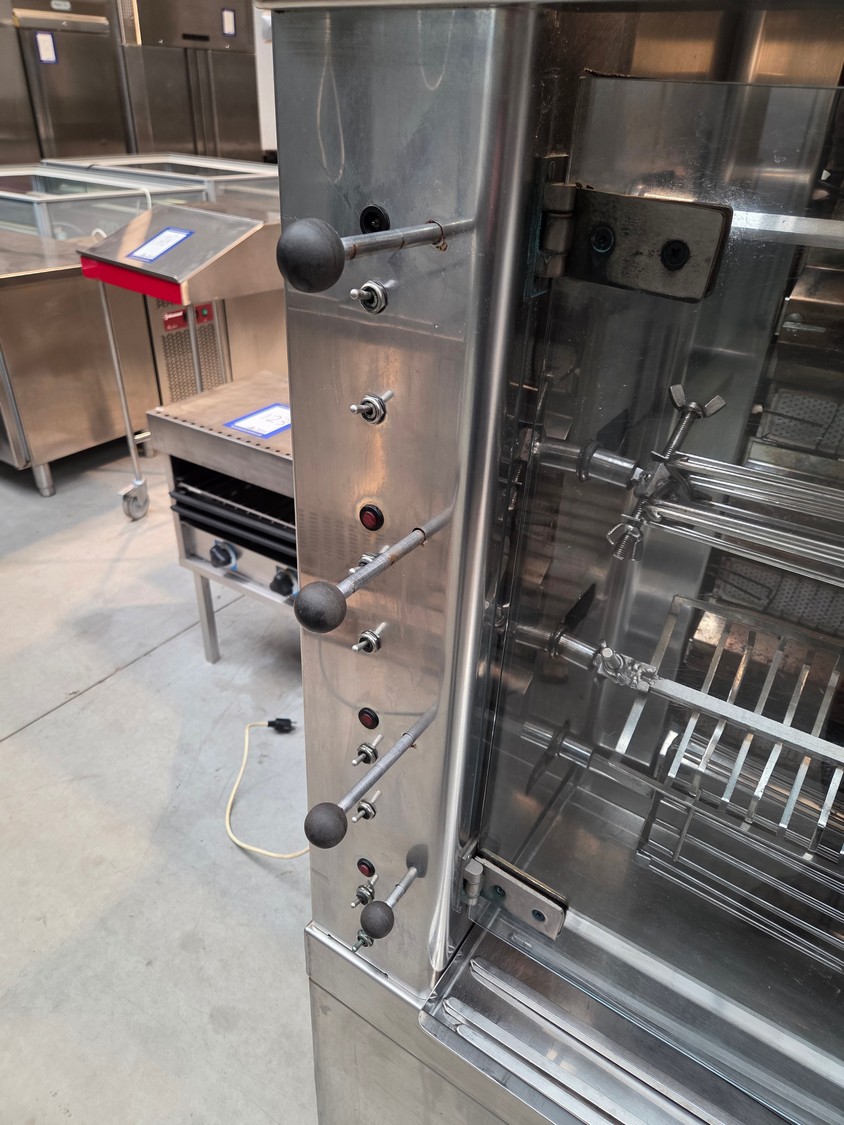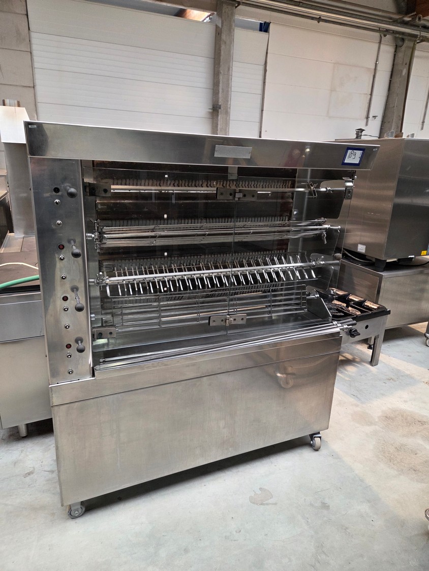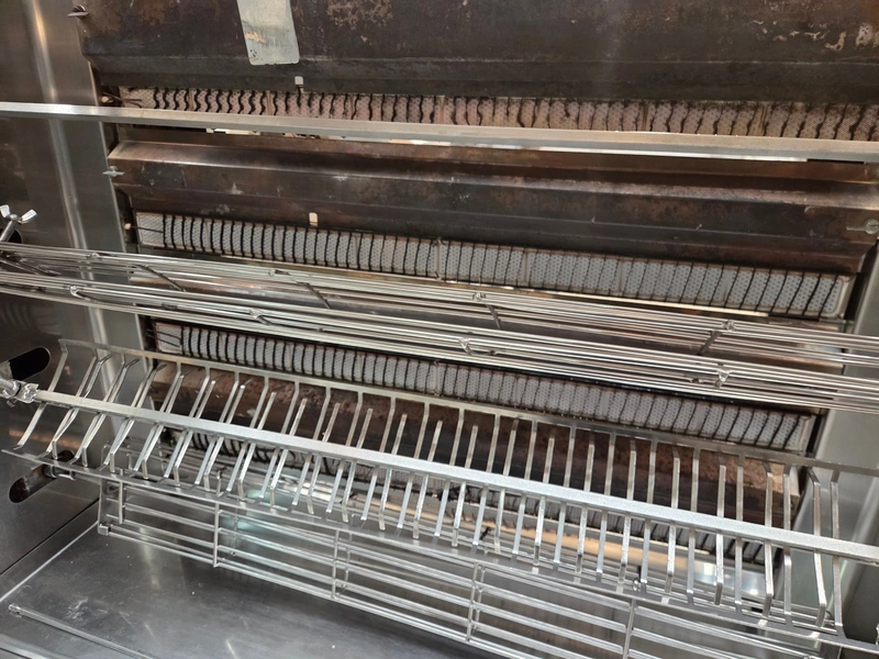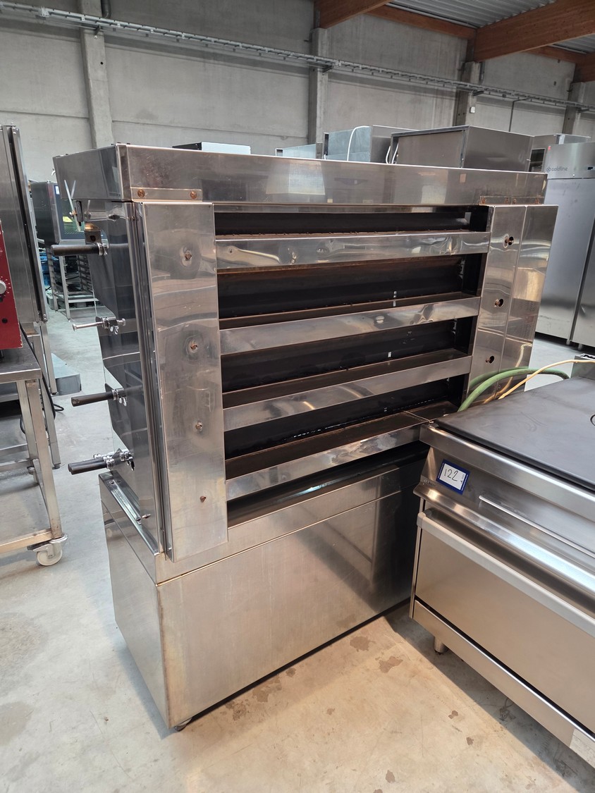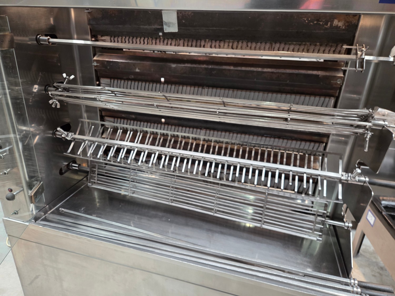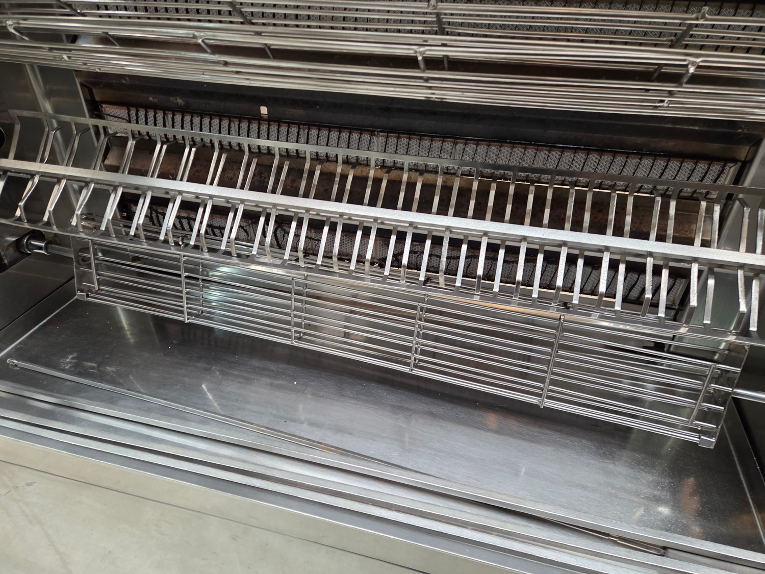 Mobile grill, 4 baskets, basket width: 1070 mm, total dimensions: 1500 mm x 600 mm x 1620 mm.