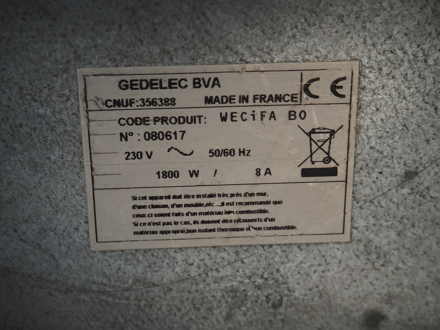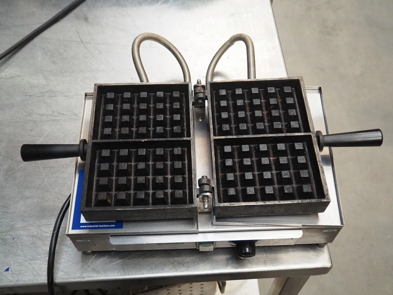 Gedelec BVA waffle maker, model: WECiFA B0, number: 080617, 230 V, 50/60 Hz, 8 A, 1800 W, dimensions waffle: (2x) 105 mm x 145 mm, total dimensions: 400 mm x 450 mm x 180 mm.