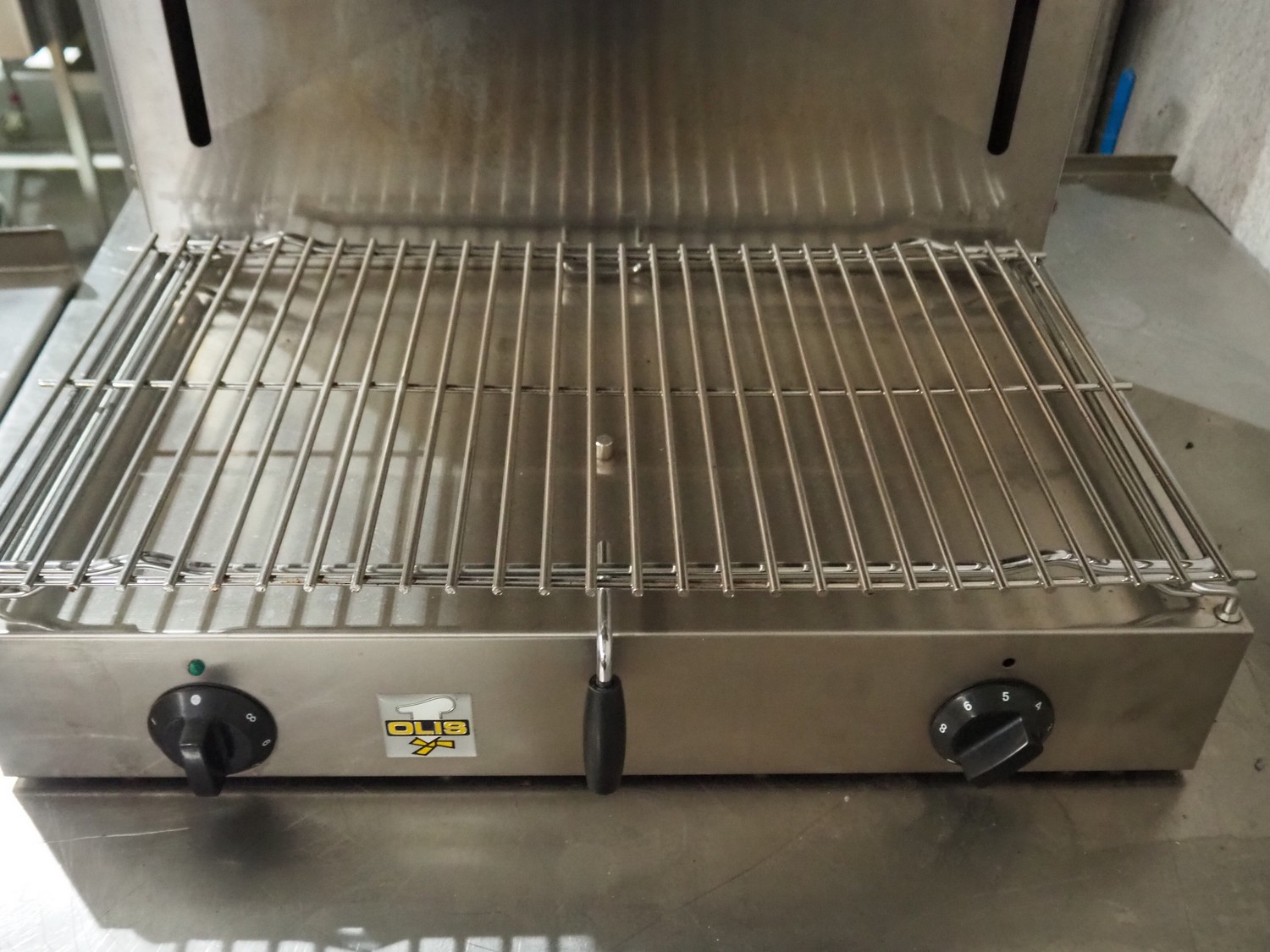 Olis grill, model: SE60/4, number: 80400042, 400 V, 2 Ph, 50-60 Hz, 4000 W, grill plate dimensions: 550 mm x 330 mm, total dimensions: 600 mm x 550 mm x 500 mm.