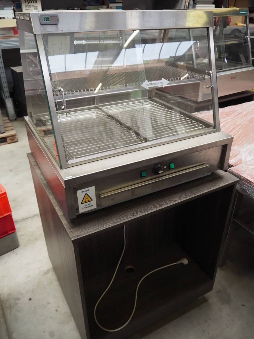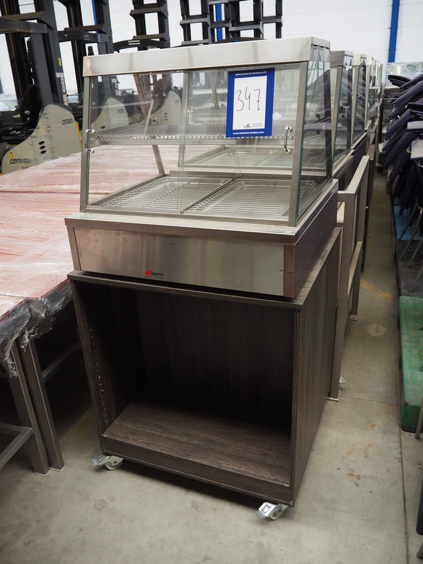 Alpina heated showcase, type: ADA WG 20-11, number: 144, year of construction: 2017, 230 V, 50 Hz, 1600 W, 50 kg, total dimensions: 800 mm x 750 mm x 1760 mm.